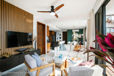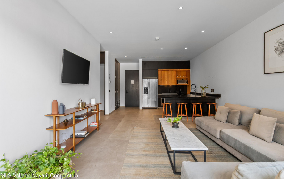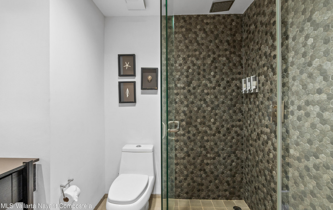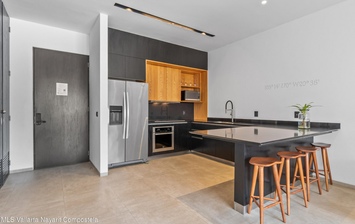 Tucked right in the heart of the Zona Romantica, this building is one of the most in-demand addresses in the area. Its unique dual entrances makes walking to all the best restaurants, cafes, and shops an absolute breeze.Unit 108 it’s flooded with natural light, spacious spaces and has gorgeous mountains and city views. The 360-degree view from the rooftop is insane; you can see the ocean, the mountains, and the city.They really paid attention to the details here. You’ll find these beautiful, handcrafted Mexican touches and designer materials throughout the hallways and common areas–it has that authentic Vallarta feel but with a sleek, modern twist. It’s no wonder this building is so popular. You really have to see it for yourself.