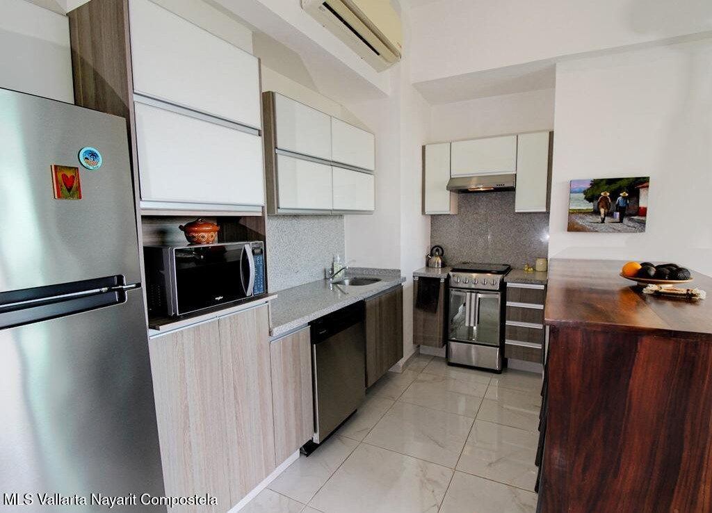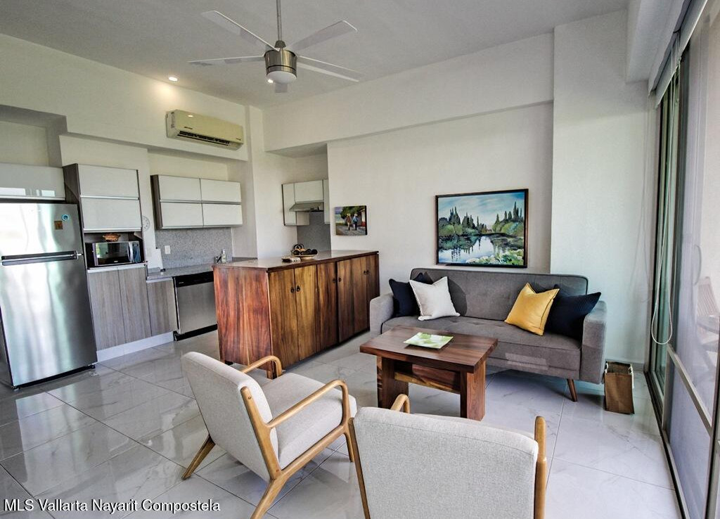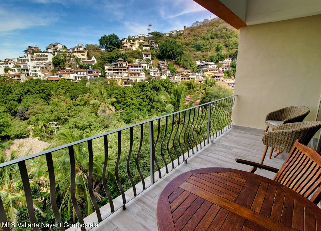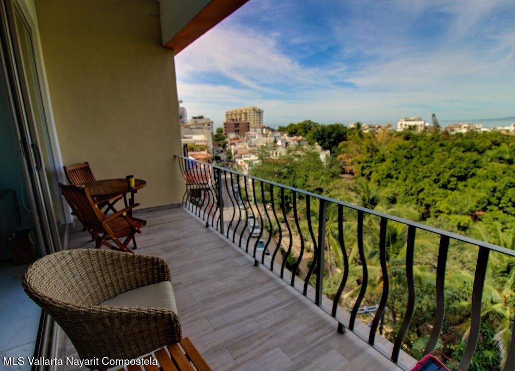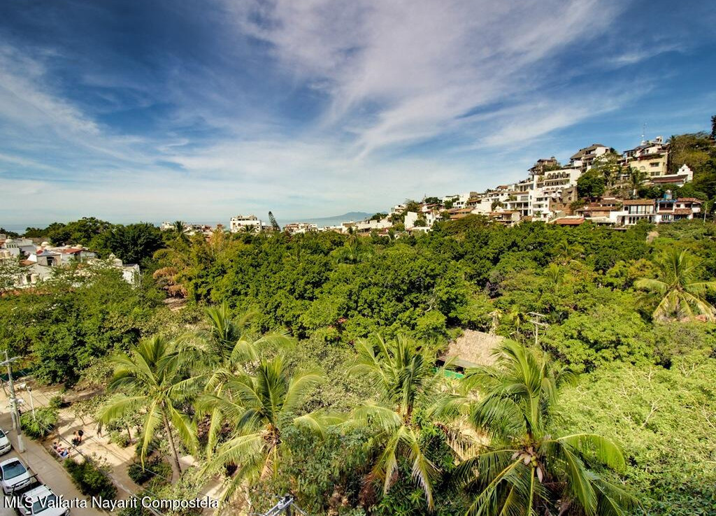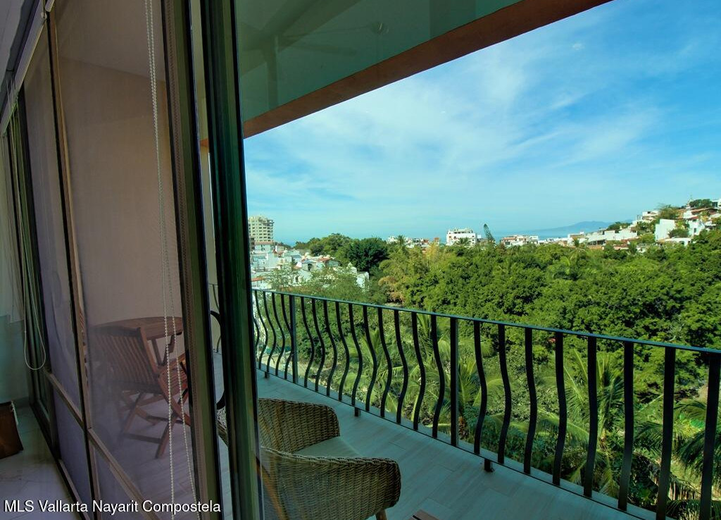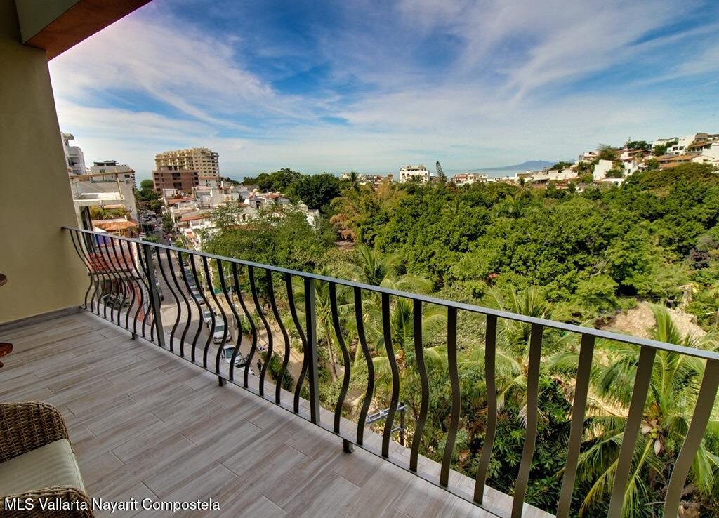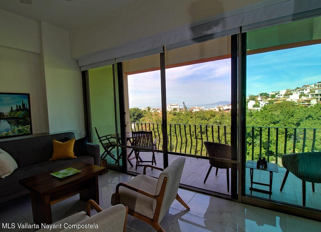 Perched above the treetops of the Isla Cuale, this beautifully appointed one-bedroom, one-bath condominium offers a rare blend of city charm and sweeping views. Sold fully furnished and move-in ready, the residence enjoys elevated city vistas with a secondary panoramic view of Banderas Bay, creating a bright and inviting atmosphere both day and night.The thoughtfully designed interior flows seamlessly to take advantage of the scenery, making it ideal as a full-time residence, vacation home, or income-producing property. Residents enjoy access to exceptional common amenities, including a rooftop terrace with a large swimming pool, sundeck, BBQ area, and jacuzzi, all perfect for entertaining or relaxing while taking in the views. Additional features include a fully equipped gym, elevato