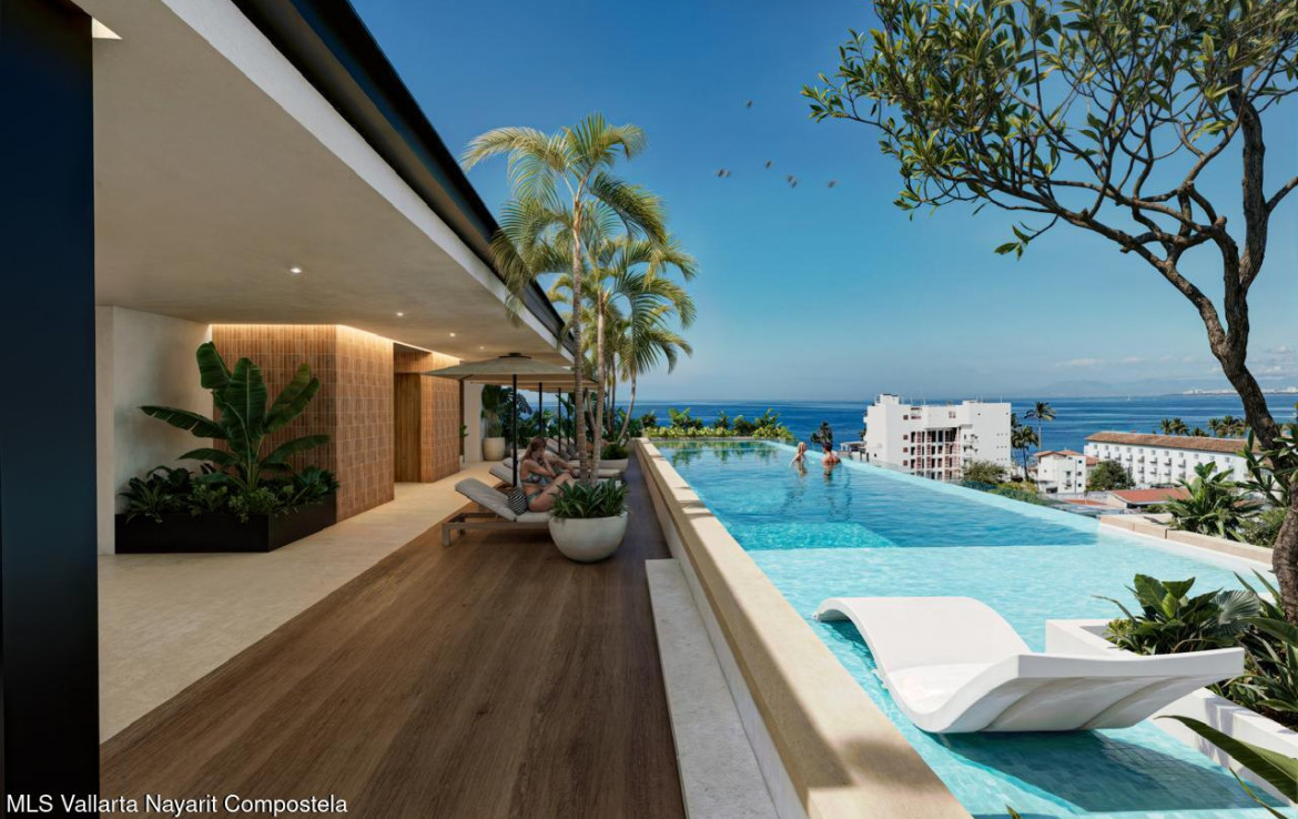 Condo #202 at Alero offers 2 bedrooms and 2 baths, located on the second level on the left side along Honduras Street, just a short walk to the beach. Its spacious, well-planned layout includes a private terrace that enhances indoor-outdoor living and everyday comfort. Secure it now with pre-construction discounts starting at 12% with multiple payment plan options available. Alero is a boutique development of 26 condominiums across six levels in the 5 de Diciembre area in the heart of downtown, only two blocks from the beach and steps from the Malecon. Amenities include a welcoming lobby, interior garden, and a rooftop with infinity pool, gym, lounge, BBQ area, and 360 views of the bay, city, and mountains.