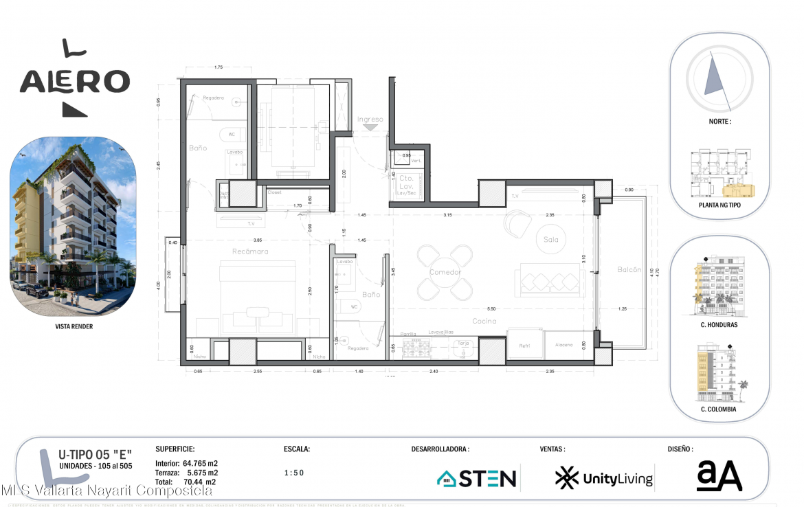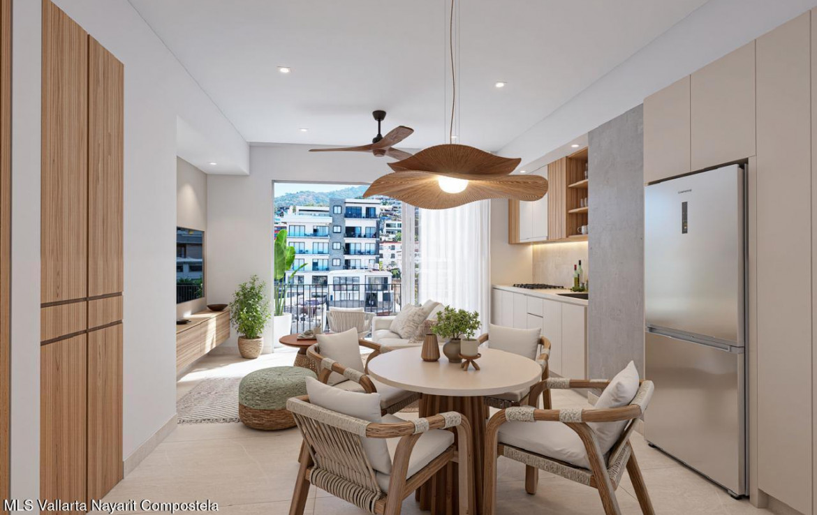 Alero condo #405 is on the forth level along Colombia Street, facing the mountain side. It features 1 bedroom, 2 bathrooms, a practical layout, and a balcony that maximizes its spaces. Secure it now with pre-construction discounts starting at 12% with multiple payment plan options available. Alero is a boutique pre-construction development with only 26 condominiums across 6 levels, just two blocks from the beach and near the Malecon. Surrounded by cafes, markets, restaurants, and the municipal stadium, it captures Vallarta’s lifestyle. Amenities include a lobby, interior garden, and on the rooftop: infinity pool, gym, lounge, BBQ area, and 360 panoramic views of the bay, city, and mountains.
