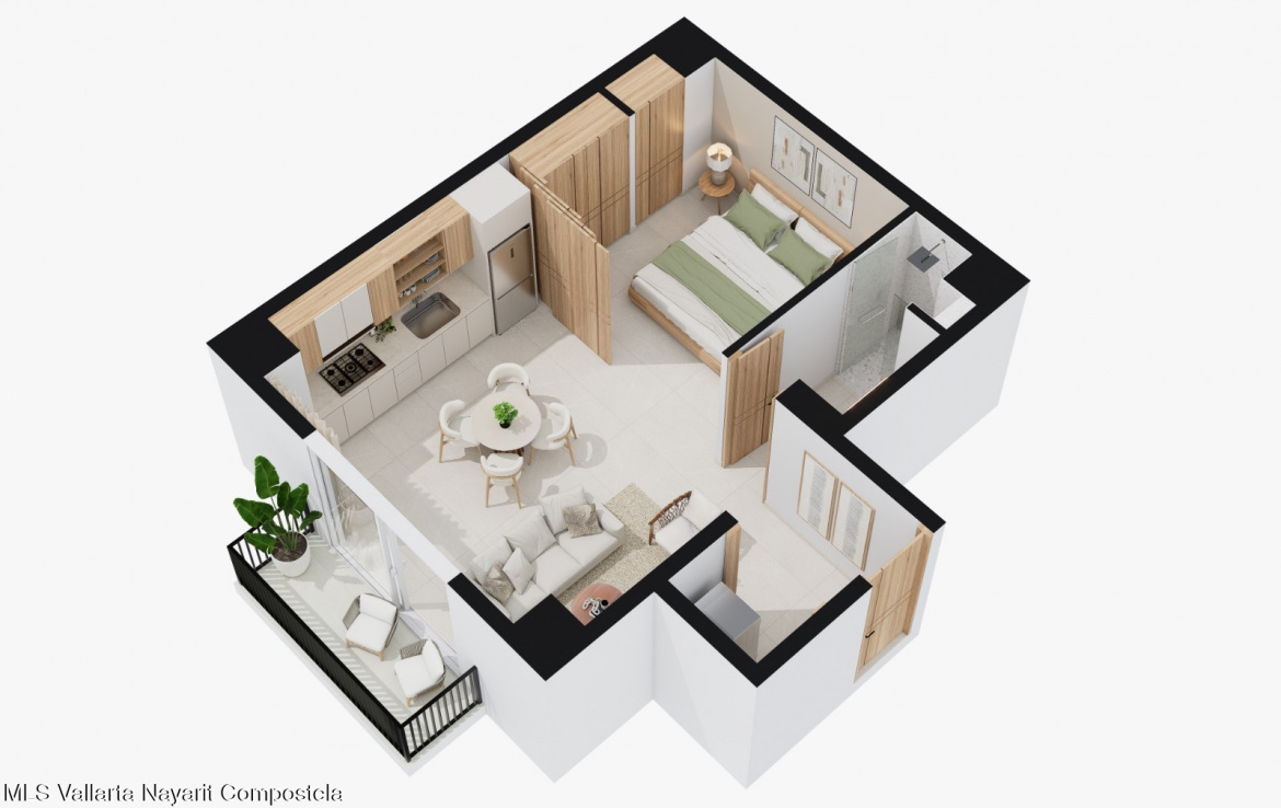 Condo 301 at ALERO offers the quiet charm of being set within the interior of the building, overlooking the serene garden courtyard. Designed to maximize natural light and airflow, the layout provides comfort, privacy, and a unique sense of retreat. Secure it now with pre-construction discounts starting at 12% with multiple payment plan options available.ALERO, a boutique six-level development in 5 de Diciembre just two blocks from the beach, features 26 condos blending style, functionality, and investment potential. Choose from studios, 1- and 2-bedroom layouts with private terraces and smart interiors. Amenities include a rooftop infinity pool with ocean views, gym, grill area, a welcoming lobby, and interior garden, steps from the Malecon, cafes, markets, and restaurants.