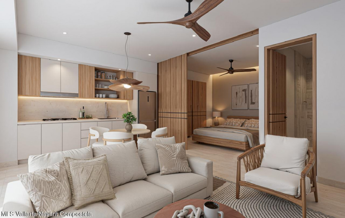 Condo 501 at ALERO offers the quiet charm of being set within the interior of the building, overlooking the serene garden courtyard. Designed to maximize natural light and airflow, the layout provides comfort, privacy, and a unique sense of retreat. Secure it now with pre-construction discounts starting at 12% with multiple payment plan options available. ALERO, a boutique six-level development in 5 de Diciembre just two blocks from the beach, features 26 condos blending style, functionality, and investment potential. Choose from studios, 1- and 2-bedroom layouts with private terraces and smart interiors. Amenities include a rooftop infinity pool with ocean views, gym, grill area, a welcoming lobby, and interior garden, steps from the Malecon, cafes, markets, and restaurants.
