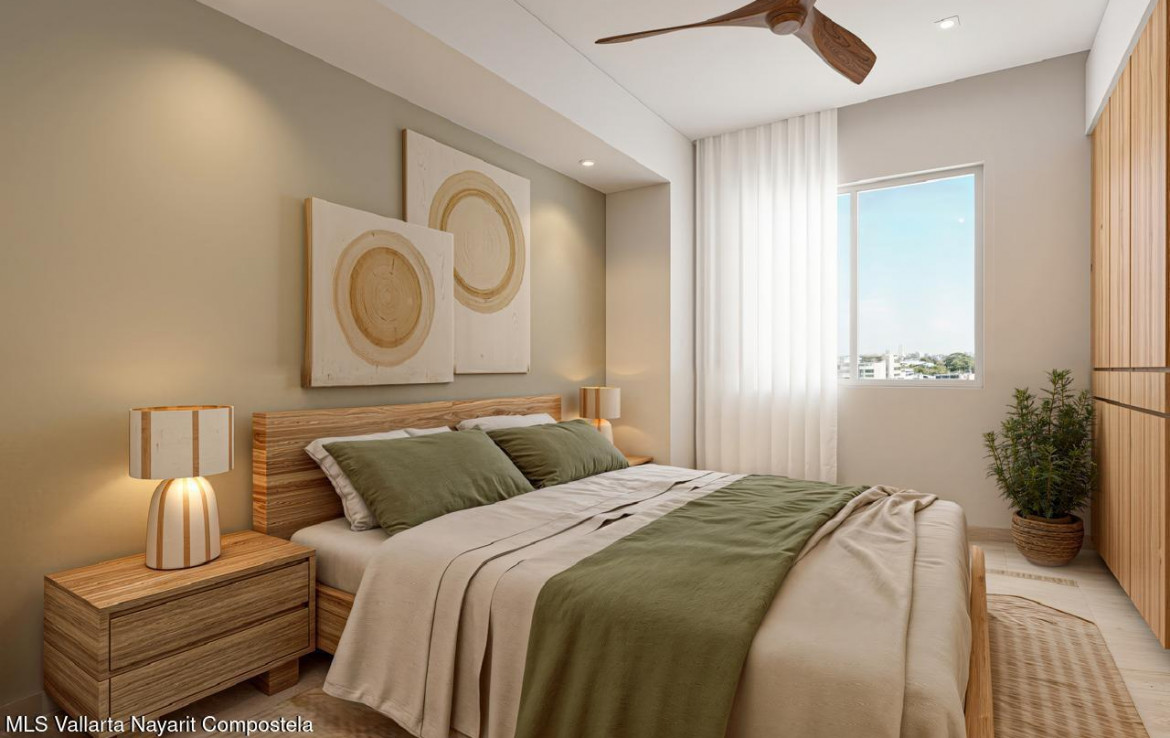 Condo 204 is a 2-bedroom, 2-bath condominium located on the corner of the building, featuring a spacious wraparound terrace along Honduras and Colombia Streets. Just two blocks from the beach, its well-planned layout combines functionality and comfort for everyday living. Alero is a boutique pre-construction development in the 5 de Diciembre neighborhood, with only 26 condominiums across six levels, offering studios, one- and two-bedroom layouts. Amenities include a welcoming lobby, an interior garden inspired by Vallarta’s traditional architecture, and a rooftop with infinity pool, gym, lounge, BBQ area, and 360 panoramic views. Secure it now with pre-construction discounts starting at 12% with multiple payment plan options available.