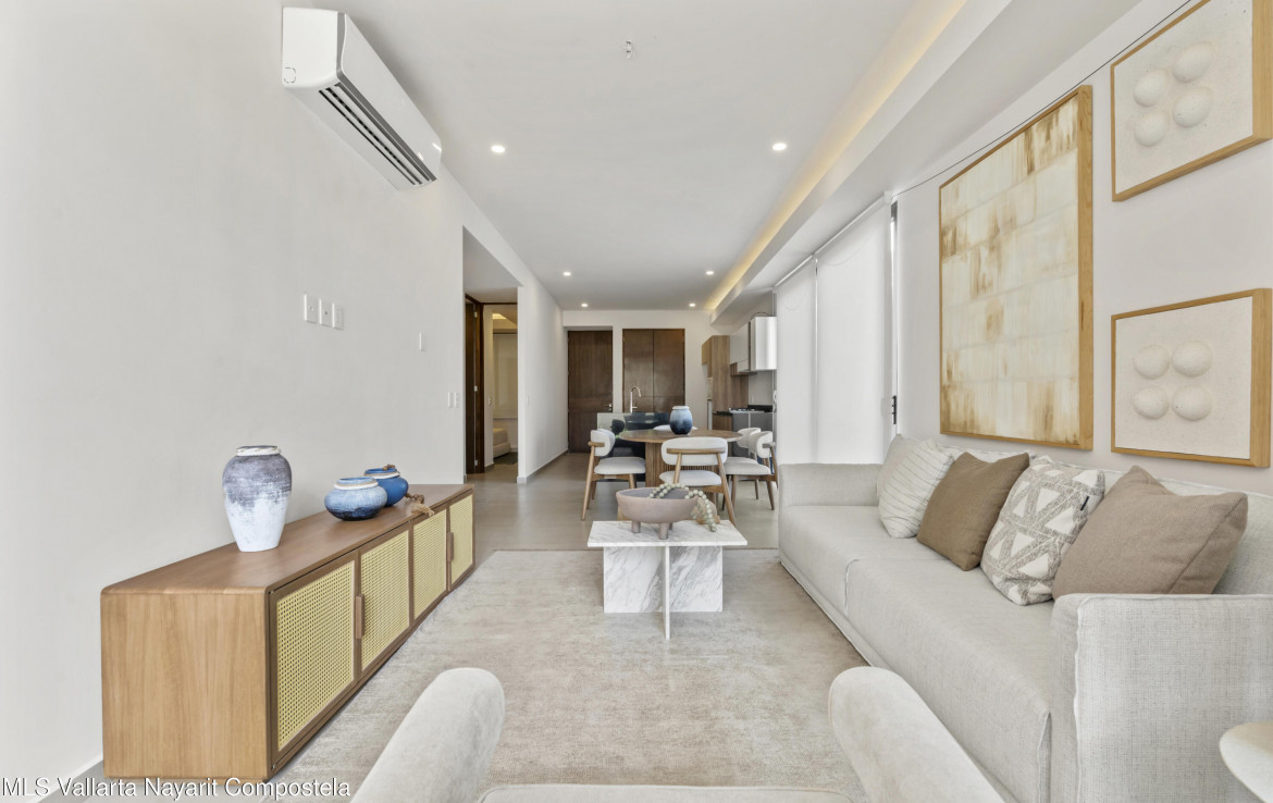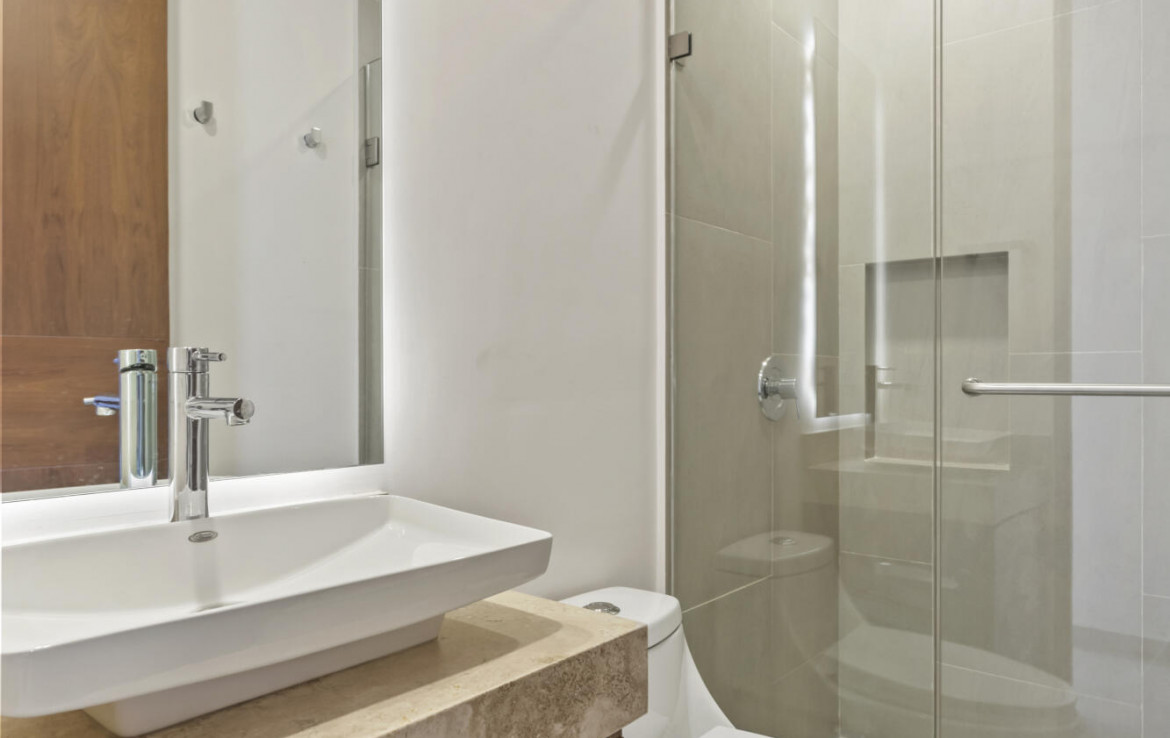 Allegra is an exclusive development of 40 luxury apartments just a few steps from the sea. It combines architectural excellence with an extraordinary location. All units are 2 bedroom 2 bathroom apartments with views over the city and partial ocean views. Amenities include a rooftop pool, jacuzzi, gym, zen garden, co-working space, lobby, underground parking, and elevator. Allegra es un exclusivo desarrollo de departamentos de lujo a unos pasos del mar. Combina la excelencia arquitectonica con una ubicacion extraordinaria. Todas las unidades son apartamentos de 2 dormitorios y 2 banos con vistas a la ciudad y vistas parciales al mar. Amenidades cuenta con alberca y jacuzzi en la azotea, gimnasio, jardin zen, espacio coworking, lobby, estacionamiento subterraneo y elevador.
