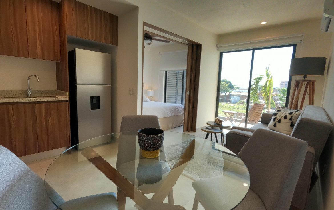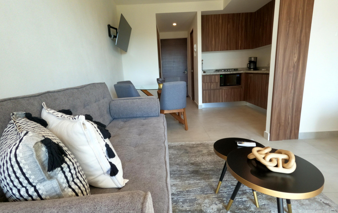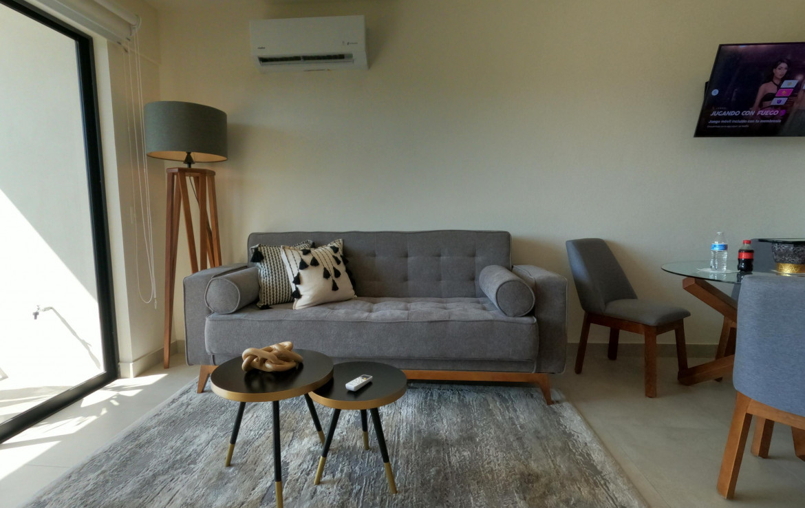 Departamento amueblado ideal para vivir o rentar. Disfruta de todas las comodidades y una excelente ubicacion.Este departamento amueblado, ubicado en el Condominio Altea, ofrece alberca con palapa y area de asadores, gimnasio al aire libre, areas verdes y seguridad las 24 horas y rooftop.Con diseno abierto y sus amplias ventanas crean un ambiente fresco y acogedor.Su recamara con walk-in closet y bano completo, junto con la cocina integral equipada, haran de tu dia a dia una experiencia unica.Moderno y funcional, combinado con una ubicacion estrategica.//PRECIO EN PESOS $3.4M – CUENTA CON CREDITO INFONAVIT AL CORRIENTE ** PRICE IN PESOS $3.4M – IT HAS A MORTAGE/INFONAVIT PAYMENTS UP-TO-DATE// **NO PARKING ** NO ESTACIONAMIENTO**Fur