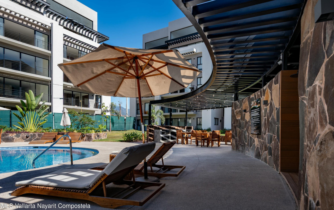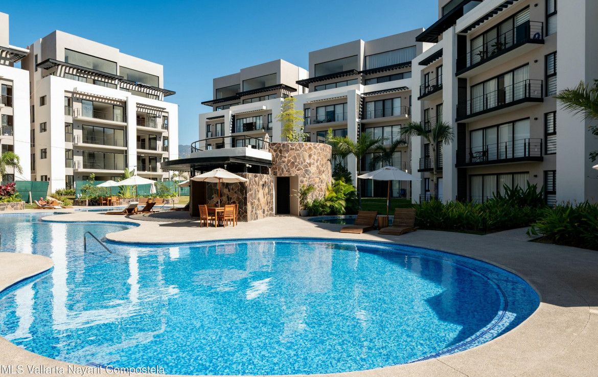 Modern condo in Altea, La Floresta. Brand new, 95.6 m with 2 bedrooms, 2 bathrooms, semi-equipped kitchen, and terrace overlooking the pool. Luxury amenities: pool, gym, BBQ area, elevator, pet area, and 24/7 security. Perfect as a vacation rental or full-time home….Estrena moderno departamento en Altea, La Floresta. 95.6 m con 2 recamaras, 2 banos, cocina semi equipada, terraza con vista a la alberca. Amenidades de lujo: gimnasio, alberca, area BBQ, elevador, seguridad 24/7 y zona para mascotas. Ideal para vivir comodamente o como inversion vacacional.