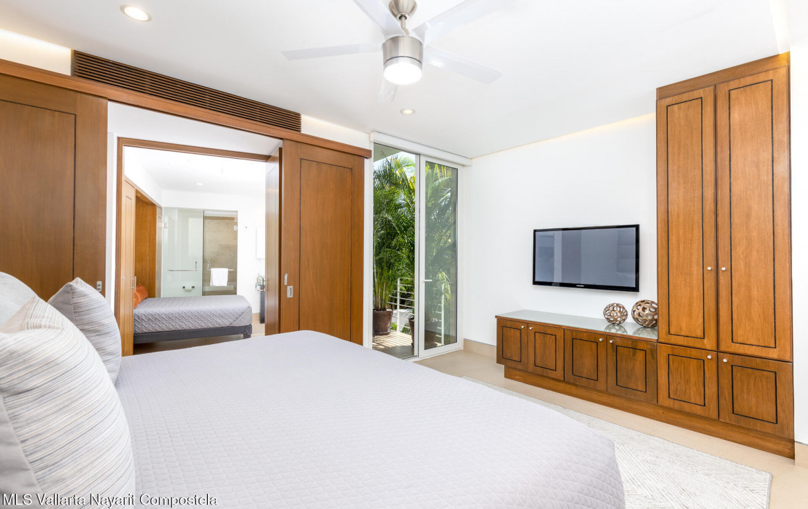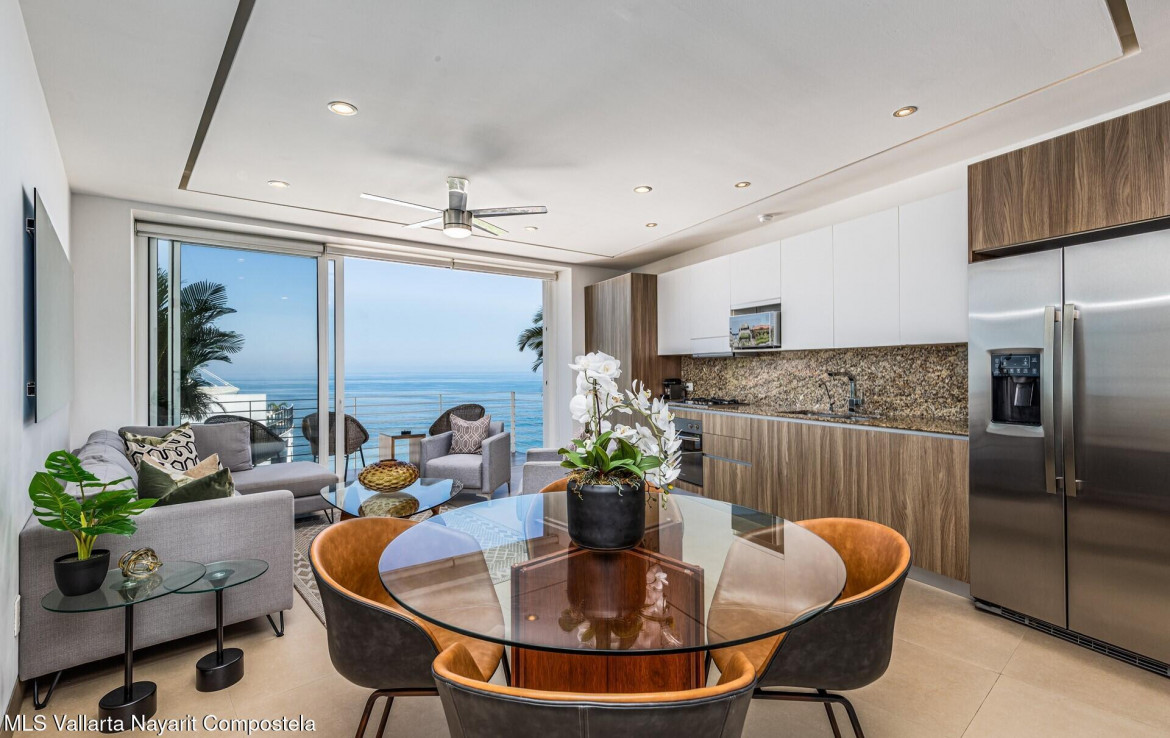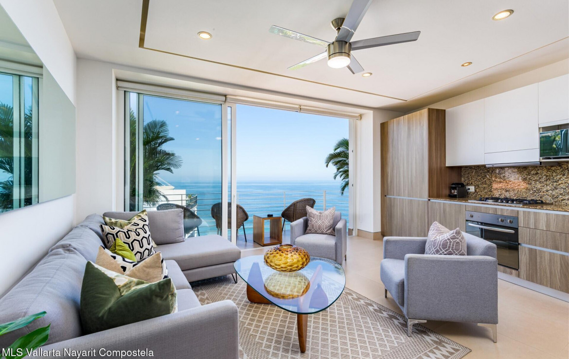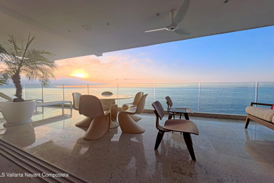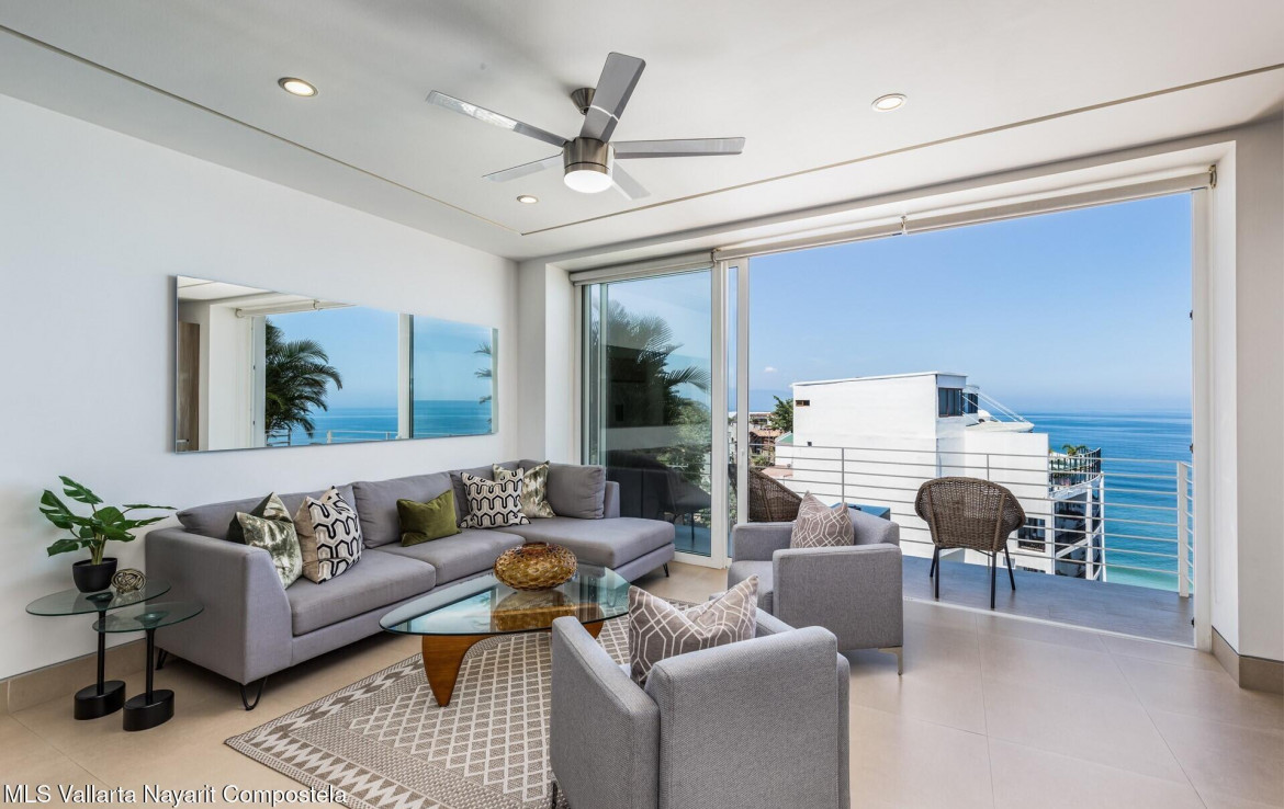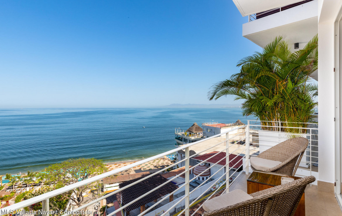 STUNNING OCEAN & SUNSET VIEWS from your private balcony and the building’s ROOFTOP INFINITY POOL! Just a flight of stairs from Los Muertos Beach and Vallarta’s favorite hotspots like Blue Chairs, Mantamar, and Almar Resort, this beautiful 2-bedroom, 2-bath condo combines contemporary comfort with an unbeatable location. The sought-after Amapas 353 offers two convenient entrances (upper highway access with guest parking and lower Amapas access), plus a rooftop oasis featuring one of the best infinity pools in the bay, shaded cabanas, outdoor kitchen, BBQ area, and a lower-level fitness center.