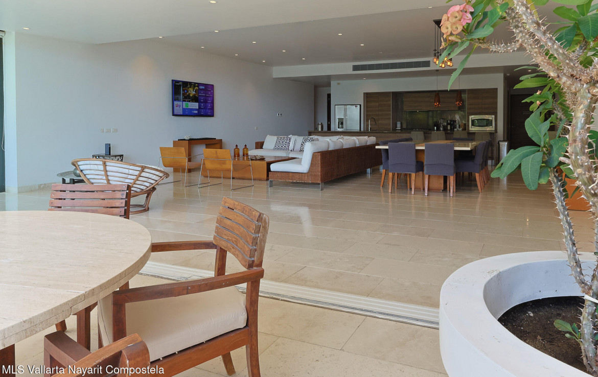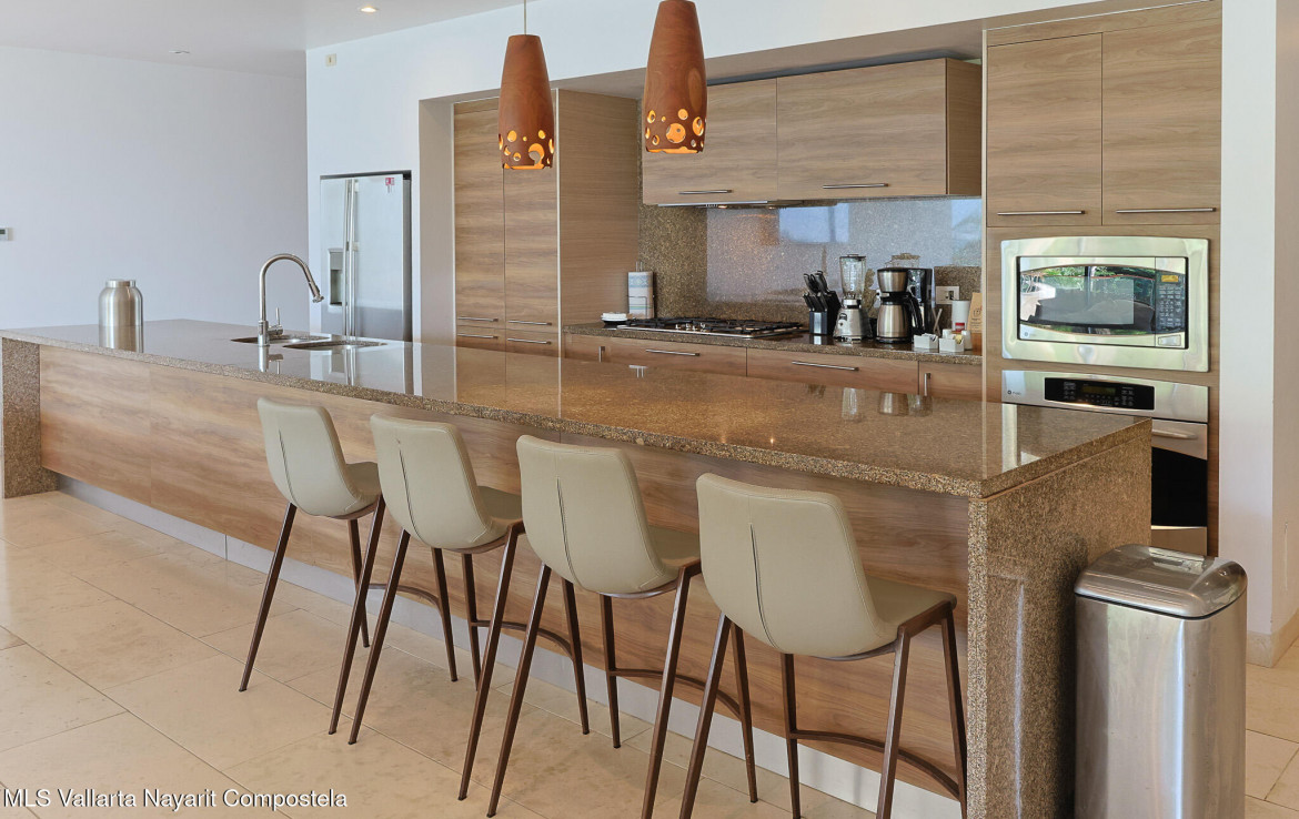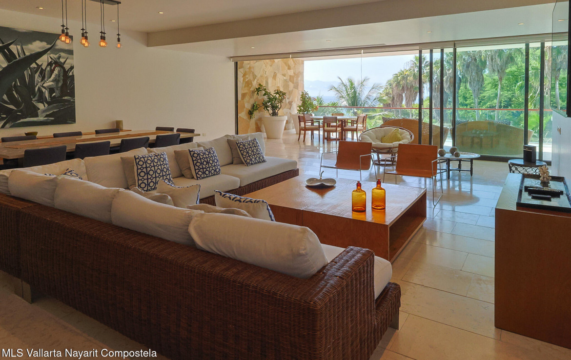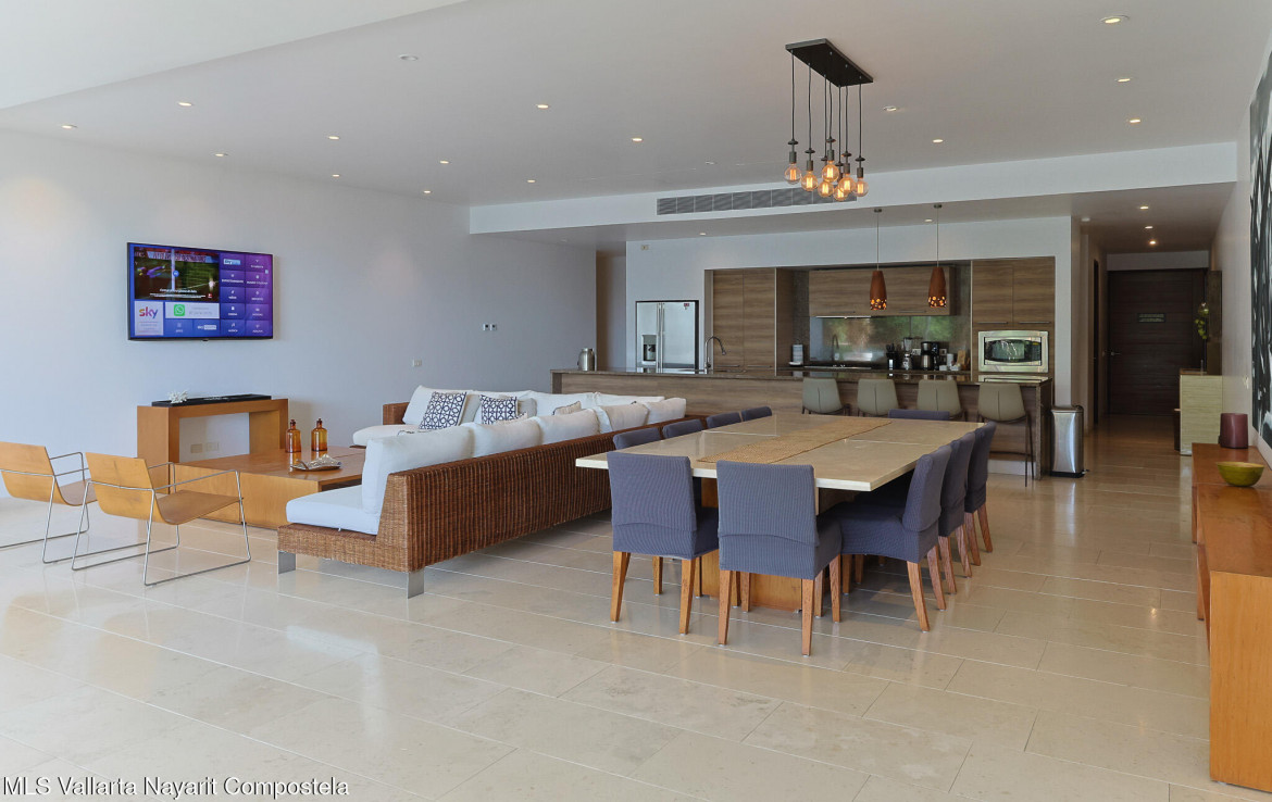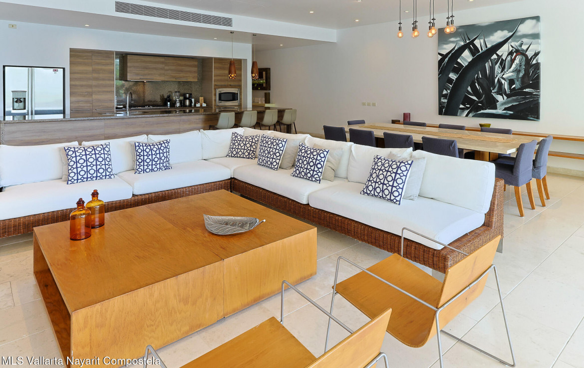 Arena Blanca son los unicos condominios con una bahia privada en Bahia de Banderas. Uno de los ultimos condominios impresionantes y espaciosos ubicados antes de Punta MIta. Estos condominios se sienten como una residencia de un piso ya que su diseno es abierto, funcional y muy comodo. El diseno de todo el complejo es contemporaneo y ha incorporado el uso de piedra, madera y otros elementos tropicales interesantes. El condominio se vende amueblado y como esta. Las areas comunes incluyen varias piscinas, gimnasio, spa, restaurante bar, playa con sombrillas y camastros, cancha de padel vallet parking y estacionamiento cubierto. Es una maquina de dinero de rentas vacacionales y Airbnb. Propiedad dificil de mostrar por ritmo elevado de rentas, razon por la que sigue disponi