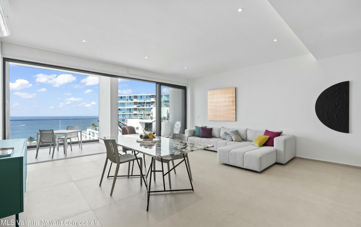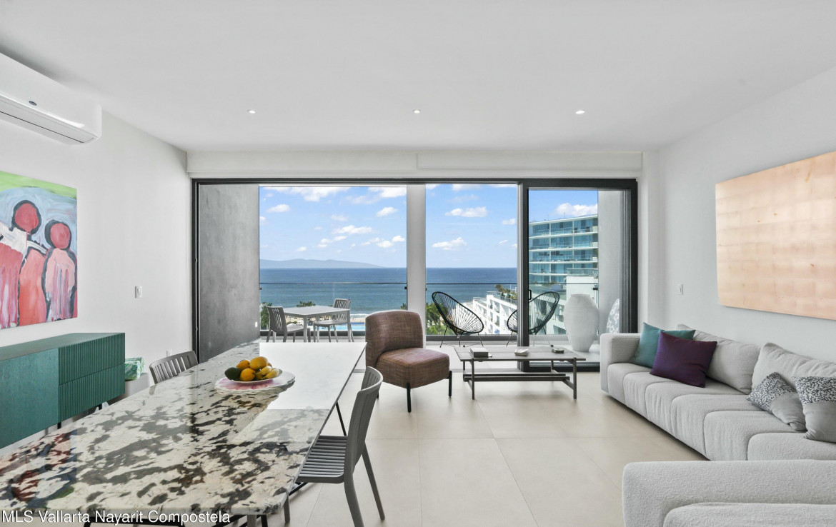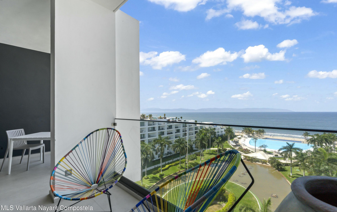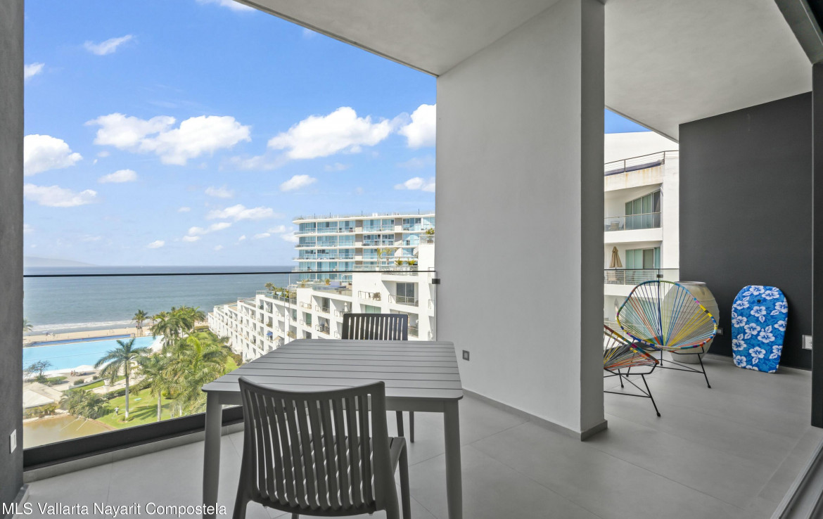 Beautiful beachfront condo located on the pristine beach of Nuevo Vallarta at Aria Ocean ( The new tower just delivered 2023). This unit is located on 9th floor and has 2 balconies. Front balcony with Amazing ocean view and back balcony with mountain views. The wide sandy beach and calm surf invites you to come take a dip in the warm water or simply lounge around one of the two large infinity pools or the smaller pool set right on the sand. This 2 bed, 2 bath condo with extra space could turn in to 3rd bedroom has also 1 deed parking.There are 2 balconies one with amazing ocean views and back balconies with lovely mountain views that you can admire . The beautiful grounds are filled with palm trees, plants, flowers and a large fountain make this a truly calming space.Beach front e