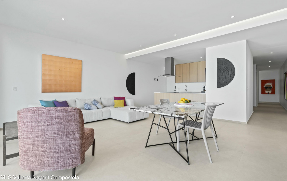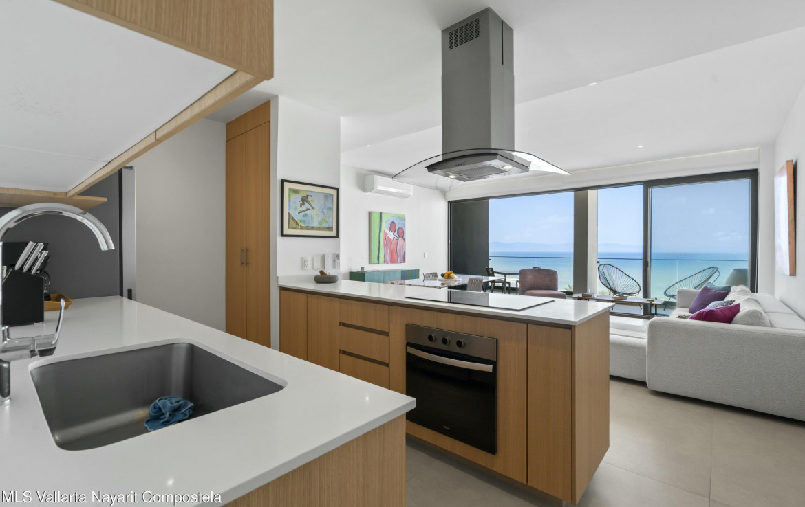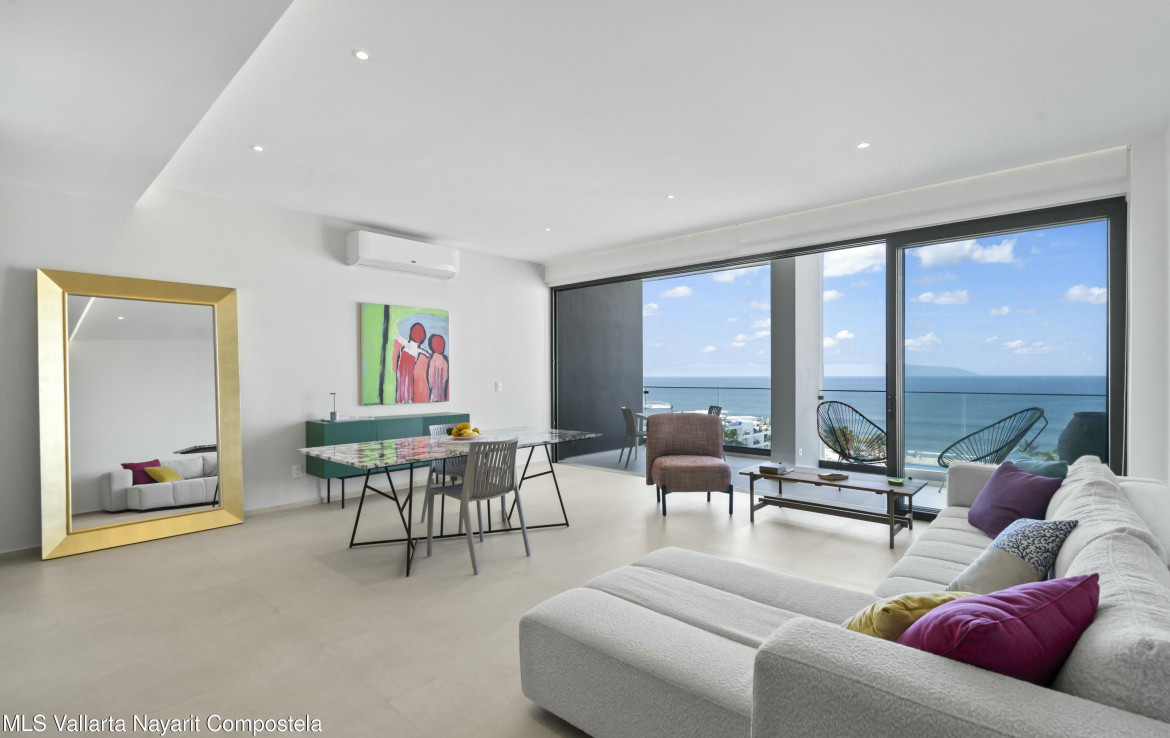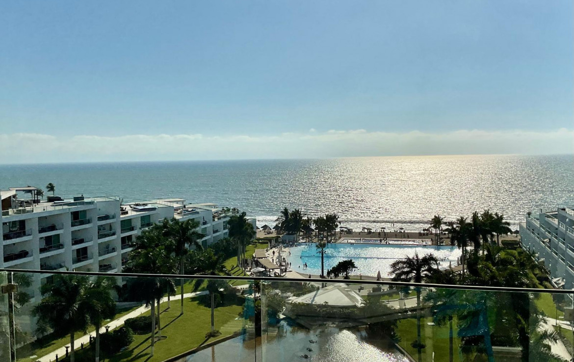 Beautiful beachfront condo located on the pristine beach of Nuevo Vallarta at Aria Ocean ( The new tower just delivered 2023). This unit is located on 9th floor and has 2 balconies. Front balcony with Amazing ocean view and back balcony with mountain views. The wide sandy beach and calm surf invites you to come take a dip in the warm water or simply lounge around one of the two large infinity pools or the smaller pool set right on the sand. This 2 bed, 2 bath condo with extra space could turn in to 3rd bedroom has also 1 deed parking.There are 2 balconies one with amazing ocean views and back balconies with lovely mountain views that you can admire . The beautiful grounds are filled with palm trees, plants, flowers and a large fountain make this a truly calming space.Beach front e