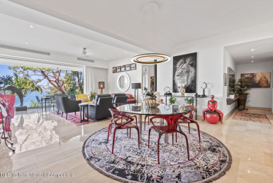 Entre a este predio de lo ultimo en sofisticacion una unidad de esquina muy raramente disponible en la esquina mas deseada. Propiamente amueblado y decorado por un disenador celebrado internacional, este hogar de 2 recamaras y dos banos y medio presenta vistas al mar combinado con vista al pueblo. Cuenta con gimnasio y estacionamiento cubierto. Dos albercas extra grandes completan el paquete.Enter a property of utmost sofisticacion a very rarely available corner unit on the most desirable corner. Properly furnished and decorated by a celebrated international designer, this 2 bedroom 2.5 bath home presents with ocean views combined with town views. Gymnasium and covered parking. Two extra large swimming pools complete the package.