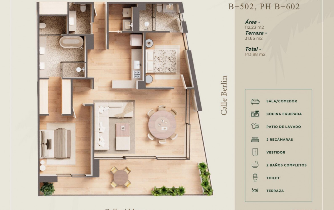 Aymara Versalles, ubicado en el centro de la Colonia Versalles, Sobre calle Aldanaca yBerlin, es un proyecto unico y exclusivo que consta de 43 espectaculares departamentos y7 locales comerciales con una propuesta y diseno inigualable. Los departamentos tienen un area desde 64.55 m2 hasta los 143.88 m2. Se configura el edificio de 12 unidades de unarecamara y 1.5 Banos (Tipo A). Hay 16 unidades de 2 recamaras 2 banos completos (Tipo B). 5 unidades de 2 recamaras 2.5 Banos completos (Tipo B+), y 10 unidades de 3 recamaras 3 banos completos (Tipo C).Los acabados premium, las amplias terrazas, las increibles areas comunes, las encantadoras vistas y todo aquello que conforma el proyecto lo hace ser la mejor Inversion