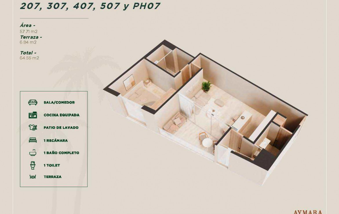 Aymara Versalles se encuentra en el corazon de la Colonia Versalles, en las calles Aldanaca y Berlin, una de las zonas de mas rapido crecimiento de Puerto Vallarta. El complejo cuenta con 43 unidades residenciales y una selecta variedad de practicos locales comerciales, dentro de un concepto moderno que combina un diseno cuidado, funcionalidad y una ubicacion muy conveniente. Las residencias tienen entre 64,55 m2 y 143,88 m2, con distribuciones de 1, 2 y 3 dormitorios disenadas tanto para una vida comoda como para un solido potencial de inversion. El proyecto ofrece acabados de alta calidad, amplias terrazas y acogedoras zonas comunes que complementan el dinamico estilo de