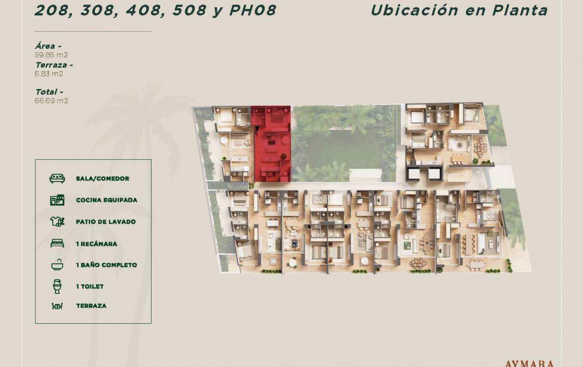 Aymara Versalles se encuentra en el corazon de la Colonia Versalles, en las calles Aldanaca y Berlin, una de las zonas de mas rapido crecimiento de Puerto Vallarta. El complejo cuenta con 43 unidades residenciales y una selecta variedad de practicos locales comerciales, dentro de un concepto moderno que combina un diseno cuidado, funcionalidad y una ubicacion muy conveniente. Las residencias tienen entre 64,55 m2 y 143,88 m2, con distribuciones de 1, 2 y 3 dormitorios disenadas tanto para una vida comoda como para un solido potencial de inversion. El proyecto ofrece acabados de alta calidad, amplias terrazas y acogedoras zonas comunes que complementan el dinamico estilo de