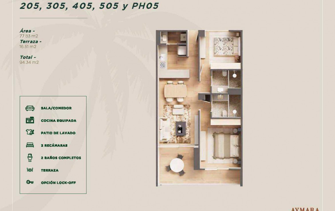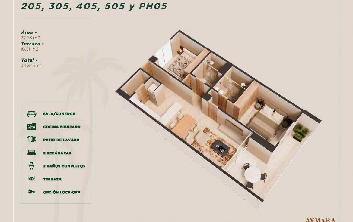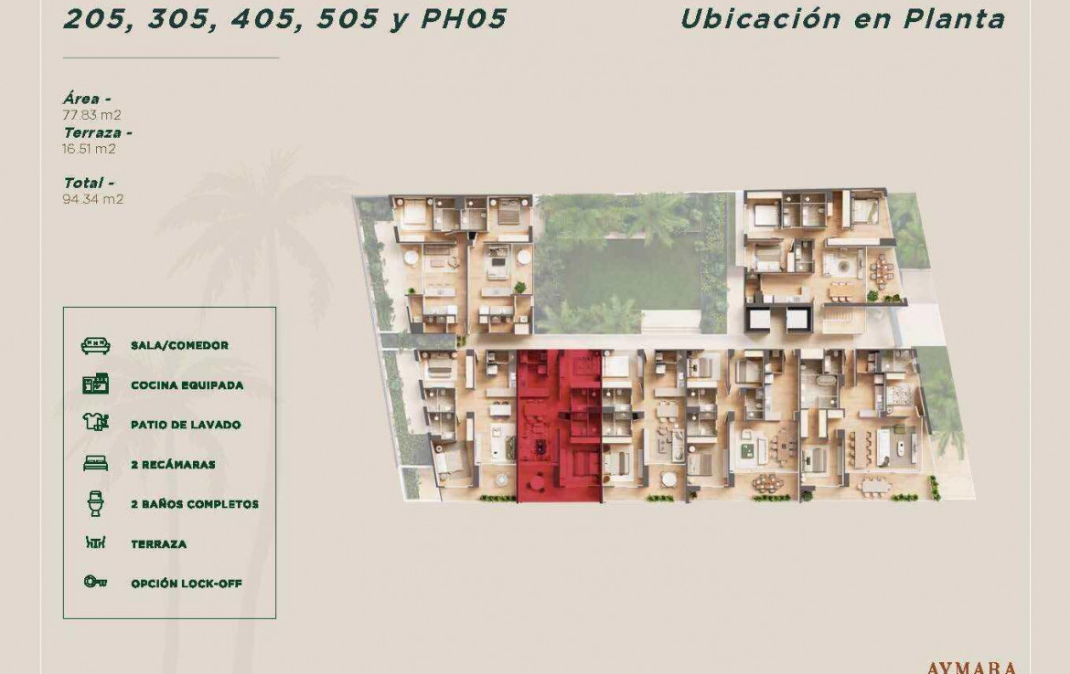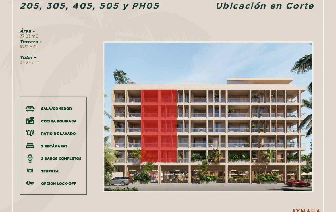 Aymara Versalles se encuentra en el corazon de la Colonia Versalles, en las calles Aldanaca y Berlin, una de las zonas de mas rapido crecimiento de Puerto Vallarta. El complejo cuenta con 43 unidades residenciales y una selecta variedad de practicos locales comerciales, dentro de un concepto moderno que combina un diseno cuidado, funcionalidad y una ubicacion muy conveniente. Las residencias tienen entre 64,55 m2 y 143,88 m2, con distribuciones de 1, 2 y 3 dormitorios disenadas tanto para una vida comoda como para un solido potencial de inversion. El proyecto ofrece acabados de alta calidad, amplias terrazas y acogedoras zonas comunes que complementan el dinamico estilo de