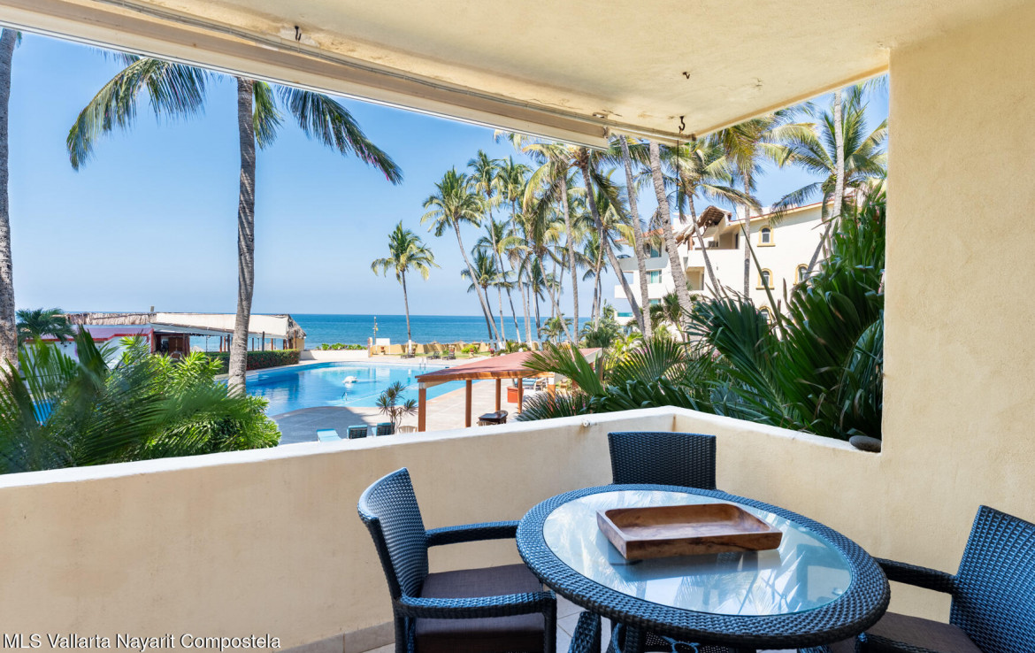 Enjoy spectacular ocean views and sunsets from this lovely one bedroom condo in a great park-like location Minutes from all the great amenities of Nuevo Vallarta. Just bring your suitcase. Completely outfitted and ready to move in or rent. Bahia del Sol is an established property with great revenue potential.