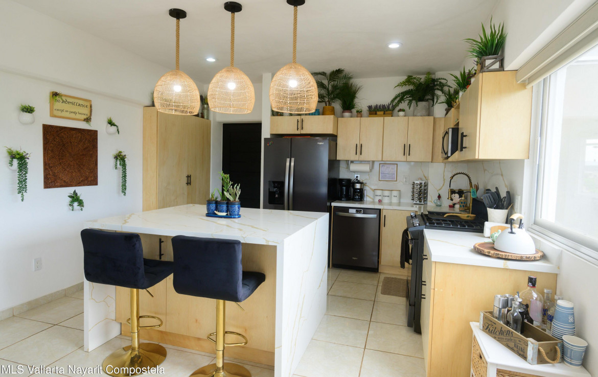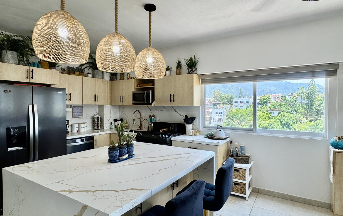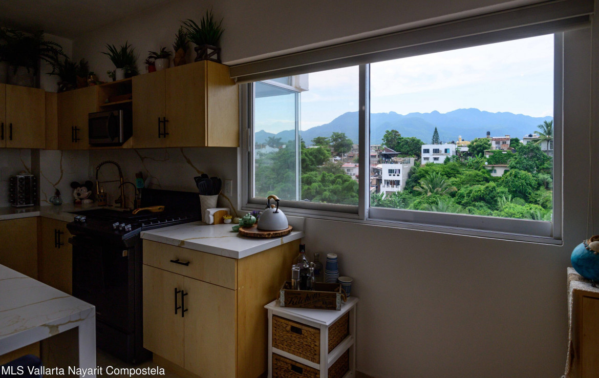 This beautifully remodeled 3-bed, 2-bathroom condo offers stunning panoramic views of the Sierra Madre mountains, and an ocean view on the horizon of the bay. It features a lock-off bedroom, making it an excellent option for both full-time living and rental income. This turn-key unit was fully renovated less than a year ago and comes furnished with new appliances & A/C units. Its smart corner layout allows for natural light and cross ventilation throughout the day. With only 24 units, 4 units per floor, the condo offers a peaceful and private atmosphere. Amenities include a rooftop pool, elevator, 1 deeded parking space, and is pet-friendly. Located in a traditional Mexican neighborhood, it’s perfect to live the local experience, just 10-15 minutes from the beach & Romantic Zone/Malecon.