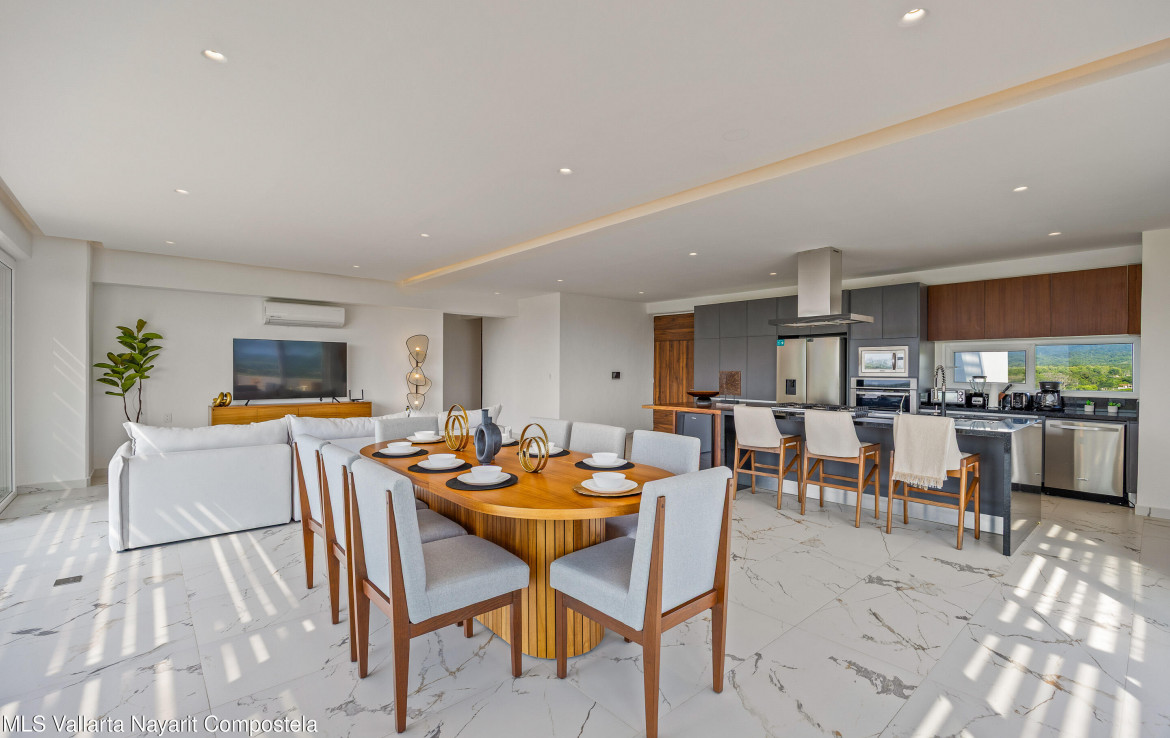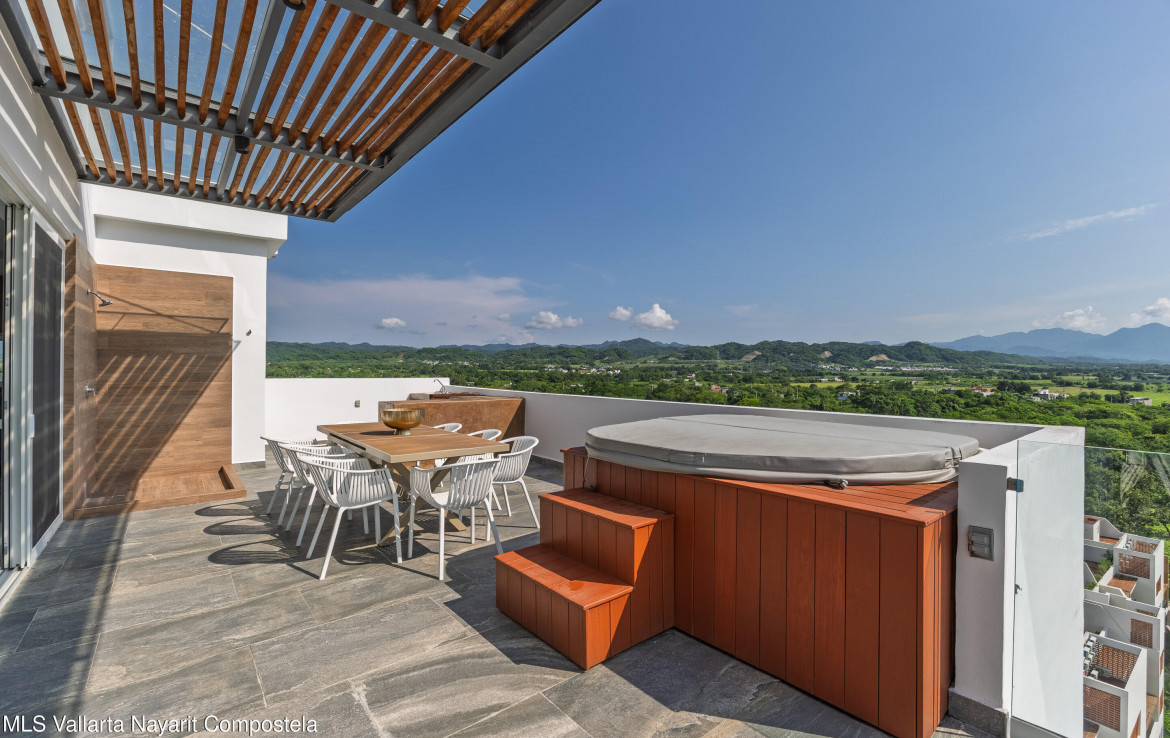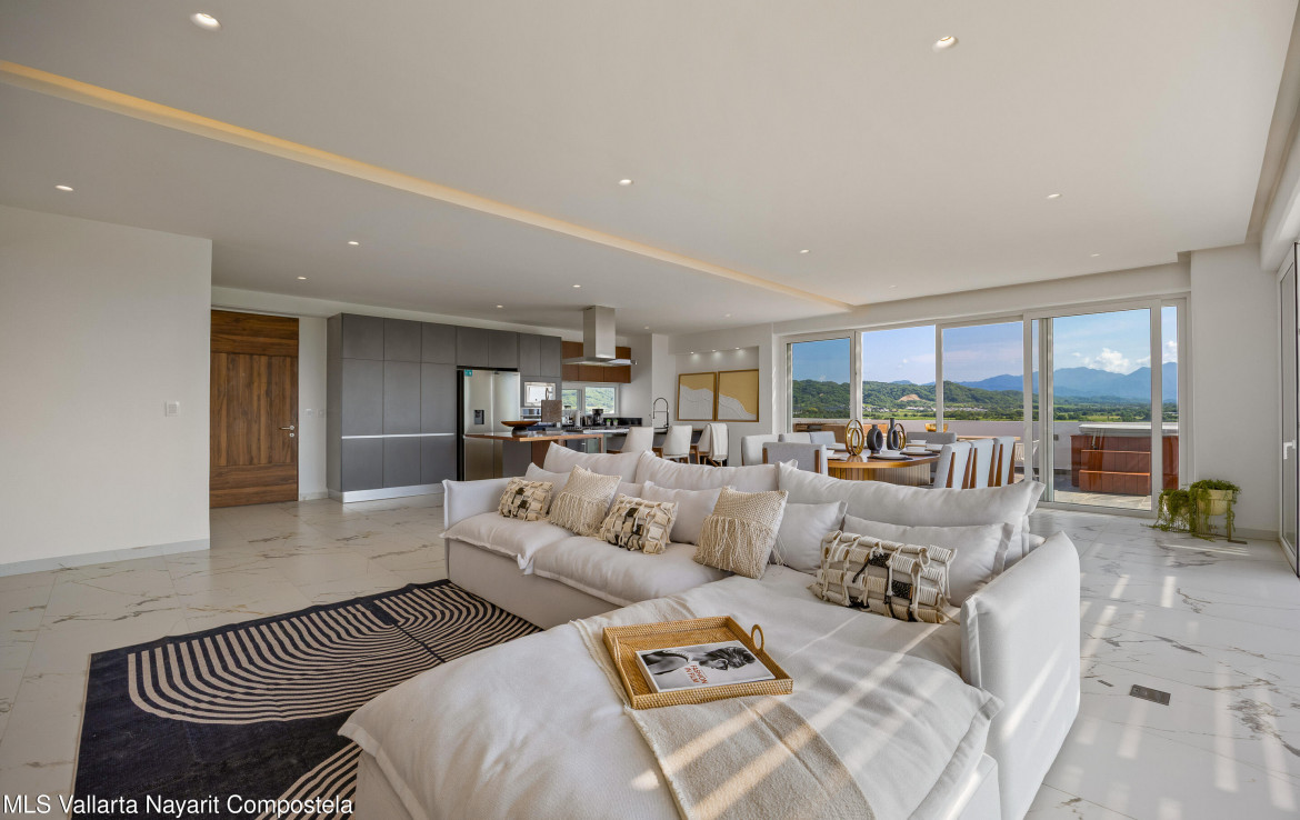 Believe PH1 es un amplio condominio de 4 recamaras en el area residencial Flamingos Sports Club. Este penthouse ofrece impresionantes vistas a las montanas, al mar y a la ciudad desde su balcon envolvente. Con mucha luz natural, los interiores blancos y limpios crean un ambiente fresco y elegante, mientras que la terraza con jacuzzi y asador es ideal para convivir.Disfruta de un estilo de vida excepcional con amenidades como alberca climatizada, rooftop con vistas panoramicas, gimnasio, area de yoga y espacios pet-friendly. Con el campo de golf cercano y la playa a poca distancia, este condominio combina perfectamente confort, lujo y ubicacion. — ENGLISH—