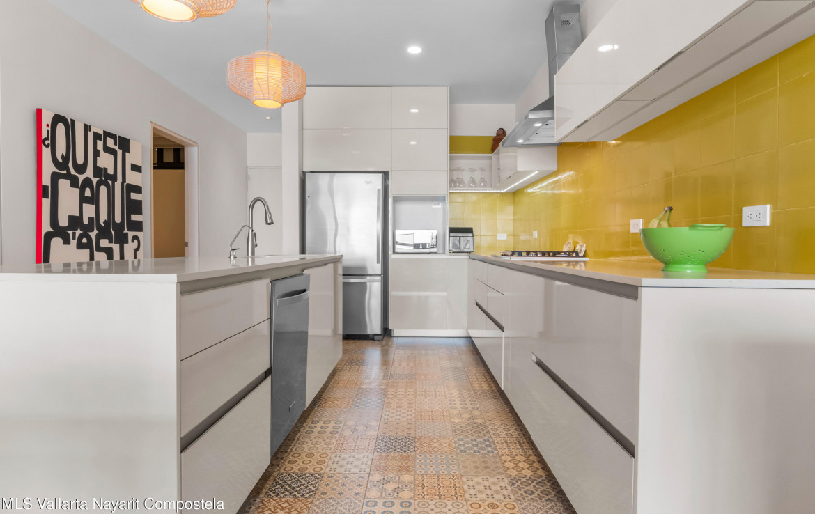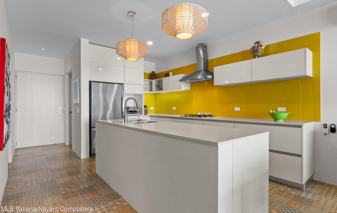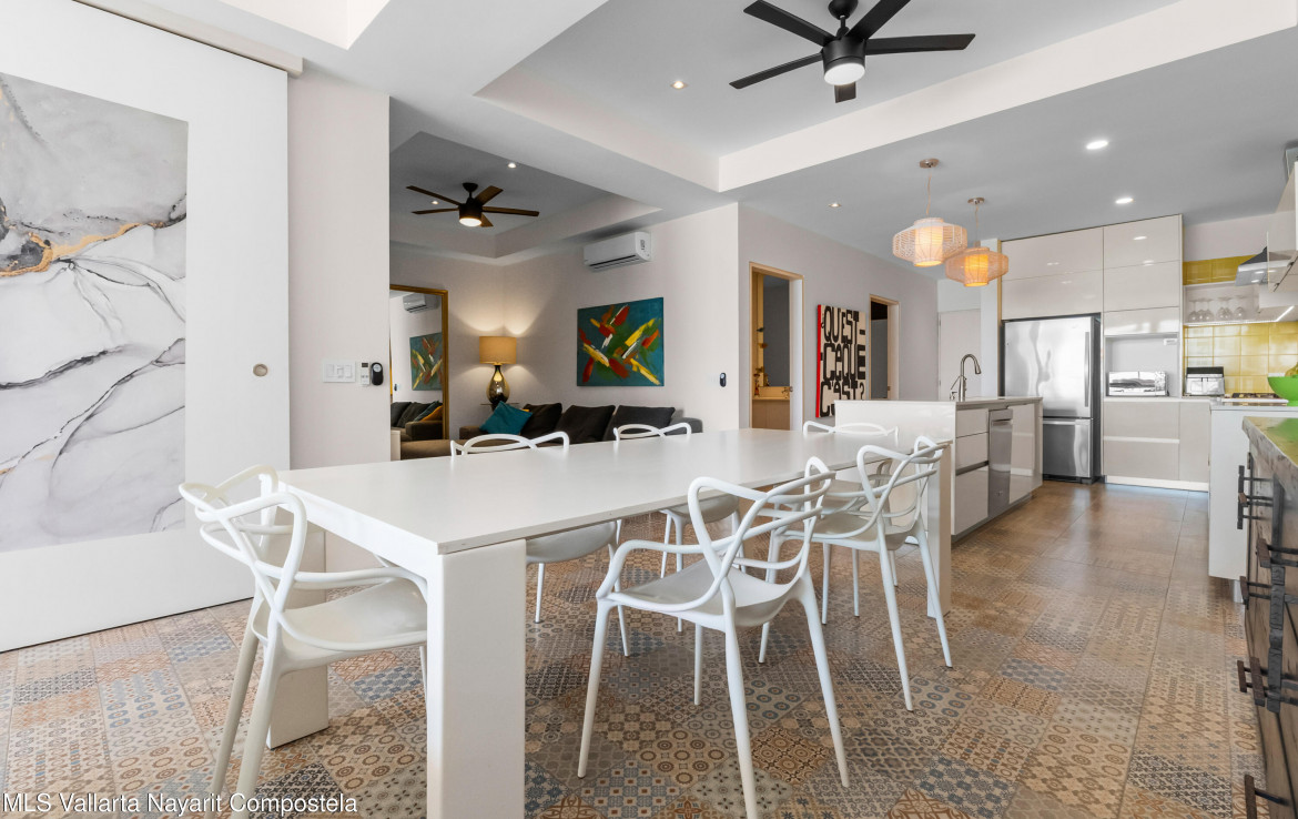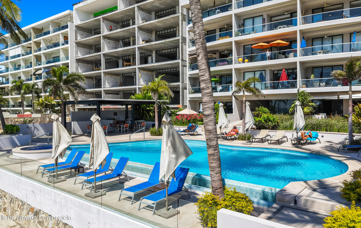 In English below.Bienvenido a una oferta exclusiva en el corazon de la codiciada Zona Dorada de Bucerias. Ubicado en un intimo complejo boutique de solo 16 unidades, esta propiedad frente a la playa ofrece la combinacion perfecta de privacidad, seguridad y una vibrante vida costera. Al salir de tu puerta, te encontraras rodeado de galerias de arte, restaurantes de clase mundial y tiendas boutique.Esta residencia en el tercer nivel es verdaderamente unica, meticulosamente personalizada durante la construccion por una estilista profesional. A diferencia de las unidades estandar, este hogar presume acabados de disenador y detalles arquitectonicos exclusivos que