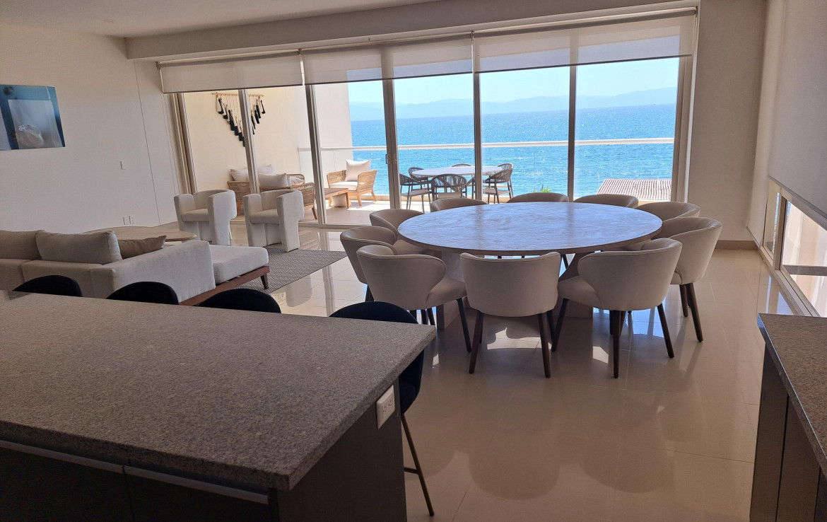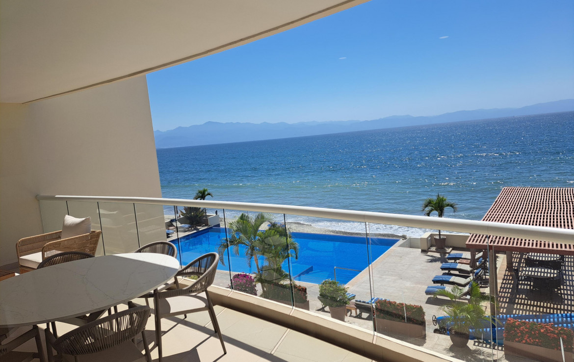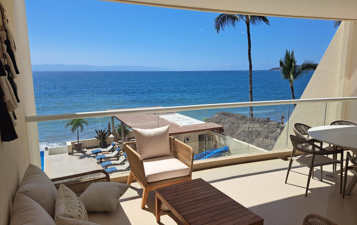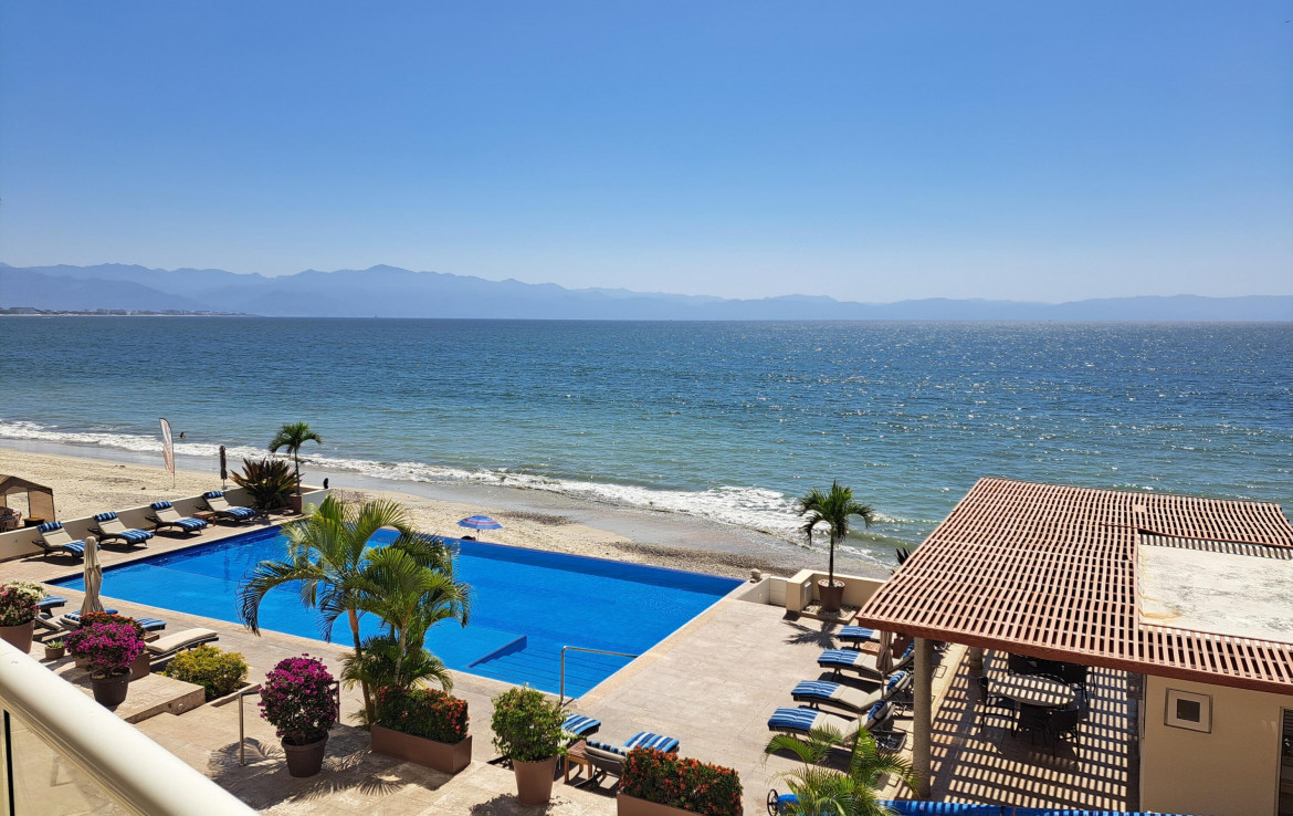 Price to sell condo with a great quiet location on a beautiful long sandy beach and walking distance to Bucerias town which is only 1 km with alll the best restaurants. This spacious condominium offers great sunsets all year long. This is one of only 26 residences in a contemporary style building with high quality finishes throughout. A large heated infinity pool with an open lounge deck terrace and a dream beachfront. Includes protected underground parking and a storage. The building offers purification and water softening system for your confort.