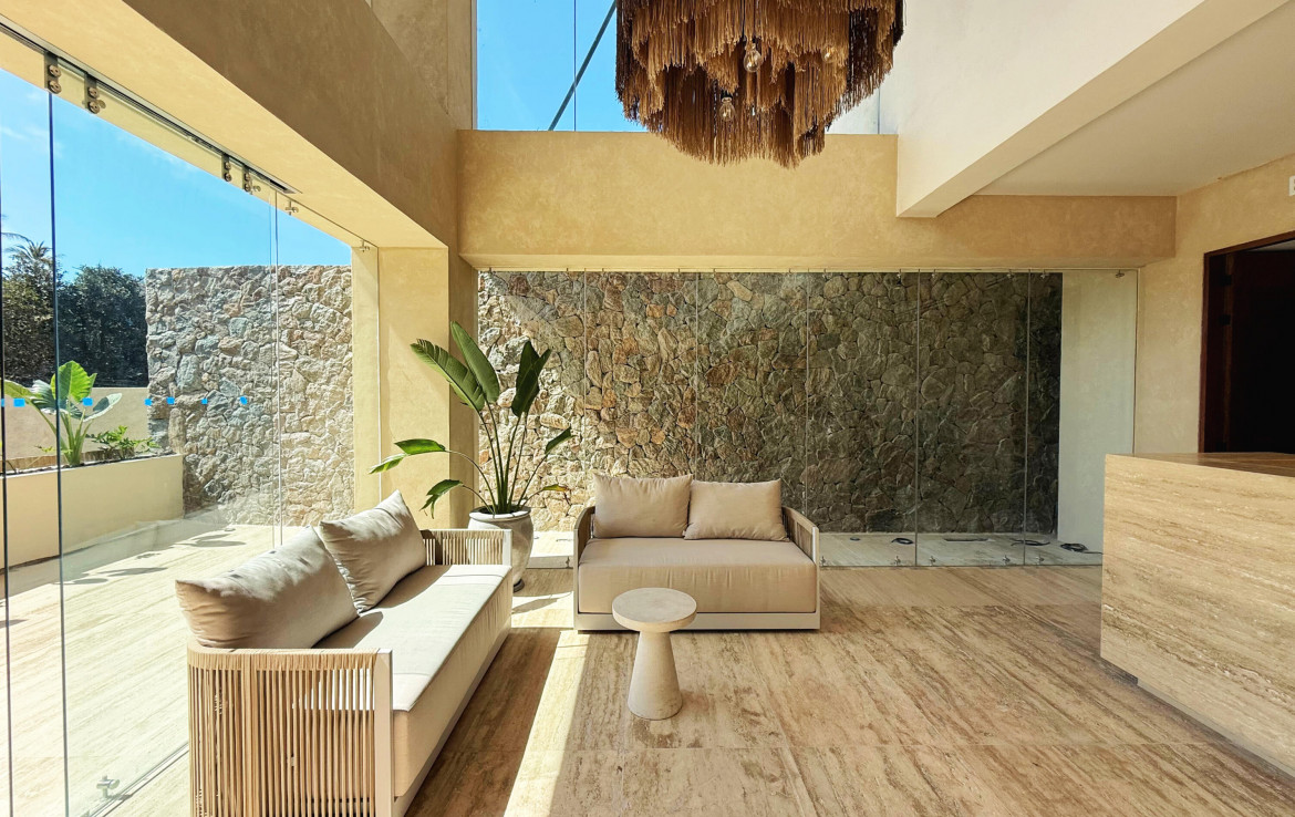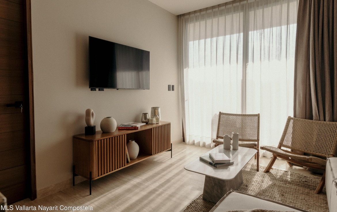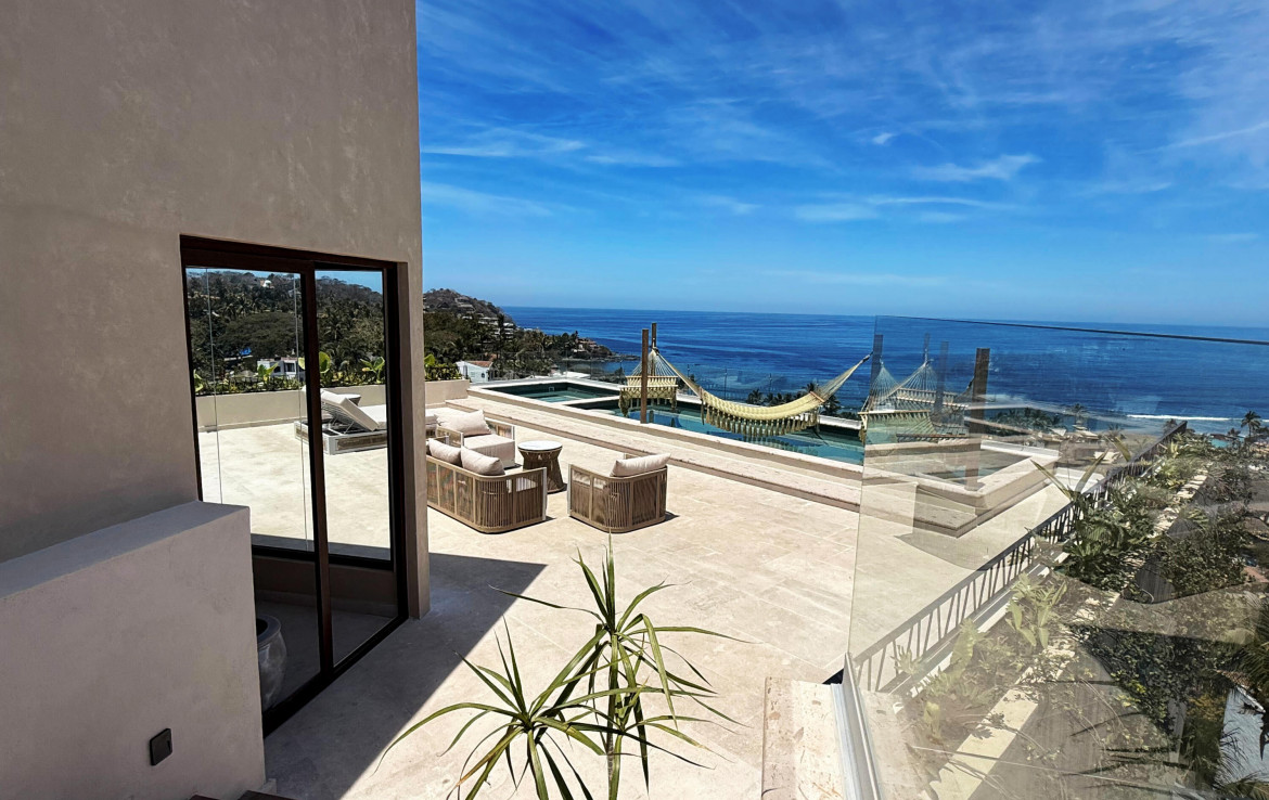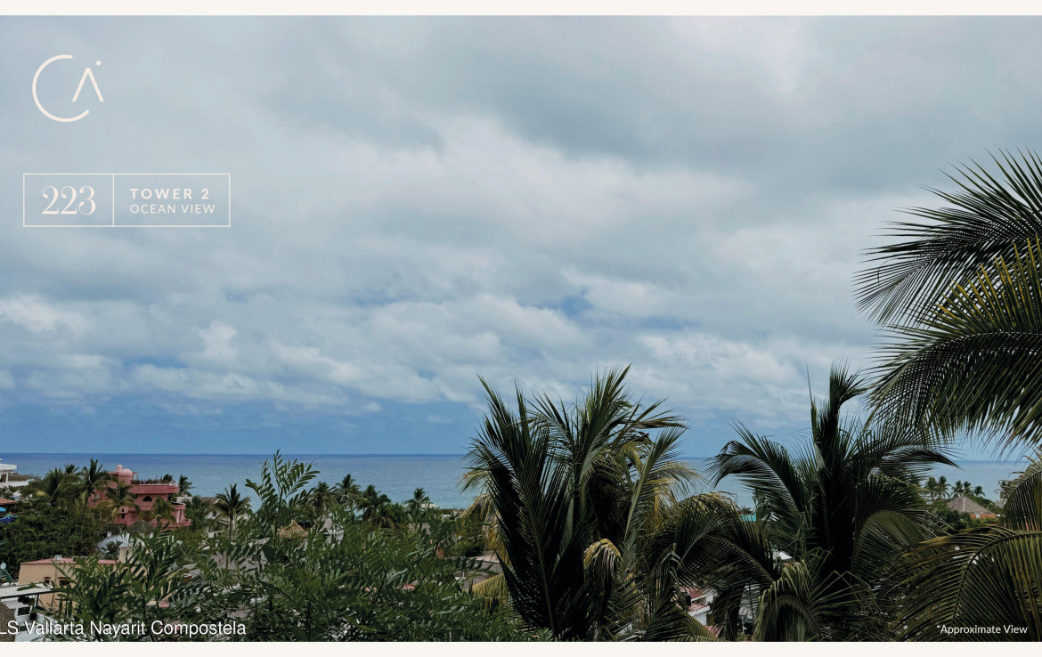 Unit 223 in Tower 2 is a sophisticated ocean-view, 2-bed, 2-bath residence on the second floor. It boasts an Italian-style kitchen with granite countertops and Parota wood cabinetry, an open living area, a king-size master suite and a queen-size second bedroom, modern baths with European-style fixtures, and contemporary finishes like marble flooring, mosaic accents, European PVC double-pane windows. Climate comfort is ensured by inverter minisplit AC and instant water heating. The terrace offers a serene ocean view, and the building’s upscale amenities–such as rooftop infinity pool and bar, hammock lounges, fitness and yoga deck, family pool, surfboard storage, co-working space, pet garden, and valet parking–complement the unit.