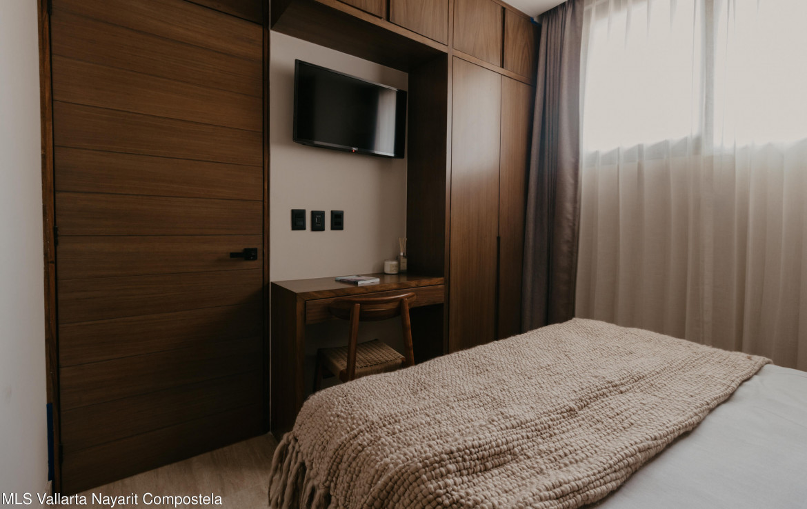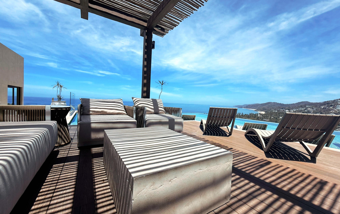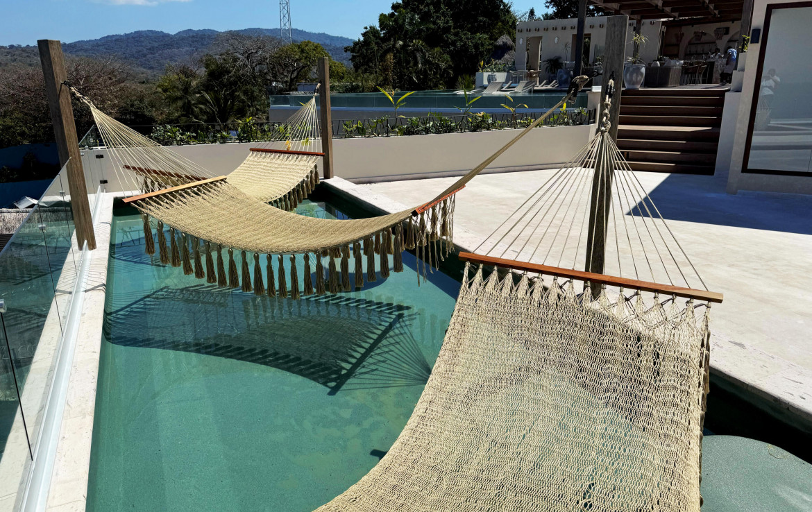 Unit 431 in Tower 4 is a sophisticated 2-bedroom, 2-bathroom. It boasts an Italian-style kitchen with granite countertops and Parota wood cabinetry, an open living area, a king-size master suite and a queen-size second bedroom, modern baths with European-style fixtures, and contemporary finishes like marble flooring, mosaic accents and European PVC double-pane windows. Climate comfort is ensured by inverter minisplit AC and instant water heating. The unit features a private plunge pool on one terrace and the other terrace offers serene ocean and jungle view. The building’s upscale amenities–such as rooftop infinity pool and bar, hammock lounges, fitness and yoga deck, family pool, surfboard storage, co-working space, pet garden, and valet parking–complement the unit.