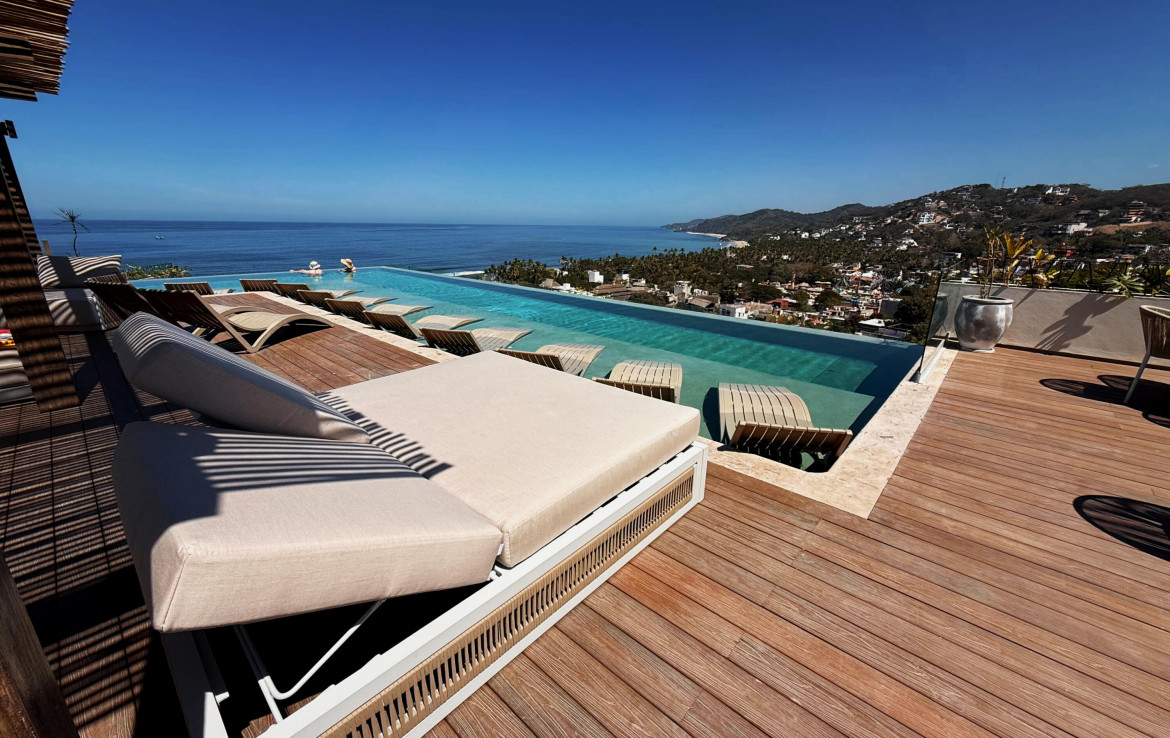 Unit 223 in Tower 2 is a sophisticated ocean-view, 2-bed, 2-bath residence on the second floor. It boasts an Italian-style kitchen with granite countertops and Parota wood cabinetry, an open living area, a king-size master suite and a queen-size second bedroom, modern baths with European-style fixtures, and contemporary finishes like marble flooring, mosaic accents, European PVC double-pane windows. Climate comfort is ensured by inverter minisplit AC and instant water heating. The terrace offers a serene ocean view, and the building’s upscale amenities–such as rooftop infinity pool and bar, hammock lounges, fitness and yoga deck, family pool, surfboard storage, co-working space, pet garden, and valet parking–complement the unit.