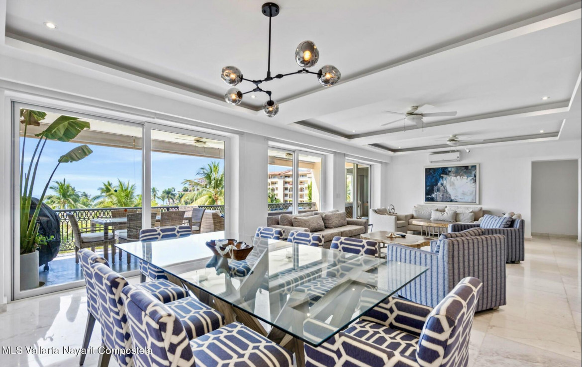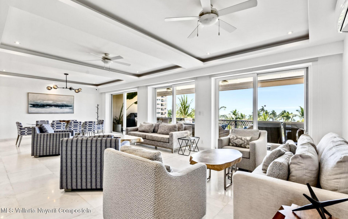 English BelowDescubre la elegancia costera en esta residencia frente al mar con 4 recamaras y 4 banos, ubicada en el exclusivo Condo Caracoles. Totalmente remodelada con acabados de lujo, mobiliario de disenador y vistas panoramicas a la Bahia de Banderas, combina el confort de una villa privada con el estilo de vida de un resort. Disfruta de atardeceres desde tu terraza y del sonido del mar. Amenidades de primer nivel: alberca infinita, gimnasio, canchas deportivas, restaurante, bar, club de playa, seguridad 24 h y ambiente pet-friendly. Entre la playa y el campo de golf de Marina Vallarta, ofrece lujo, serenidad y el encanto unico de Puerto Vallarta.