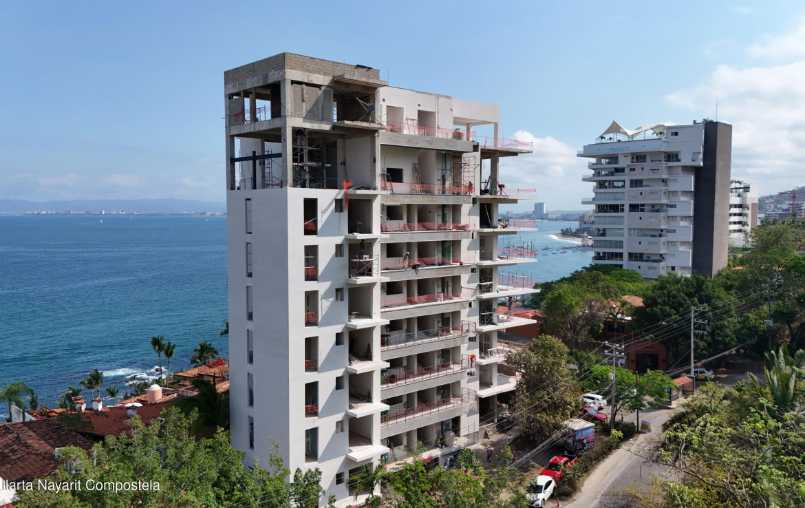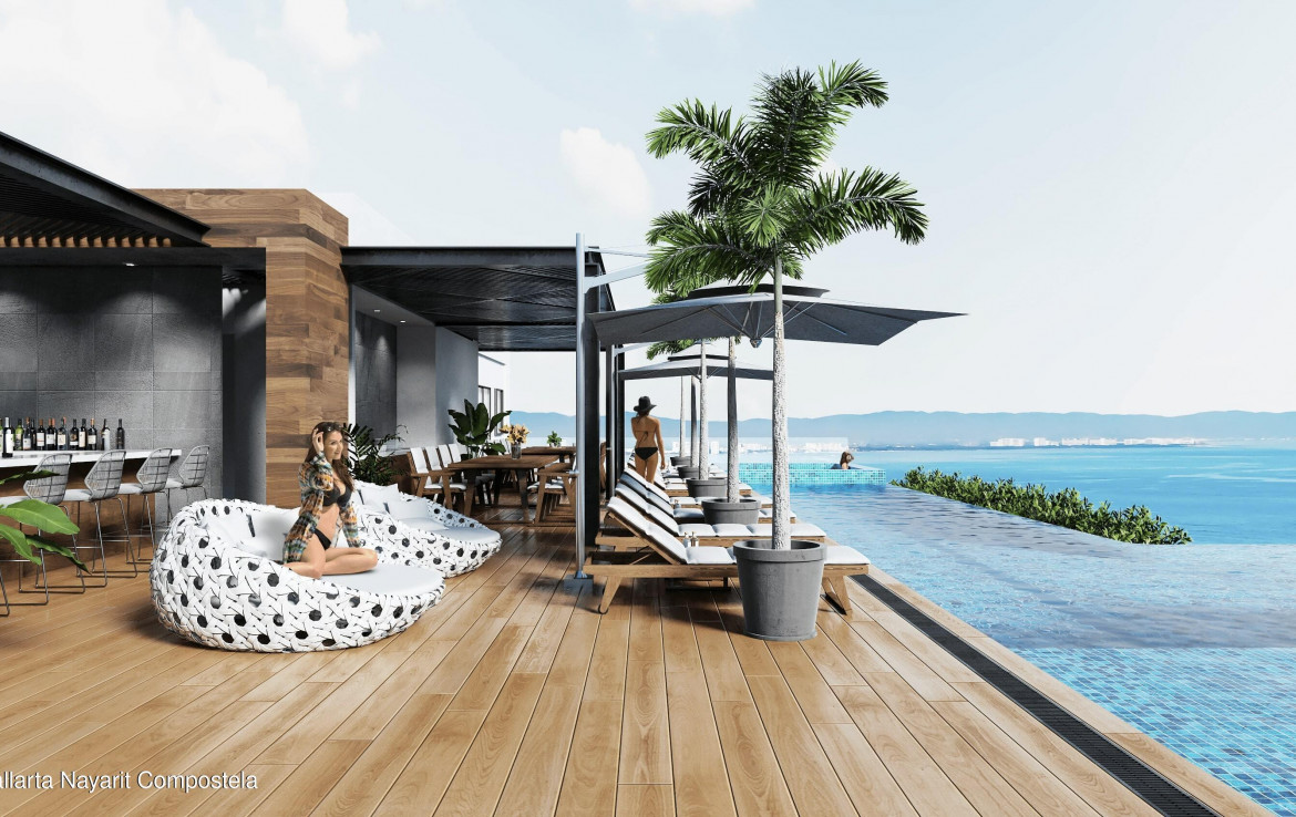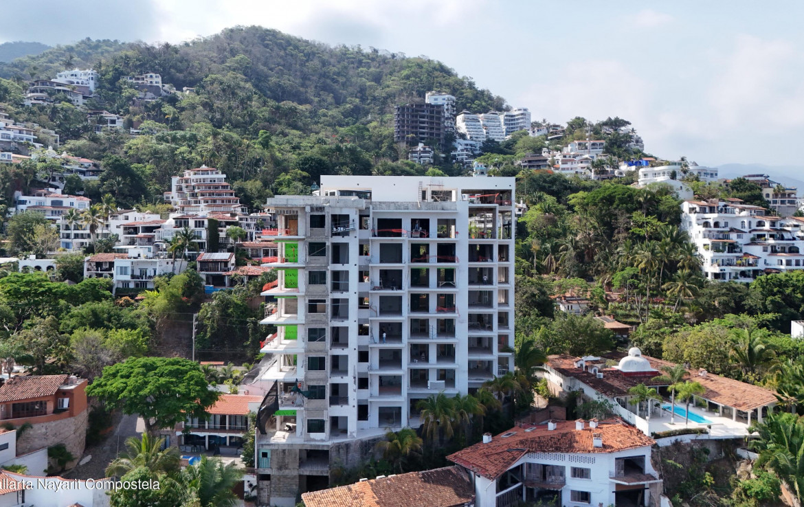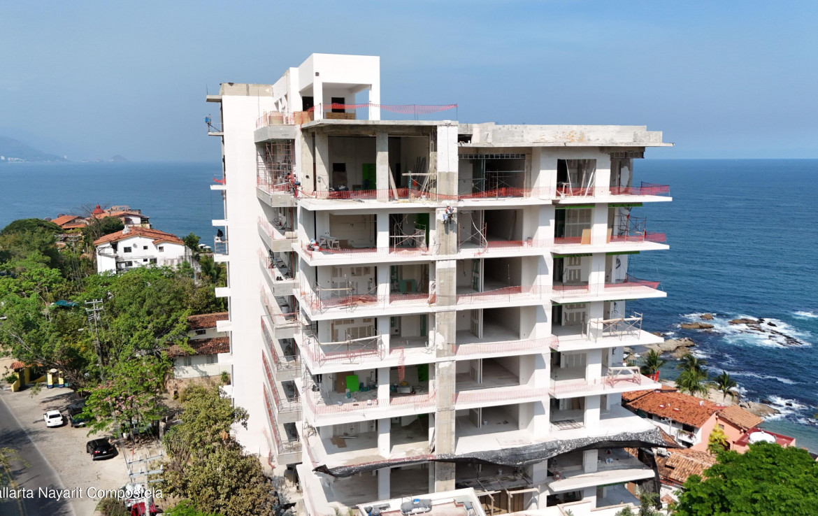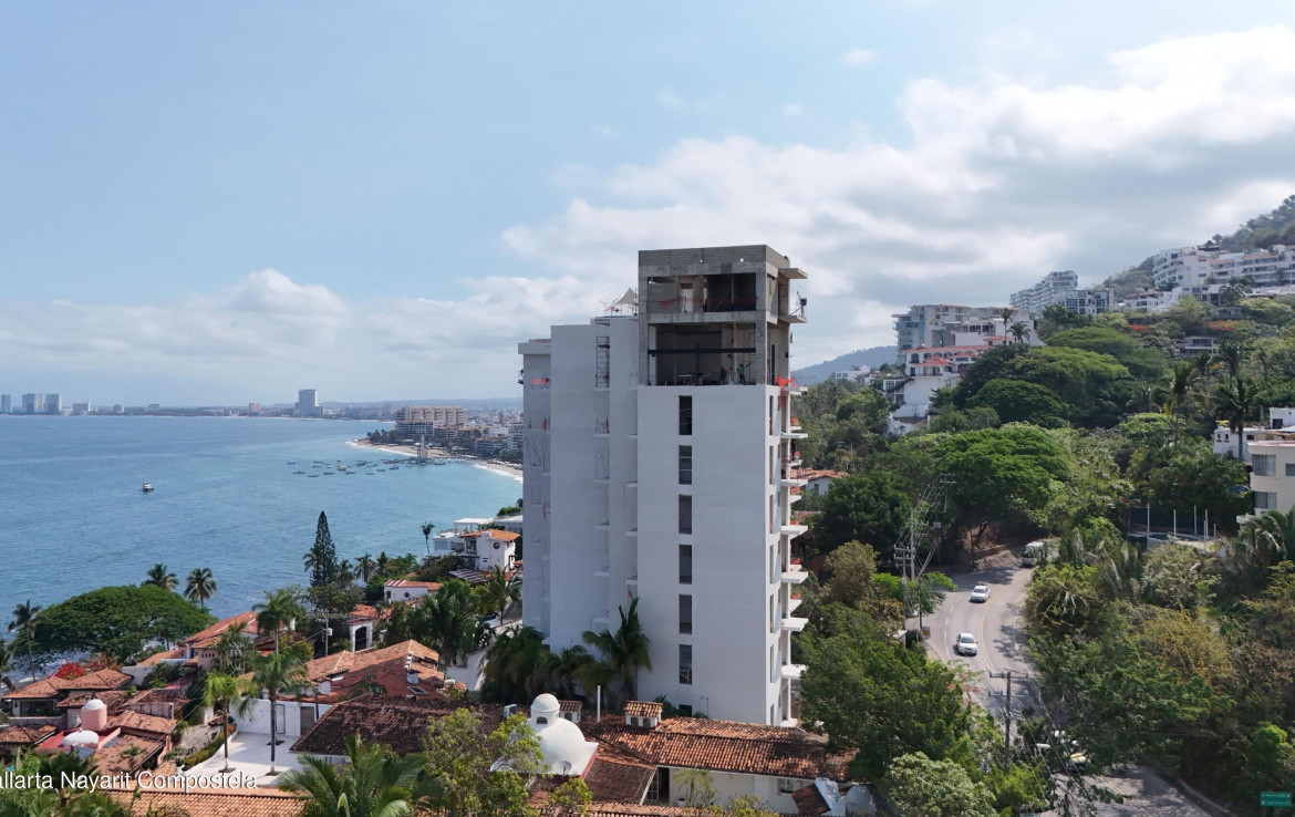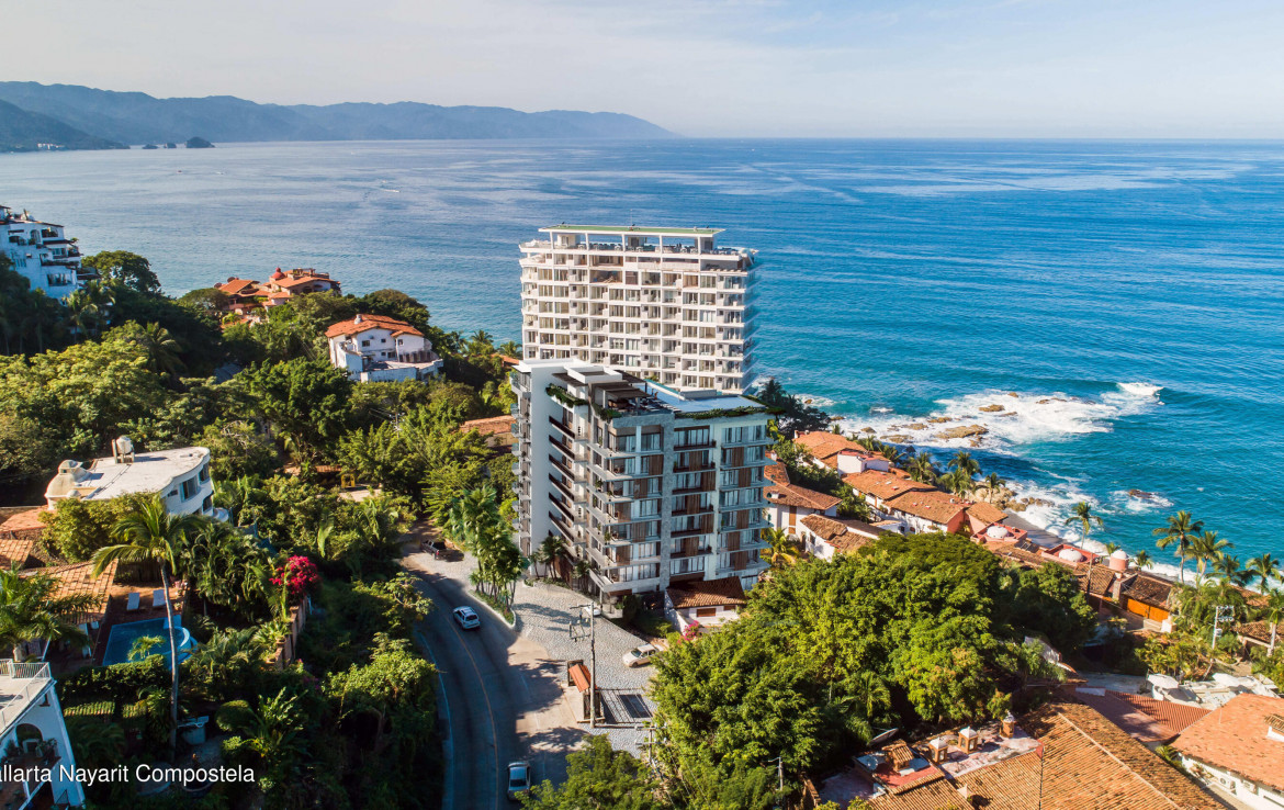 Carmelina offers luxury 1- and 2-bedroom oceanview condos for sale in Puerto Vallarta. Residences include marble floors, quartz kitchens with built-in appliances, spa-style bathrooms with soaking tubs, oak carpentry, and private terraces with panoramic ocean views. Ideal for investment, vacation, or full-time living. Carmelina ofrece departamentos de lujo de 1 y 2 recamaras con vista al mar en venta en Puerto Vallarta. Con pisos de marmol, cocinas con cubierta de cuarzo y electrodomesticos, banos con tina, carpinteria en encino y terrazas privadas con vista al mar. Inversion, descanso o residencia.
