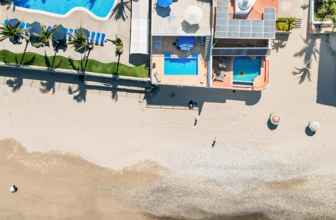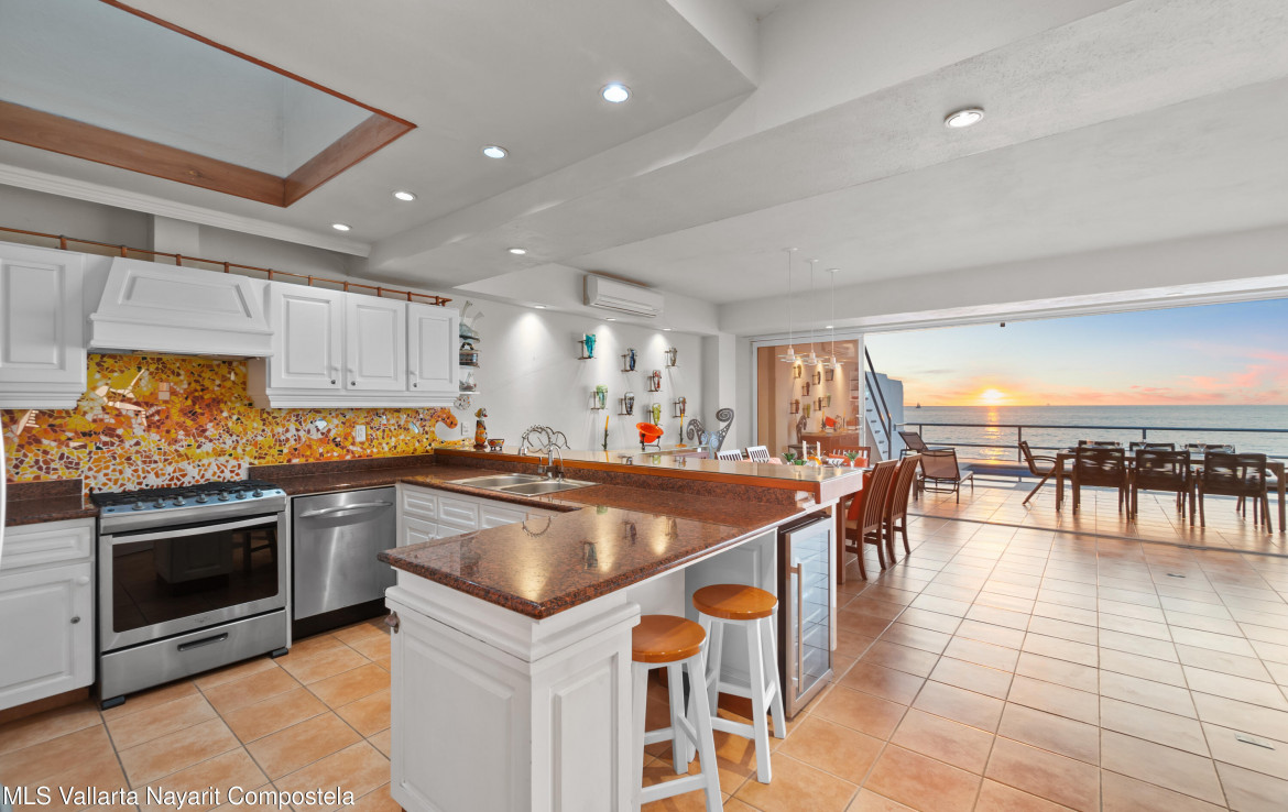 Discover a rare gem in Playa Camarones — one of just three standalone homes in this exclusive beachfront enclave. Designed for privacy and comfort, this elegant multi-level residence blends modern living with resort-style relaxation. Enter through a secure gated walkway to your spacious two-car garage, then step inside to bright, inviting spaces. The ground level is perfect for guests or rental income, offering a 2-bed, 2-bath suite with TV room, patio and direct pool access, plus a bonus workspace with half bath. An atrium staircase leads to a guest studio with full bath, while the luxurious master suite features a walk-in closet and spa-inspired bathroom. Enjoy ocean views, peaceful surroundings, and a lifestyle steps from the beach, boardwalk, and vibrant PV culture.