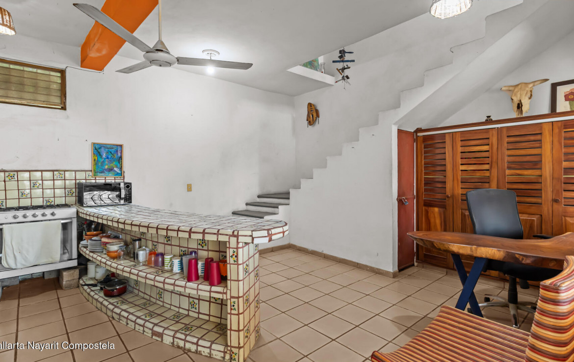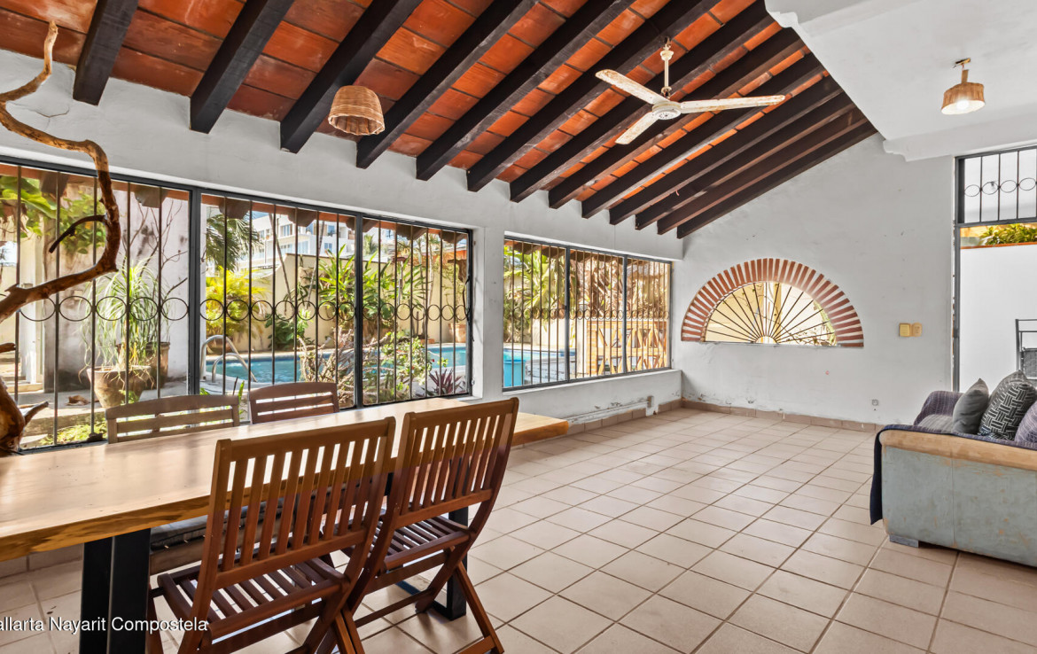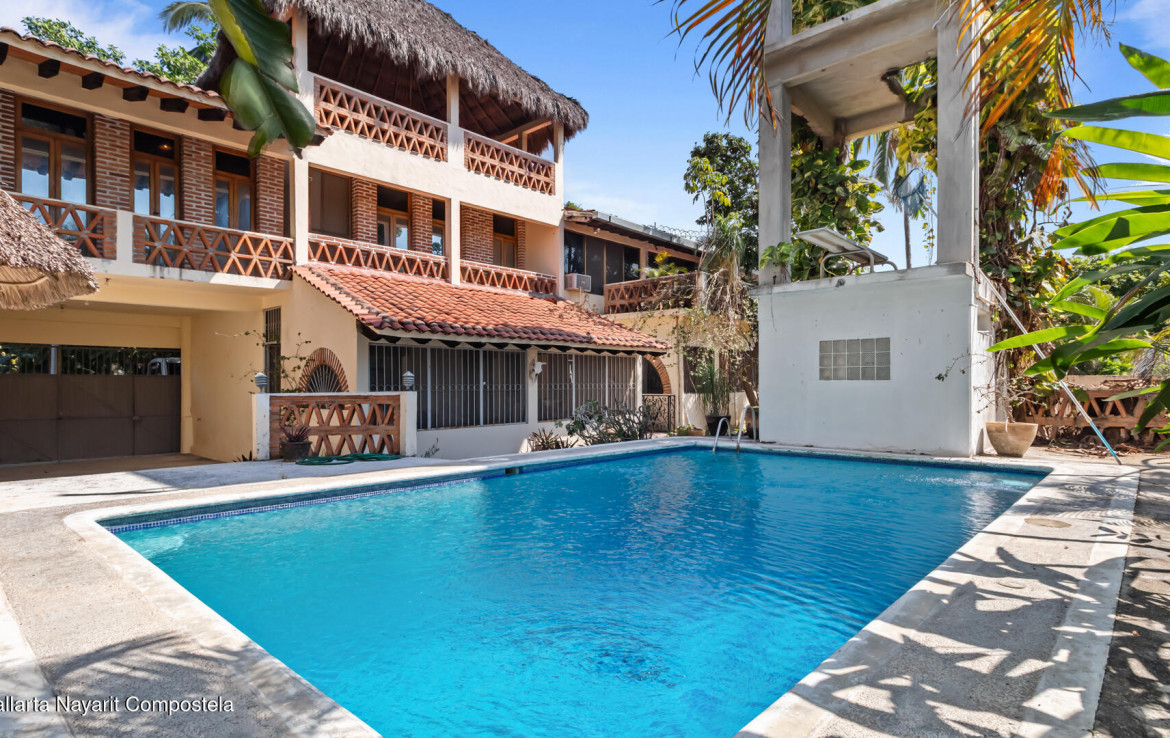 This spacious duplex-style home in the heart of the »Golden Zone», features a rooftop palapa entertainment area and swimming pool surrounded by tropical gardens. The main home includes two bedrooms and two bathrooms, full kitchen and living area and covered terrace. A fully separate one-bedroom unit with its own kitchen and bathroom make the home extremely versatile for friends, family or additional rental income.Savvy investors or buyers with a vision will appreciate the very spacious lot with room for expansion or remodeling. With numerous restaurants and a gorgeous sandy beach just a few blocks away, Casa Cascada is a perfect second home or primary residence for growing families and those wanting a rental investment or development option.