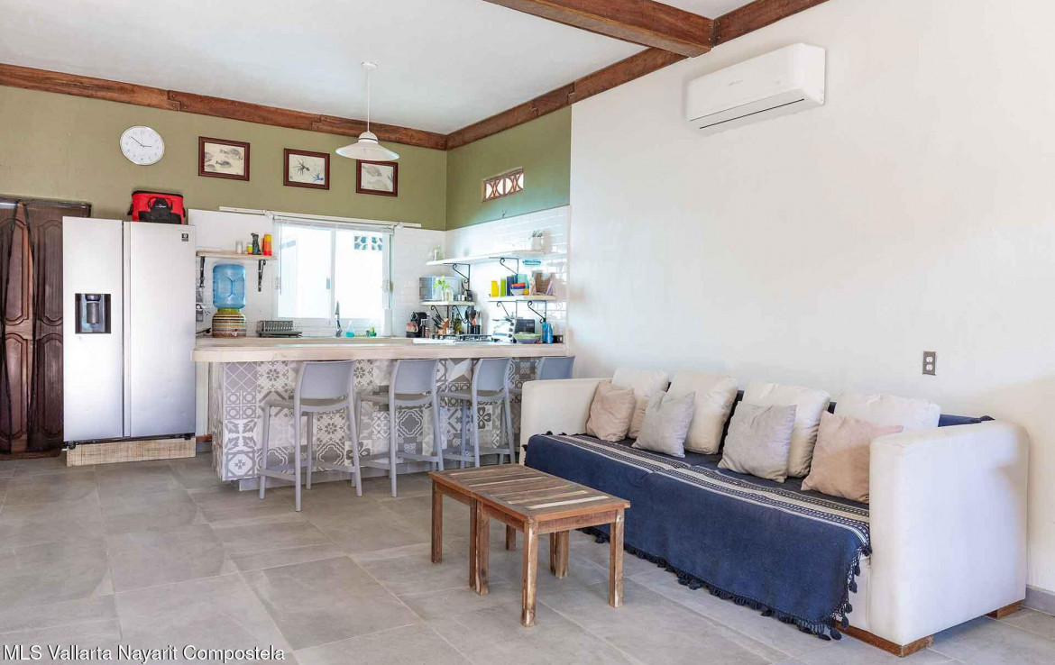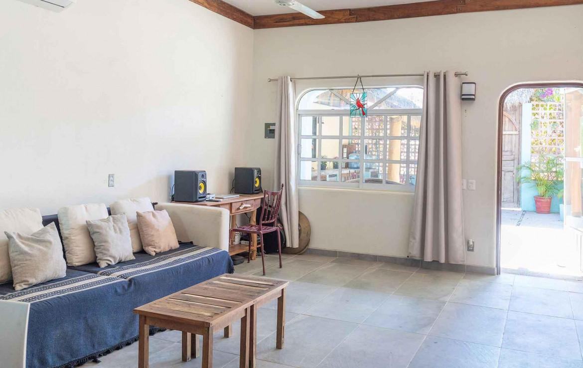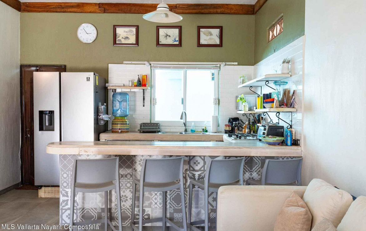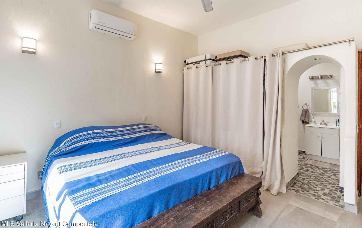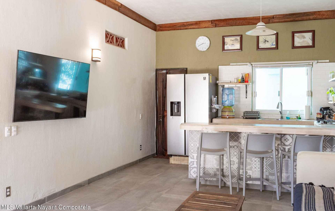Conveniently nestled in a tranquil San Pancho residential neighborhood, Casa Cascadita, a two bedroom/two and a half bathroom single family home, offers all of the modern comforts plus the beautiful touches of Mexican coastal living. The favorable location, being just blocks from the town center of San Francisco, known to locals as San Pancho, is where one will find a wide variety of restaurants, mini-grocery stores and gift shops, and is also a five-minute walk to the magnificent Riviera Nayarit beach.Casa Cascadita is a single story, two ensuite bedroom home. Upon entering the grounds, one is immediately encompassed in the spacious patio terrace with an outdoor dining table, wet bar with mini fridge, living area and dipping pool with a waterfall feature.