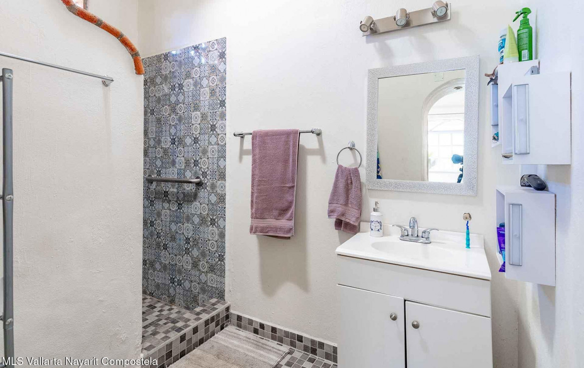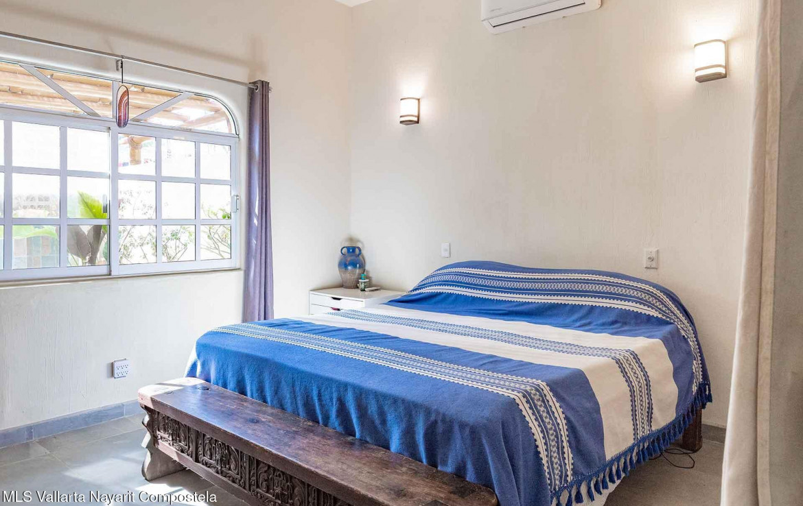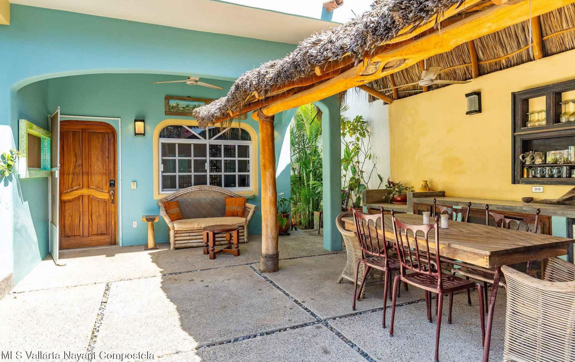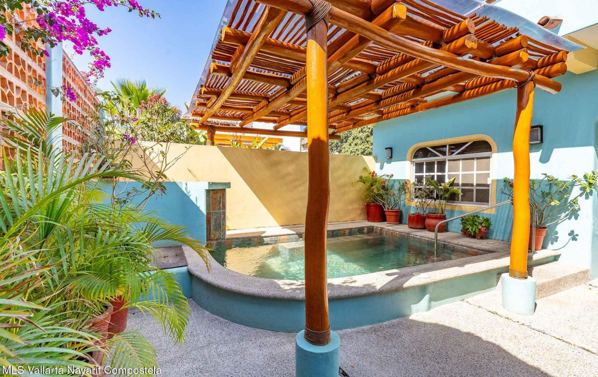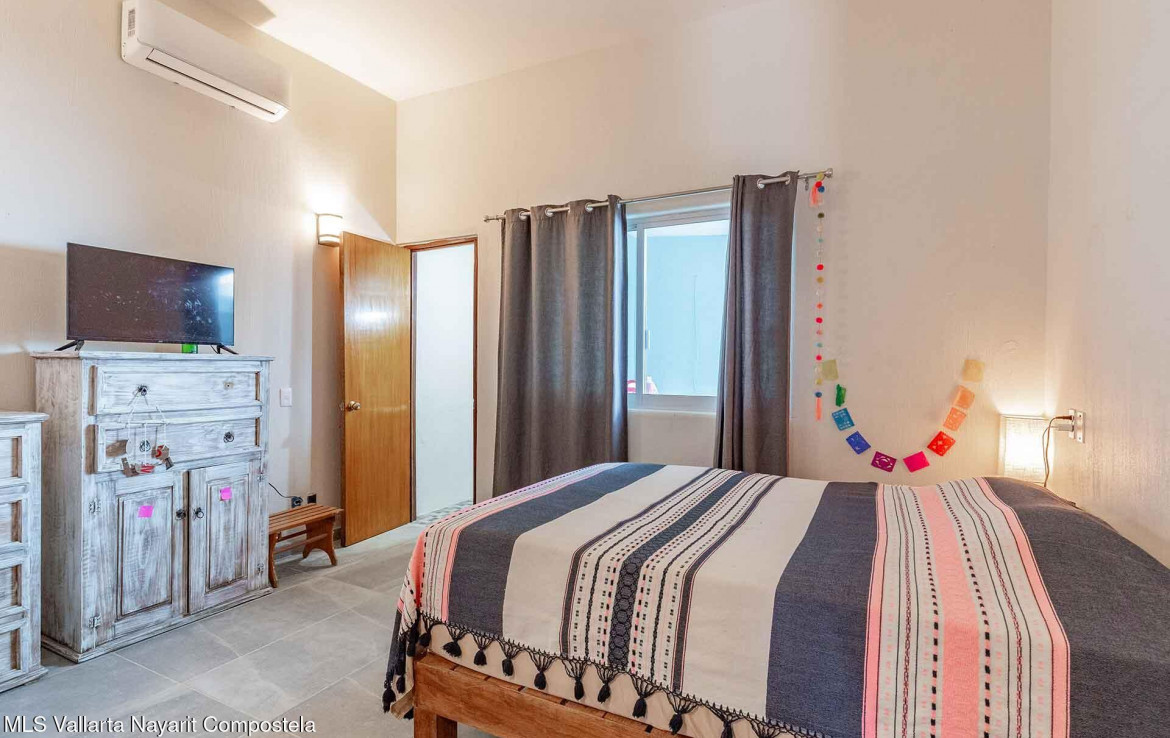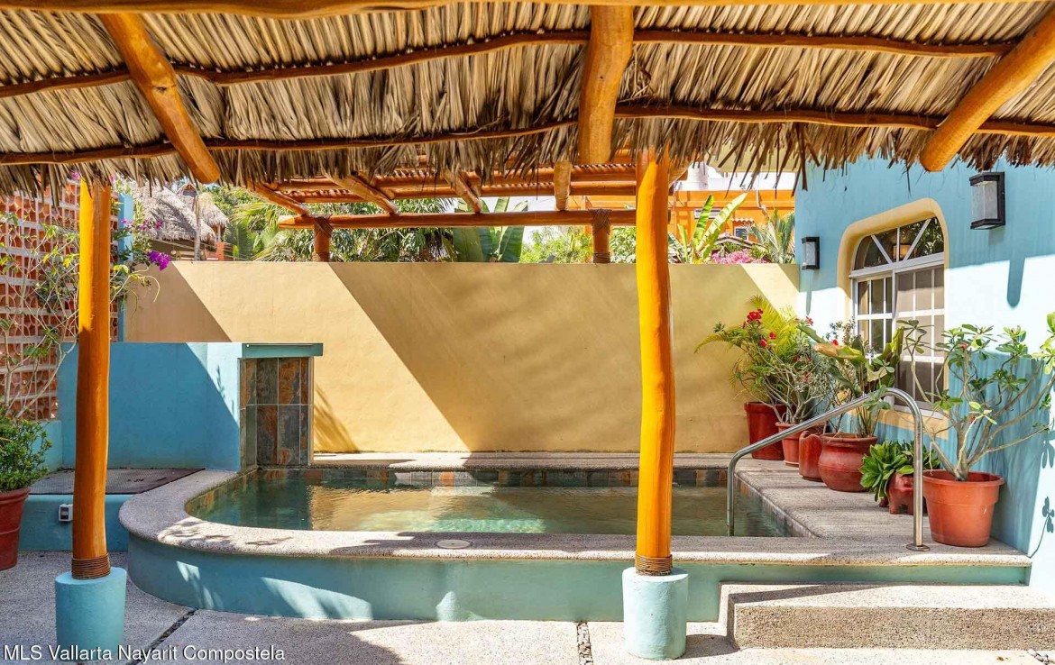 Conveniently nestled in a tranquil San Pancho residential neighborhood, Casa Cascadita, a two bedroom/two and a half bathroom single family home, offers all of the modern comforts plus the beautiful touches of Mexican coastal living. The favorable location, being just blocks from the town center of San Francisco, known to locals as San Pancho, is where one will find a wide variety of restaurants, mini-grocery stores and gift shops, and is also a five-minute walk to the magnificent Riviera Nayarit beach.Casa Cascadita is a single story, two ensuite bedroom home. Upon entering the grounds, one is immediately encompassed in the spacious patio terrace with an outdoor dining table, wet bar with mini fridge, living area and dipping pool with a waterfall feature.