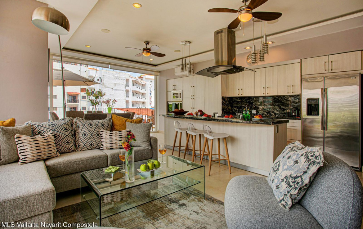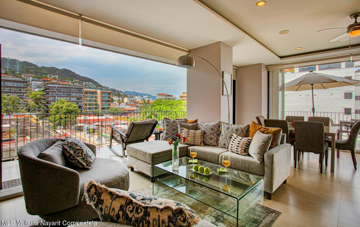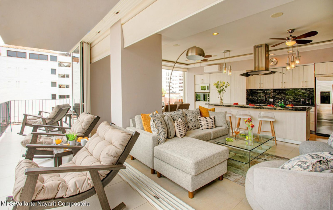 Discover the ultimate blend of city living and coastal charm with this stunning 2 bedroom 2.5 bathroom condo in the heart of the Romantic Zone, just one block from Los Muertos Beach. This fully furnished corner unit boasts an open floor plan, abundant natural light, and one of the best locations in the building. Relax on the spacious deck with city and ocean views or enjoy access to amenities, including a rooftop infinity pool with a bar, outdoor showers, BBQ area, and a gym with AC. Welcome to PV! Small Pets Allowed!!!