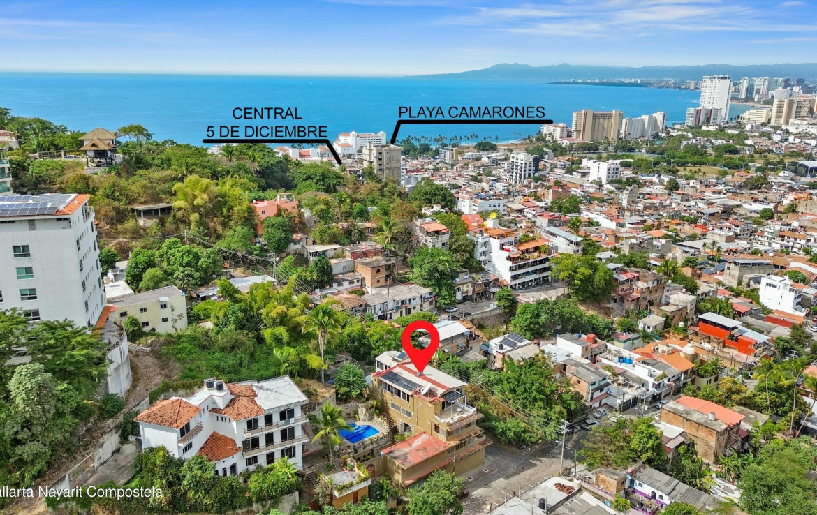 Casa Guayabo, ubicada en el barrio 5 de Diciembre de Puerto Vallarta, es una propiedad versatil, ideal como hogar familiar, hotel boutique o B&B. A solo 10 minutos del centro de Vallarta, ofrece impresionantes vistas de la ciudad y las montanas. Esta espaciosa propiedad cuenta con habitaciones amplias, espacios abiertos y potencial de expansion. Dispone de 5 recamaras, 5 banos completos y 2 medios banos. Situada en una zona segura y en desarrollo, esta cerca de todos los servicios, lo que la hace perfecta para vivir o como una excelente inversion.