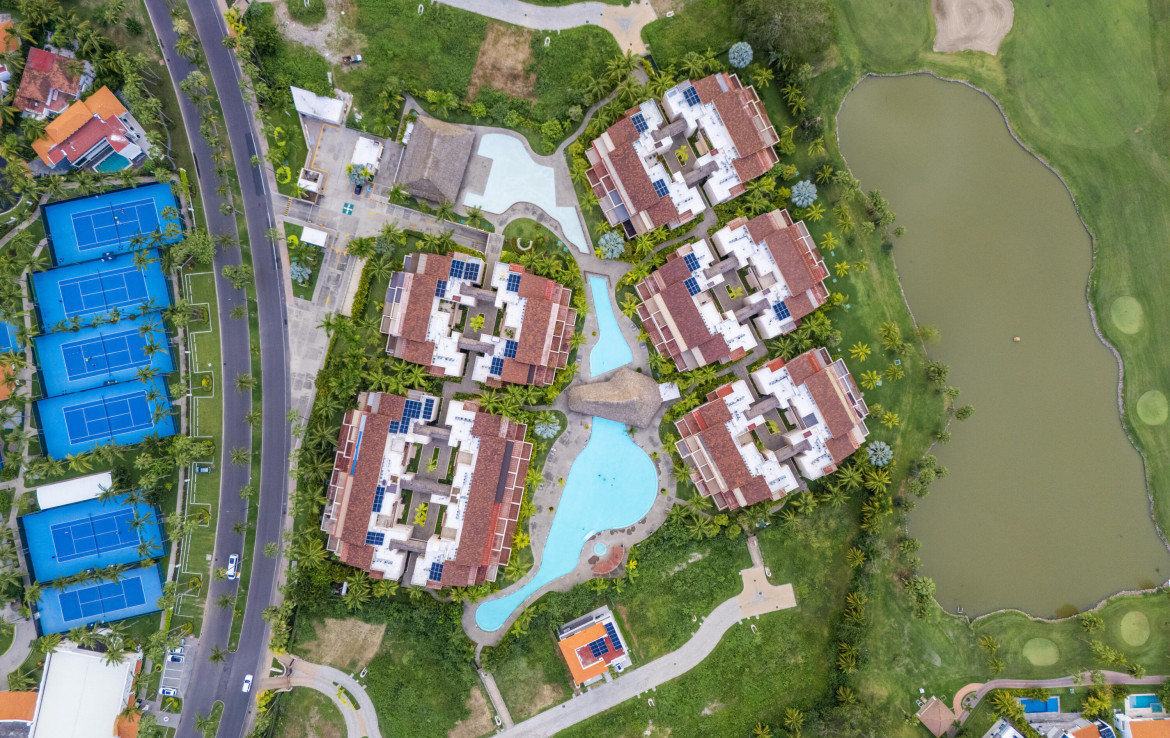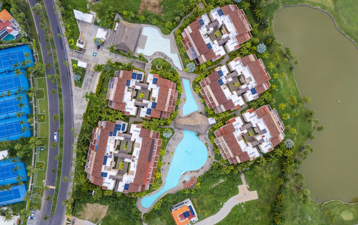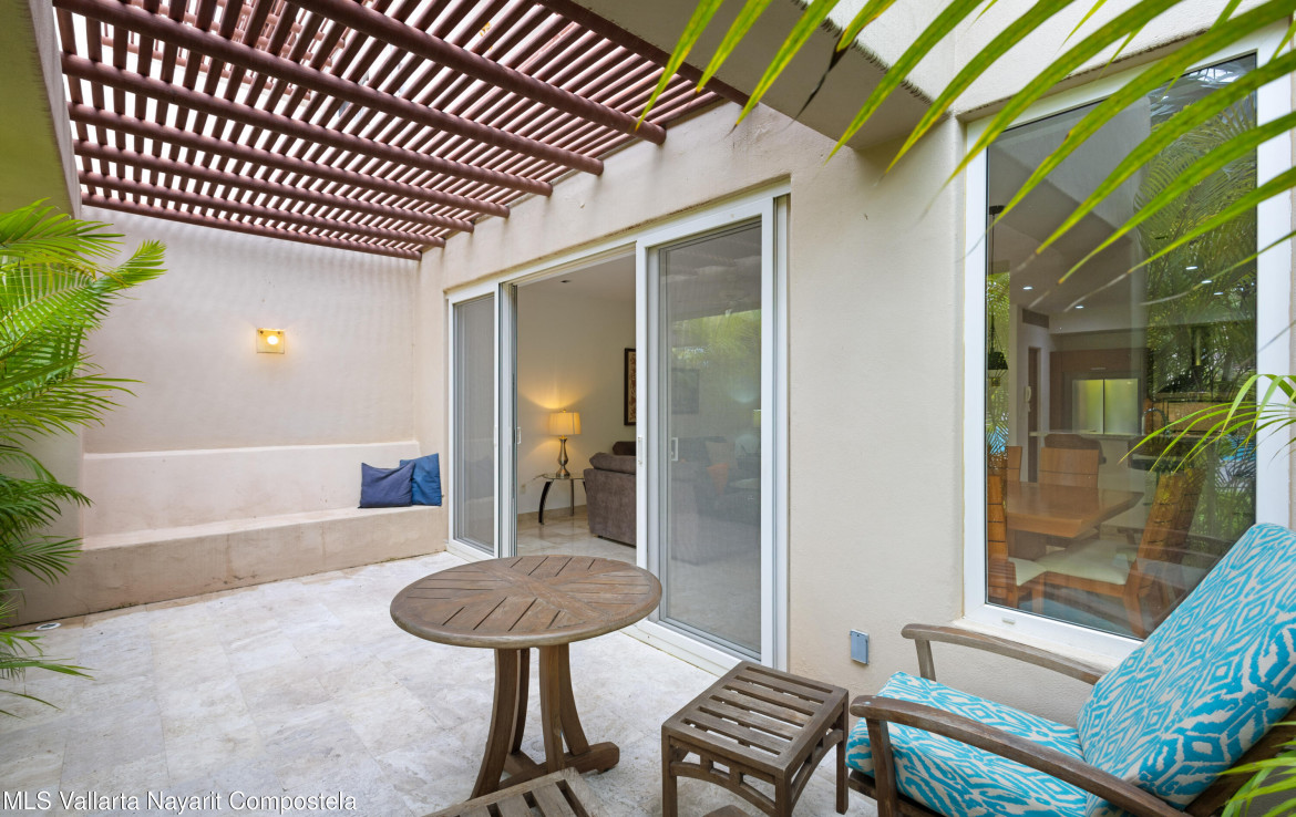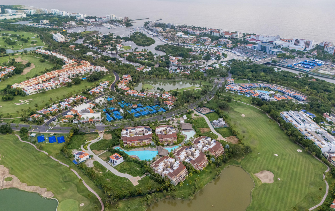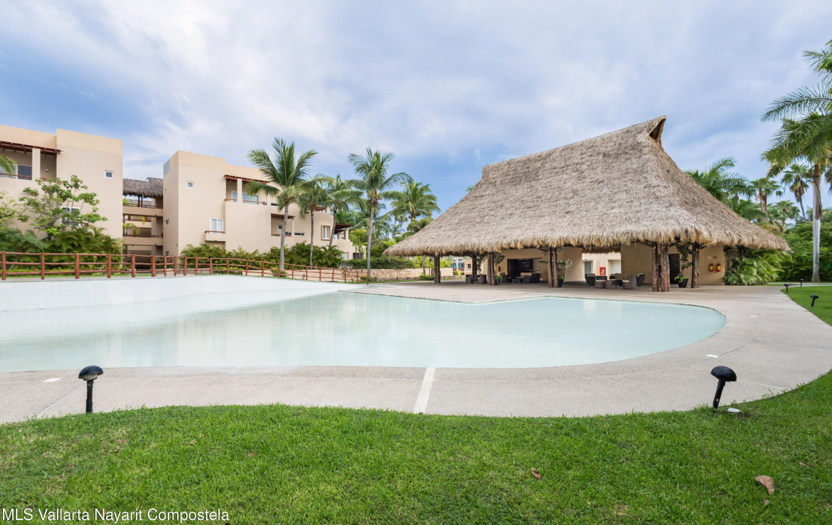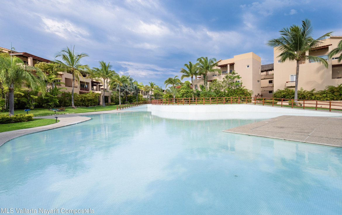 ENGLISH BELOW — Vive el lujo en Isla Palmares, dentro de la exclusiva comunidad El Tigre. Este elegante condominio en planta baja ofrece acceso directo a la alberca desde dos amplias terrazas, pisos de marmol y un diseno abierto y luminoso. Disfruta de un ambiente tranquilo, rodeado de jardines y areas verdes. Incluye estacionamiento y bodega escriturados, ademas de acceso al club deportivo, campo de golf y seguridad 24 horas de El Tigre. Lujo, confort y serenidad en un solo lugar.
