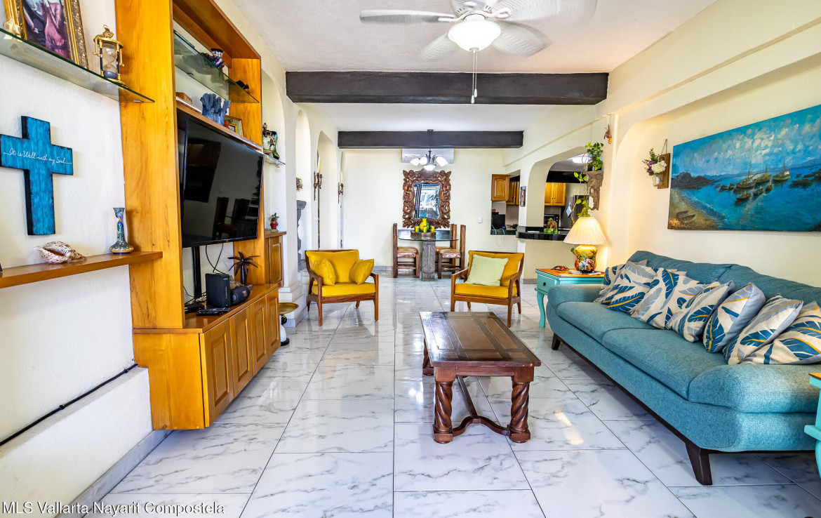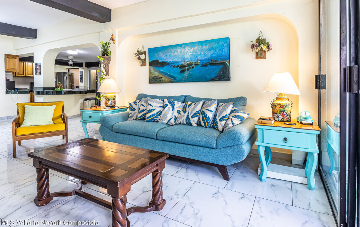 Discover this charming and spacious condominium located in Amapas, Puerto Vallarta, one of the area’s most desirable neighborhoods for its privacy, tranquility, and proximity to the beach. With 151.16 m of living space, this home offers a generous single-level layout that feels open, comfortable, and inviting.The condo features 2 bedrooms and 2 bathrooms, along with an open kitchen and a bright living area that flows directly onto one of its standout highlights: a covered terrace with an ocean view–perfect for relaxing, hosting guests, or enjoying Puerto Vallarta’s famous sunsets.Situated on the 6th floor of a 7-story building, the property enjoys excellent natural light, great airflow, and a warm, welcoming atmosphere ideal for full-time living or vacation rentals.