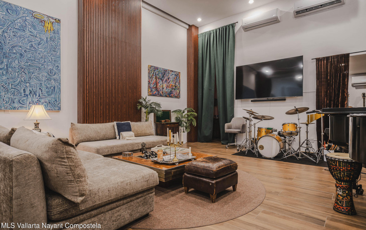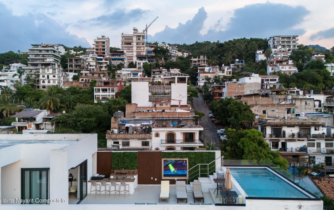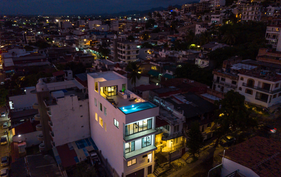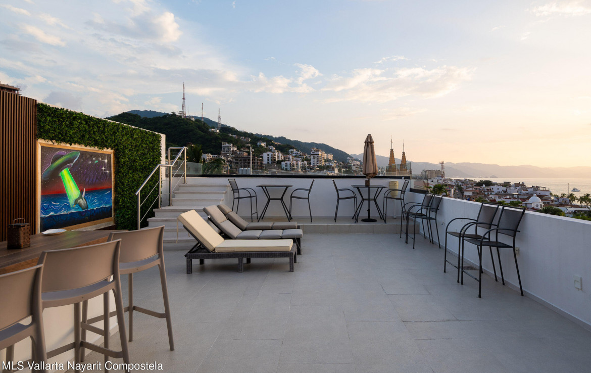 Discover a rare five-level architectural gem in the heart of Puerto Vallarta, just one block from the beach, boardwalk, and Parque Hidalgo. This versatile residence features a rooftop pool with panoramic views, elevator access, and parking for five vehicles. Designed with flexibility in mind, it offers independent units — a one-bedroom master suite with steam bath, a two-bedroom apartment, and a top-floor studio — perfect for a boutique hotel or Airbnb rentals. The grand foyer can easily transform into an additional apartment or a stylish speakeasy. A true jewel blending luxury, functionality, and investment potential.