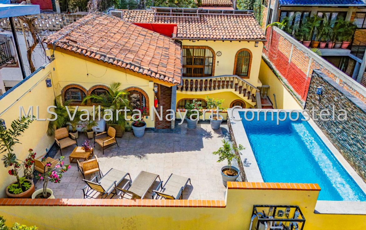 ENGLISH MORECasa estilo mexicano en la Zona Romantica de Puerto VallartaUbicada en el corazon de la tradicional y pintoresca Zona Romantica de Puerto Vallarta, esta propiedad captura la esencia del estilo mexicano con detalles unicos como mosaicos coloridos, arcos de ladrillo rojo y elegante herreria colonial. Ideal tanto para uso residencial como para inversion en renta vacacional, la casa cuenta con 7 habitaciones tipo suite, cada una equipada con aire acondicionado, bano privado con regadera, cocineta completa, utensilios, Smart TV, e internet de alta velocidad.Entre sus amenidades, la casa ofrece una alberca privada y una amplia terraza con camastros, perfectas para disfrutar del clima tropical.