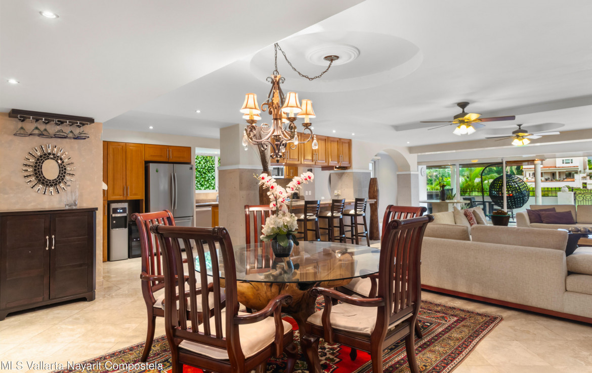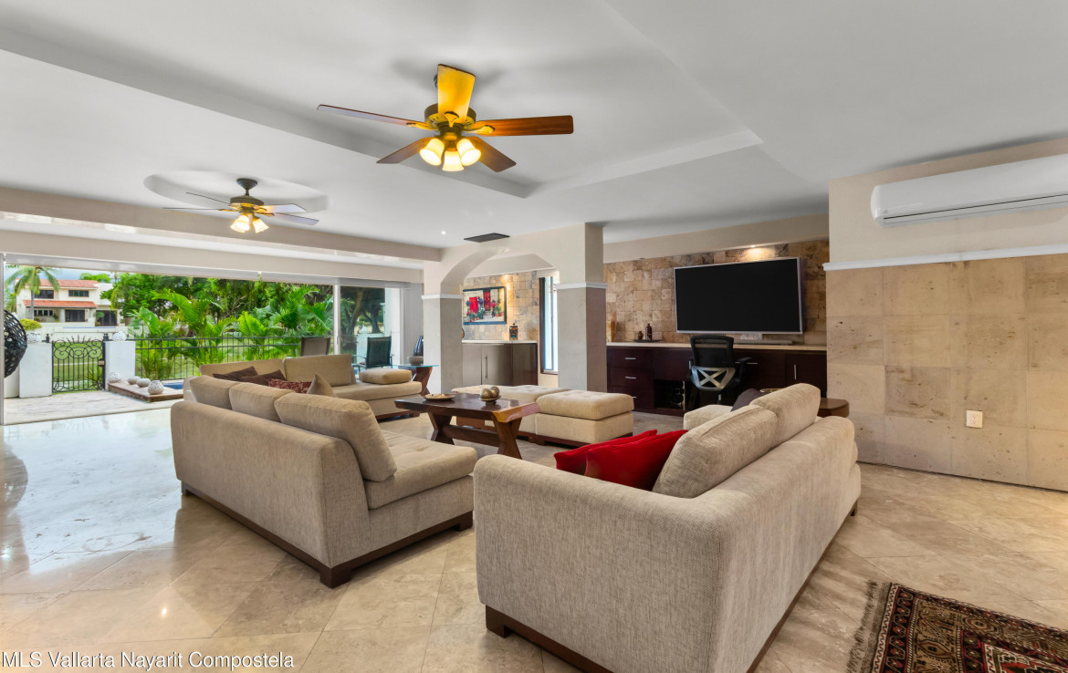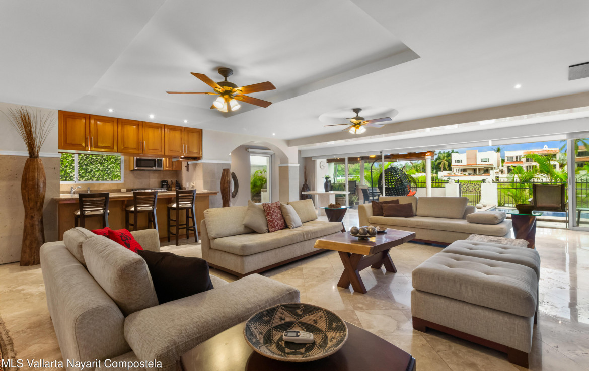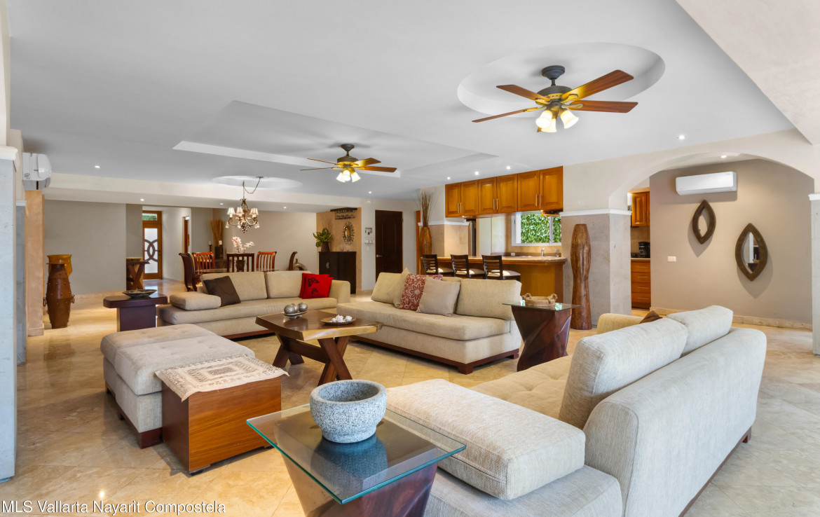 Lujo y elegancia en Marina VallartaResidencia espectacular con una distribucion excepcional: dos master suites en planta baja y tres master suites en planta alta, todas con amplios espacios llenos de luz y acabados premium que elevan cada rincon.Las paredes de cantera y los pisos de marmol realzan un ambiente sofisticado, mientras que el mobiliario de alta calidad permite disfrutarla desde el primer dia.En el exterior, una alberca y palapa de concreto con tejado ofrecen un entorno perfecto para relajarse junto al green del campo de golf. Una propiedad disenada para vivir el confort y la exclusividad en una de las zonas mas prestigiadas de Puerto Vallarta.