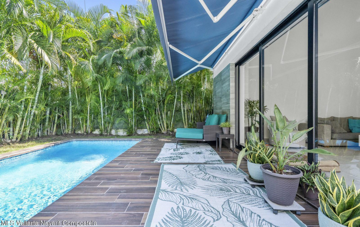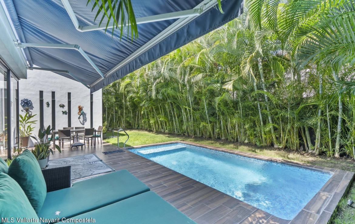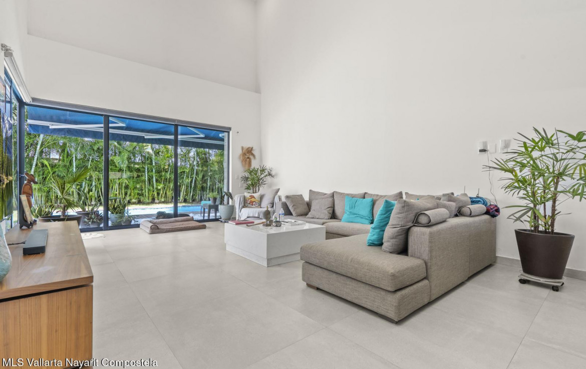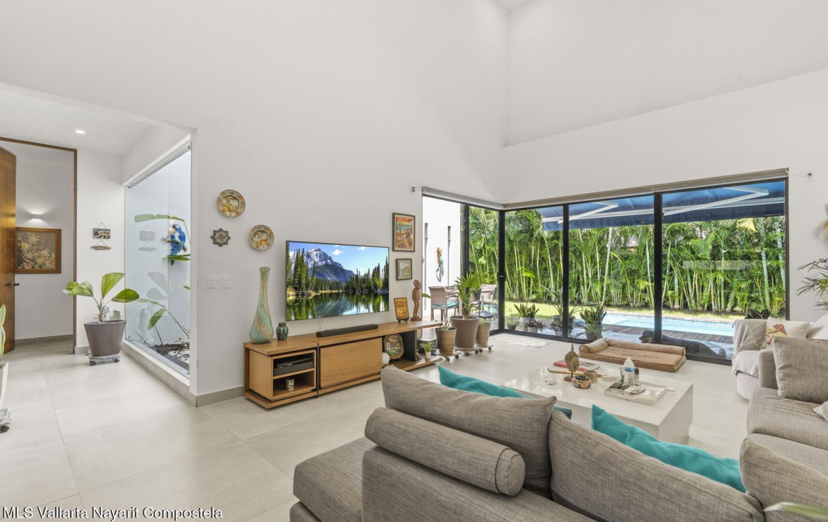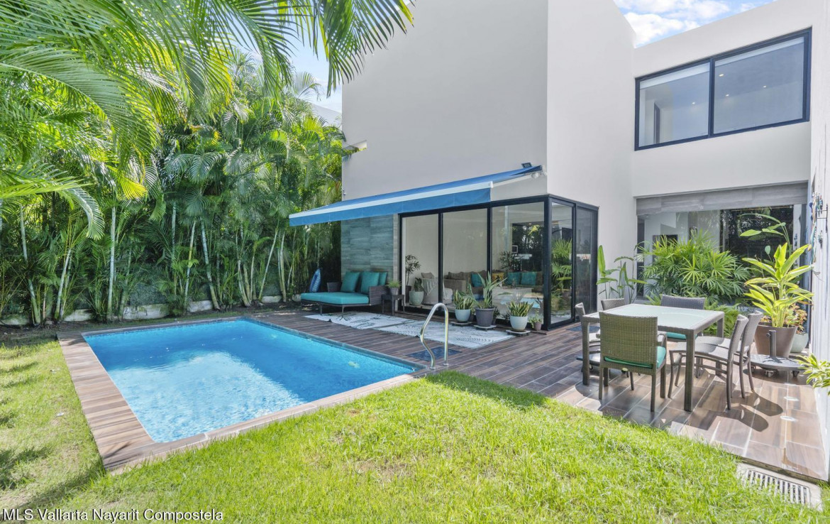 Disfrute de lujo, confort y seguridad en Los Tigres Residencial, Nuevo Vallarta. Casa moderna con 4 recamaras, 4.5 banos, jardin, alberca climatizada, paneles solares y A/C. Casa club, spa, gimnasio, canchas, areas verdes y seguridad 24/7. Cerca de playa, golf, escuelas y centros comerciales.—Enjoy luxury, comfort, and security at Los Tigres Residencial, Nuevo Vallarta. Modern home with 4 bedrooms, 4.5 baths, garden, heated pool, solar panels, and A/C. Clubhouse, spa, gym, sports courts, green areas, and 24/7 security. Close to beach, golf, schools, and shopping centers.