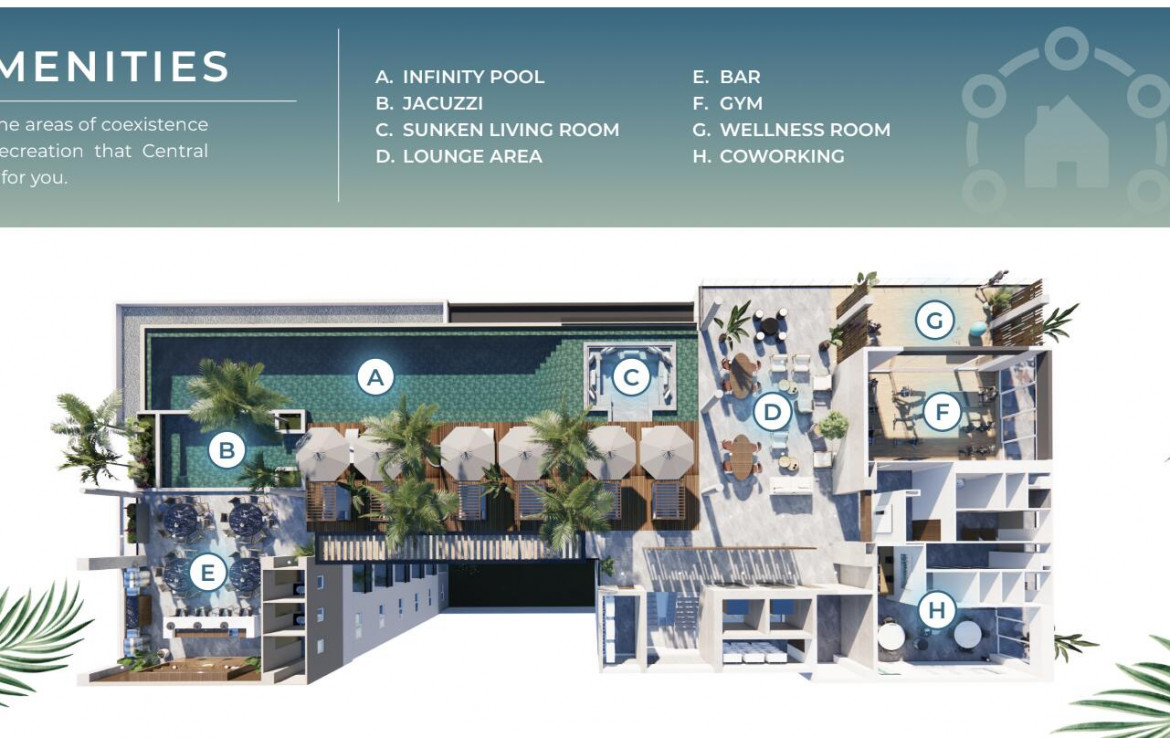 Introducing CENTRAL residences, the newest development in the Versalles neighborhood of Puerto Vallarta. Central will have 47 condos, of which 11 are type A, 24 type B and 12 type C. They range from 1 Bed + Den (type A), 2 Bed 2 Bath (Type B), 2 bed 2 bath + Lock off 1 bed 1 bath (Type C). Thirteen of those units will have mesmerizing ocean views. With an array of incredible rooftop amenities, Central will redefine luxury living – with an infinity pool that seemingly merges with the ocean and city, a fitness center, wellness room, co-working room, Bar and Jacuzzi all facing the ocean and mountain views. Underground parking and Bodega are a purchasable option to add onto your great Living Investment! Invest in your dream, invest in Versalles, Invest inCentral!