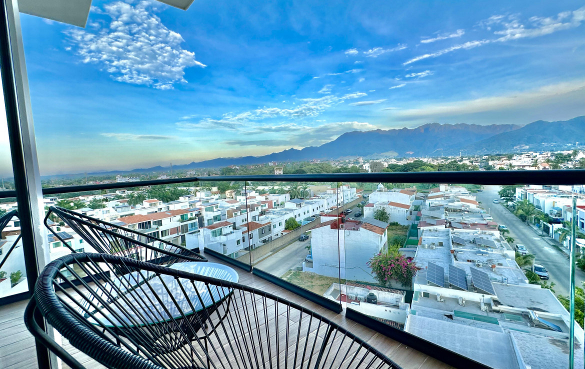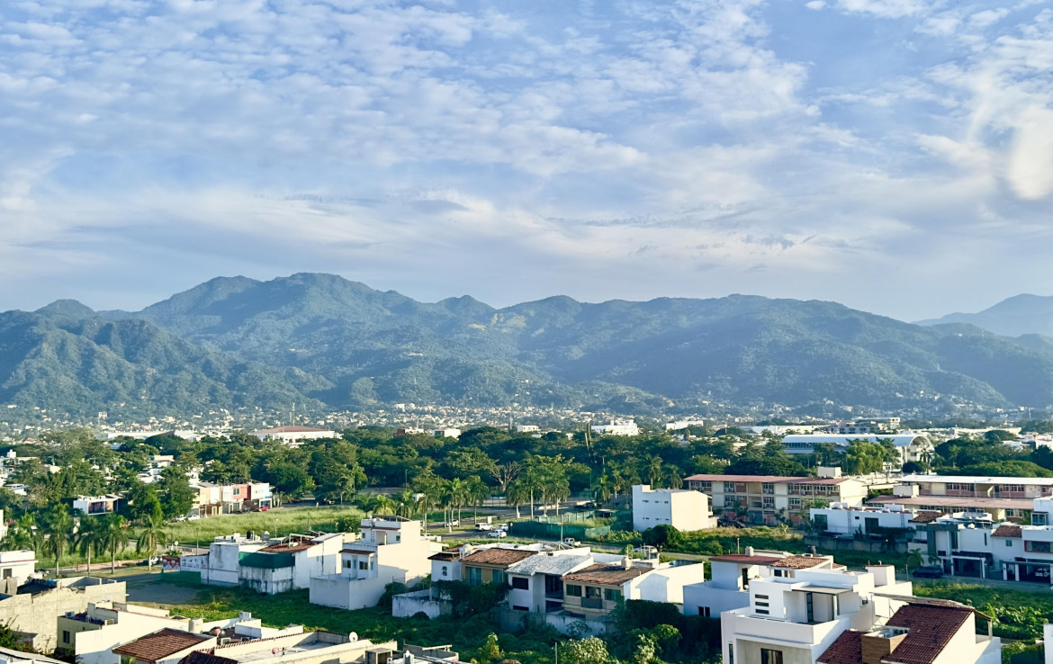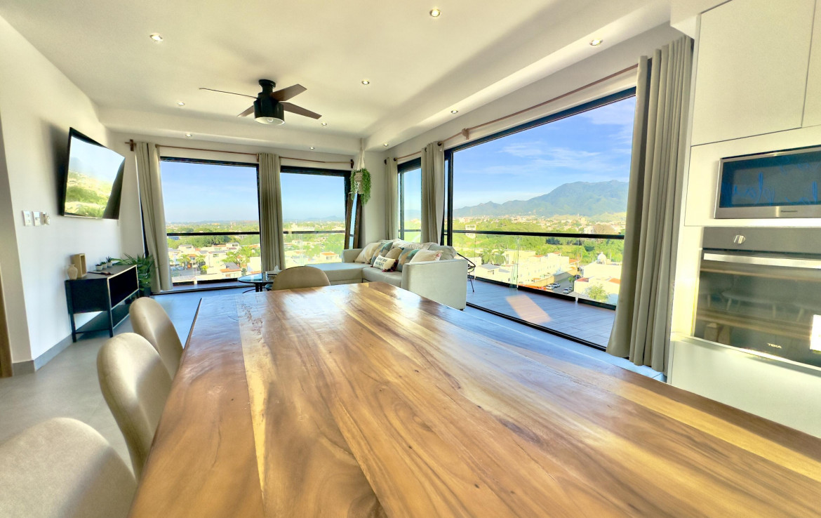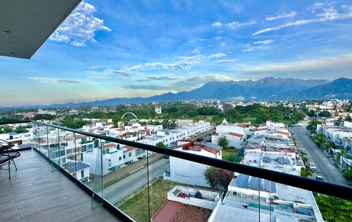 English Below………Moderno condominio de 3 recamaras y 3 banos en el corazon de Fluvial Vallarta. Disfruta vistas panoramicas de 180 a las montanas desde la terraza envolvente y una vista parcial al mar desde la cocina. Edificio de baja densidad con estacionamiento por unidad, alberca climatizada, terraza con asador y seguridad 24 h. A minutos de la playa, centros medicos, Plaza Caracol, Costco, La Comer y ciclovias. Ideal para vivir tiempo completo o invertir en una de las zonas mas rentables de Vallarta.