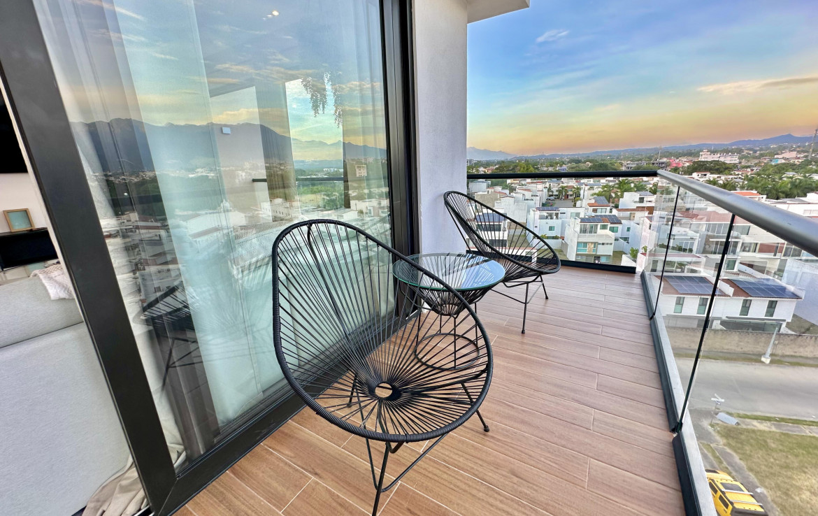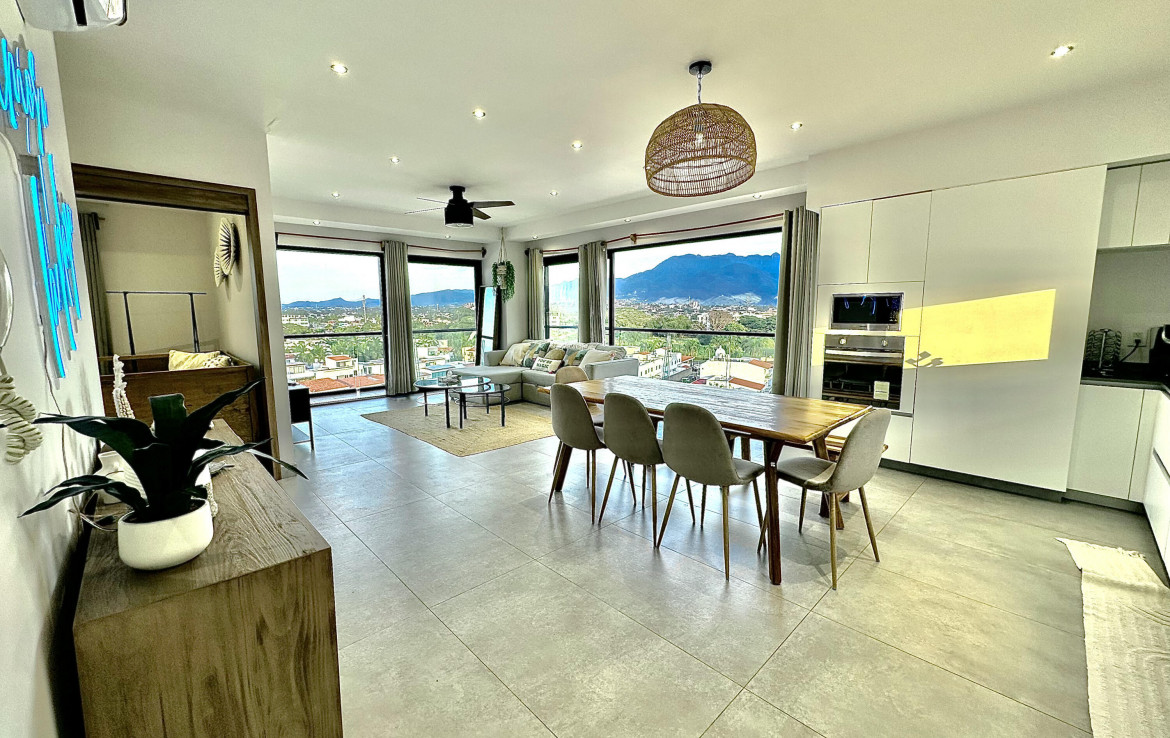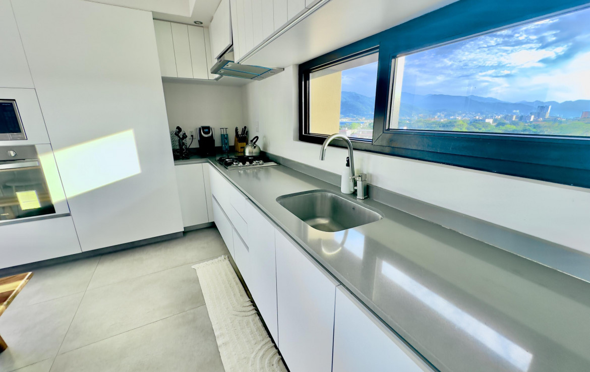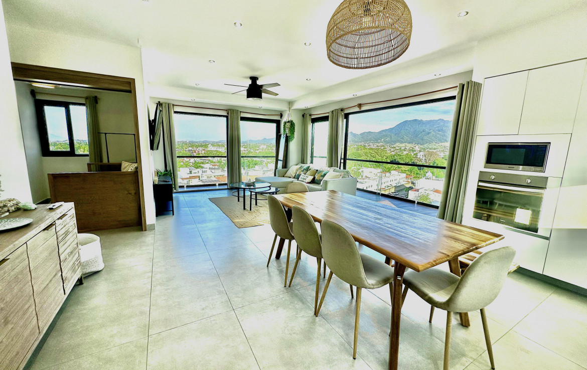 English Below………Moderno condominio de 3 recamaras y 3 banos en el corazon de Fluvial Vallarta. Disfruta vistas panoramicas de 180 a las montanas desde la terraza envolvente y una vista parcial al mar desde la cocina. Edificio de baja densidad con estacionamiento por unidad, alberca climatizada, terraza con asador y seguridad 24 h. A minutos de la playa, centros medicos, Plaza Caracol, Costco, La Comer y ciclovias. Ideal para vivir tiempo completo o invertir en una de las zonas mas rentables de Vallarta.