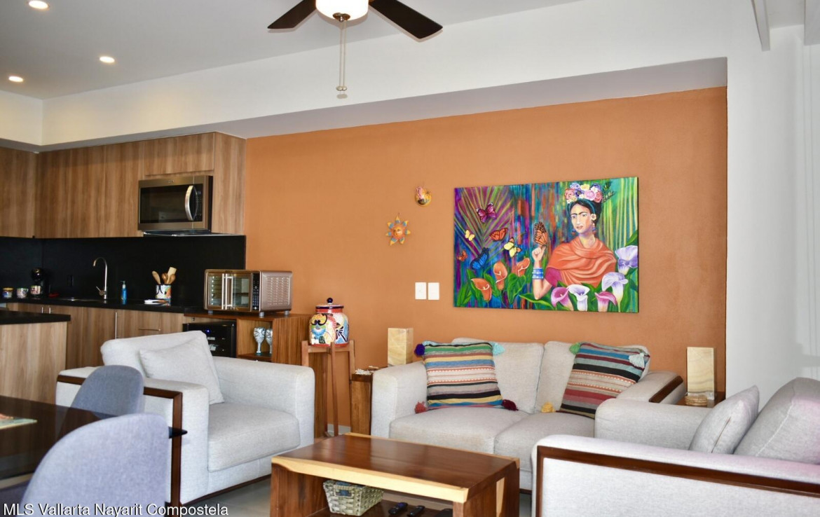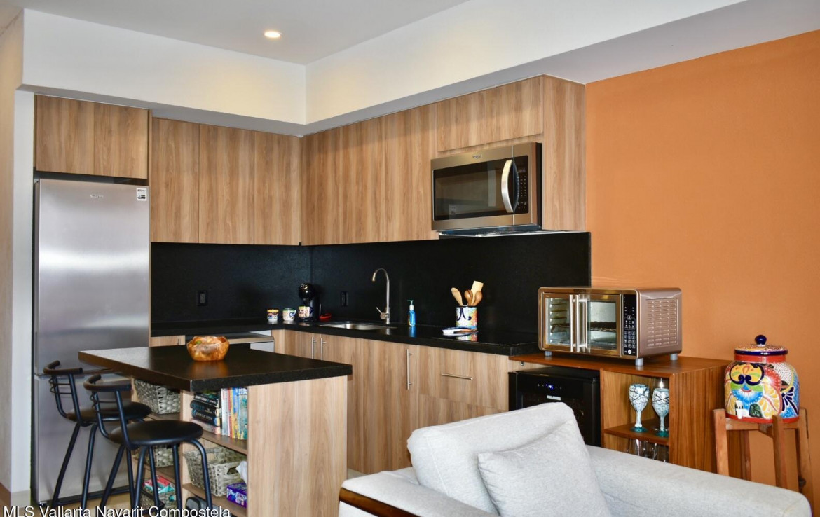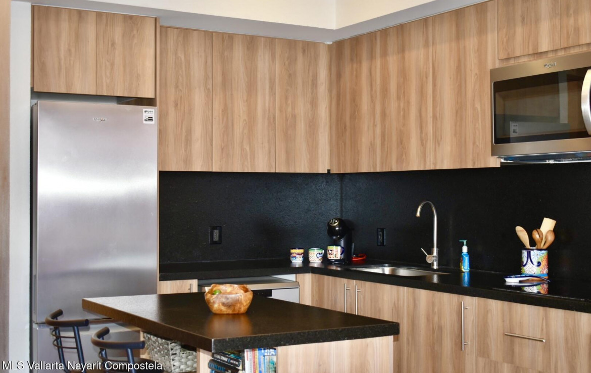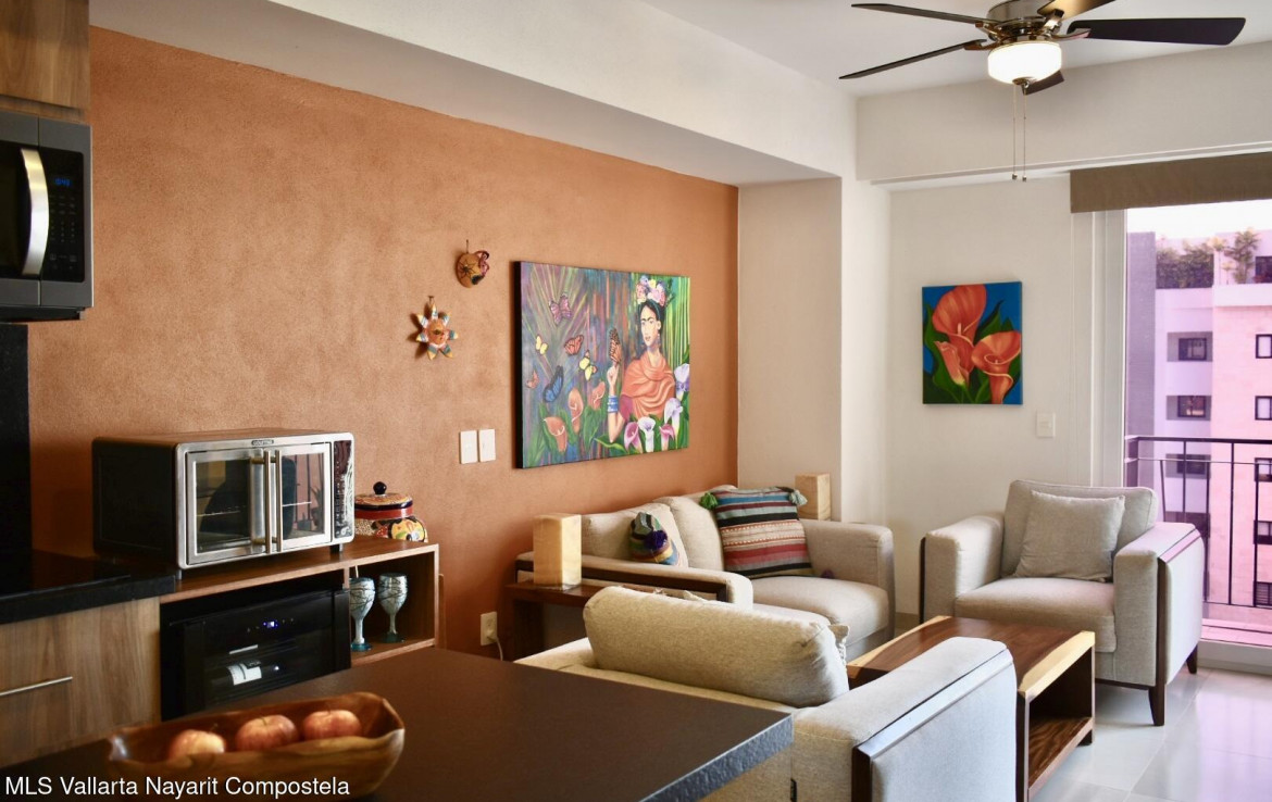 Encantador departamento completamente equipado, ubicado en el corazon de la zona dorada de Bucerias, rodeado de reconocidos restaurantes y cafeterias, y a tan solo unos pasos de la playa. Una excelente opcion tanto para disfrutar momentos de descanso como para inversion, gracias a su alto potencial de ingresos por rentas vacacionales / Charming fully equipped condominium located in the heart of Bucerias’ Zona Dorada, surrounded by renowned restaurants and cafes, and just steps from the beach. An excellent option both for enjoying relaxing moments and as an investment, thanks to it’s strong potential for vacational rental income !
