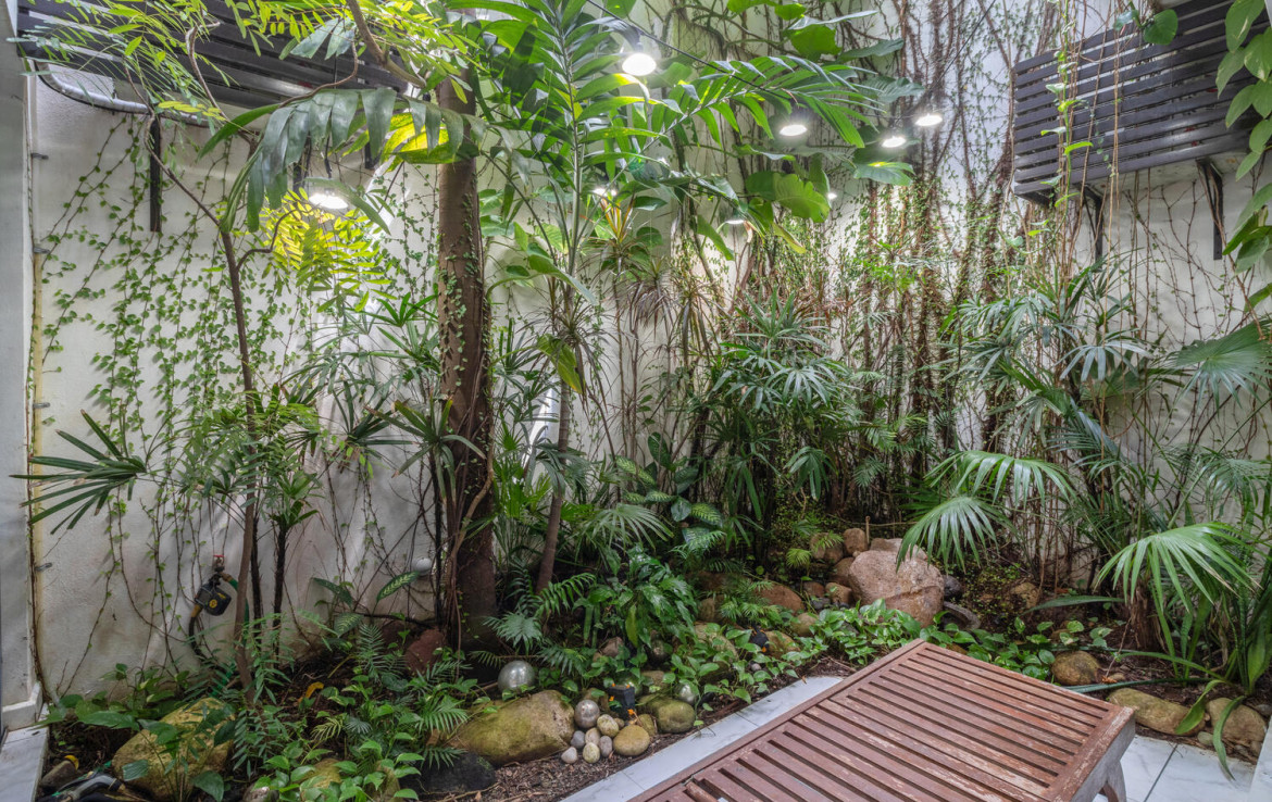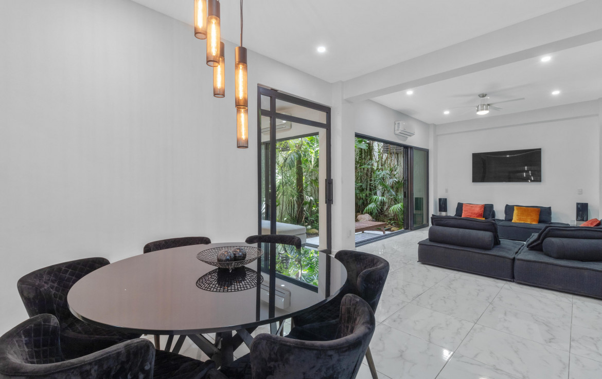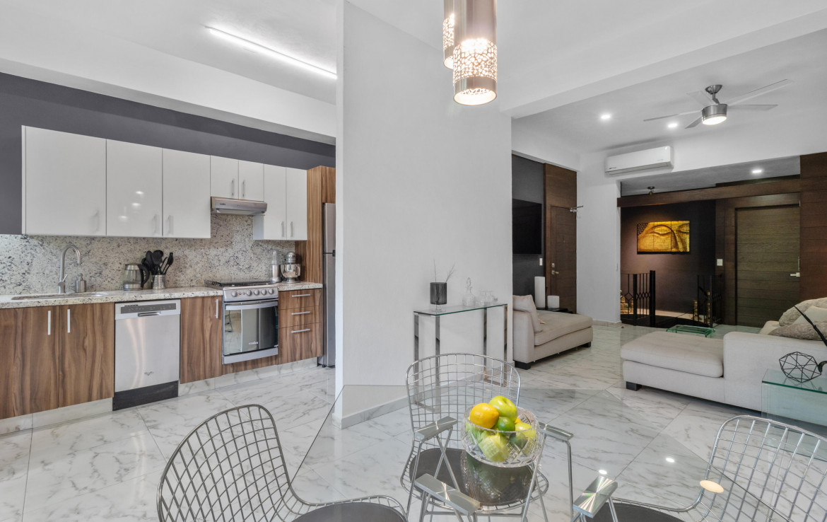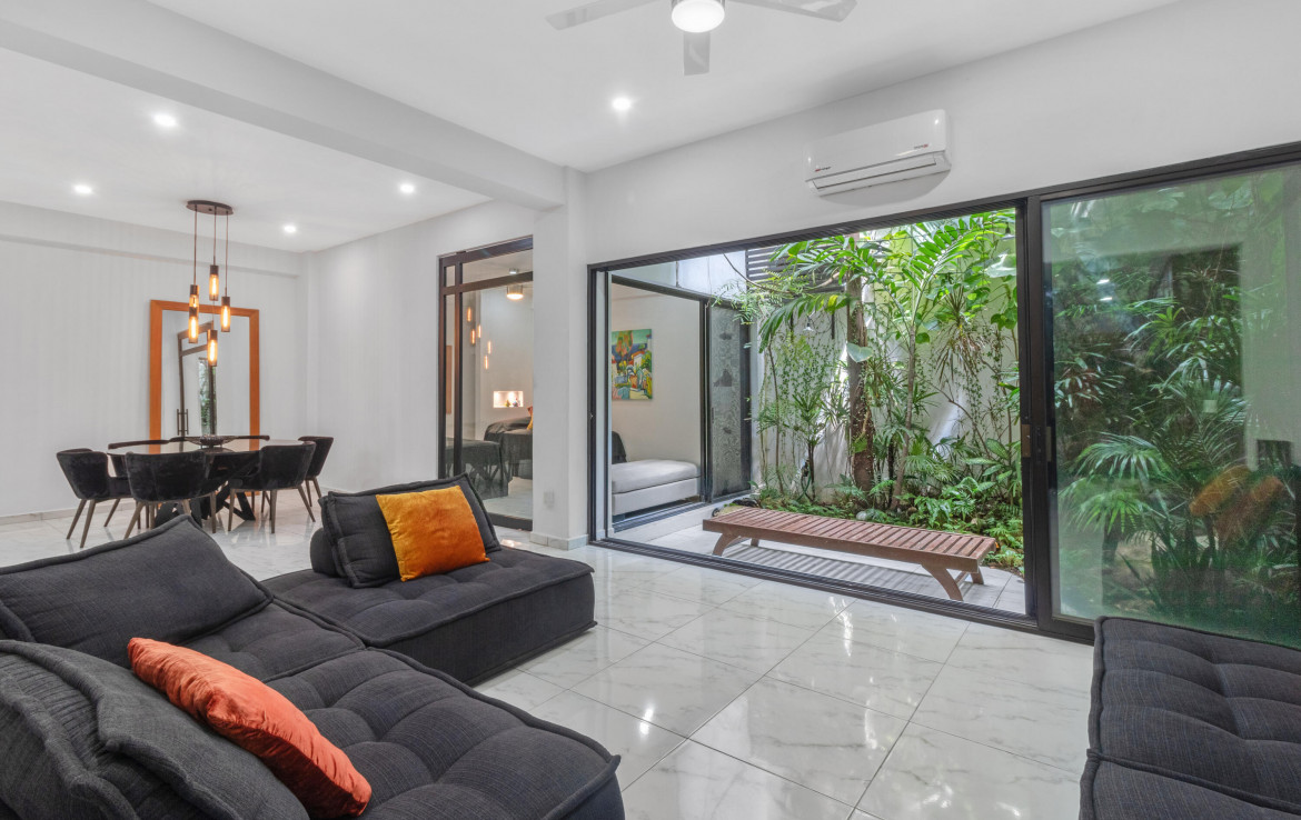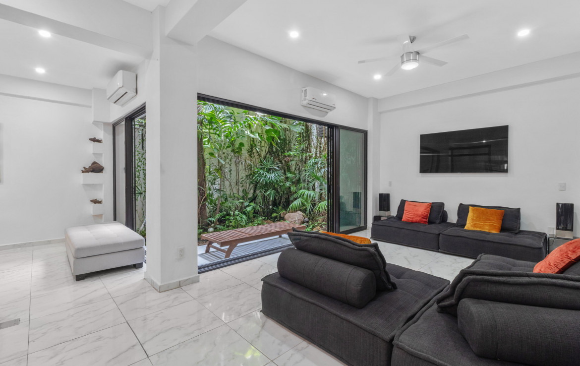 Welcome to Condo Aguacate, a stunning duplex with two seamlessly connected one-bedroom units. Independent entrances on both floors offer convenience and versatility. Each spacious level is fully self-contained with bedroom, bathroom, living room, dining area and kitchen. The ground floor is currently used as an entertainment space with a guest room and laundry facilities, while the second floor serves as the owner’s suite, featuring a landscaped front balcony and a bedroom to the rear with a Juliet balcony overlooking the lush, enclosed patio below. A lock-off door allows for complete separation between levels for both privacy and potential rental income. Located on a quiet, flat street, this property offers elegance and modern design at a great value for the neighborhood.