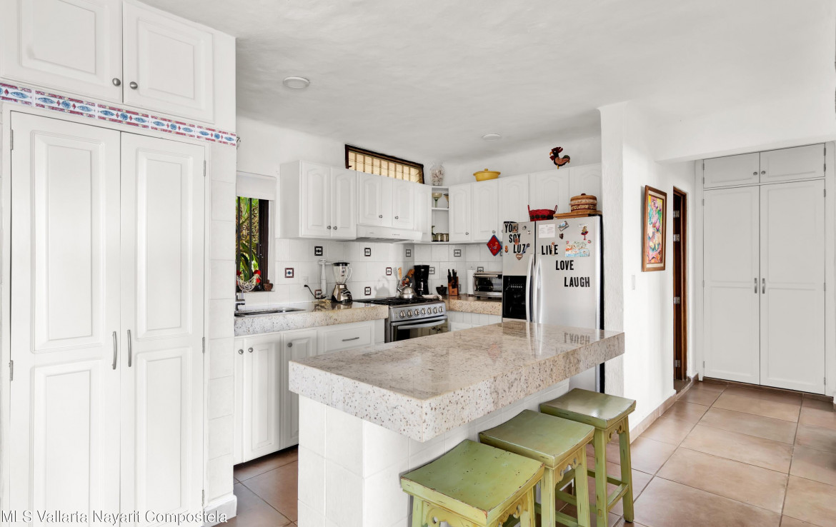 This beautiful two bed two bath is located just steps from Conchas Chinas beach, ground floor unit. This cozy unit features a beautiful kitchen with primavera cabinets and granite counters, two bedrooms, two bathrooms, a spacious living room area, and a terrace with a beautiful view of the ocean. Riviera Amapas is a beachfront, traditional style building with just 24 units. It includes a pool and easy access to the beach. The HOA covers water, gas, building insurance, administration, common area maintenance and maid service 2 times a week.