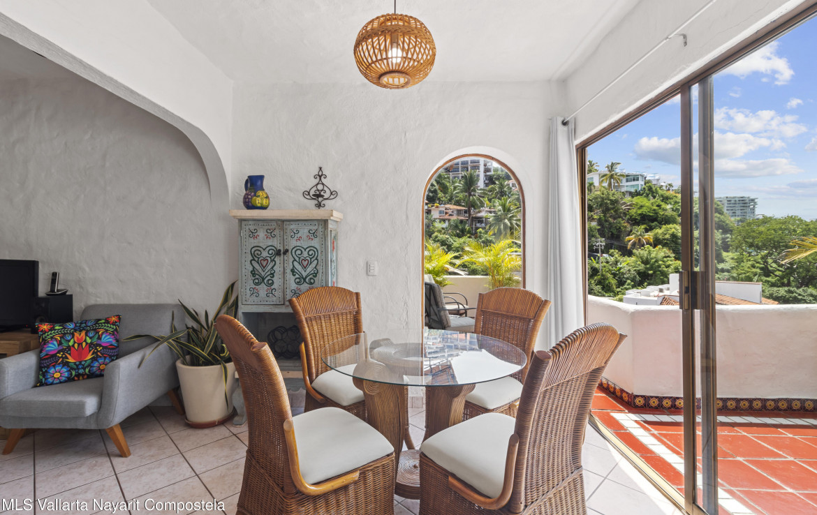 This traditional Mexican two bedroom condo will steal your heart. A spacious layout with peekaboo ocean views will welcome you or your guests home. Blocks from Los Muertos Beach, this property is in a sough-after building that rarely comes onto the market. They are a solid investment with an excellent rental history. Minutes to the bars and restaurants of Olas Altas, the location is ideal–but cocktails on your large patio may be all you need to unwind after a day in Paradise. Este tradicional condominio mexicano de dos recameras le robara el corazon. Un diseno espacioso con vistas al mar peekaboo le dara la bienvenida a usted o sus invitados a casa. A pocas cuadras de la playa de Los Muertos, esta propiedad se encuentra en un edificio codiciado que rara vez sale al mercado.