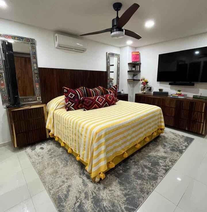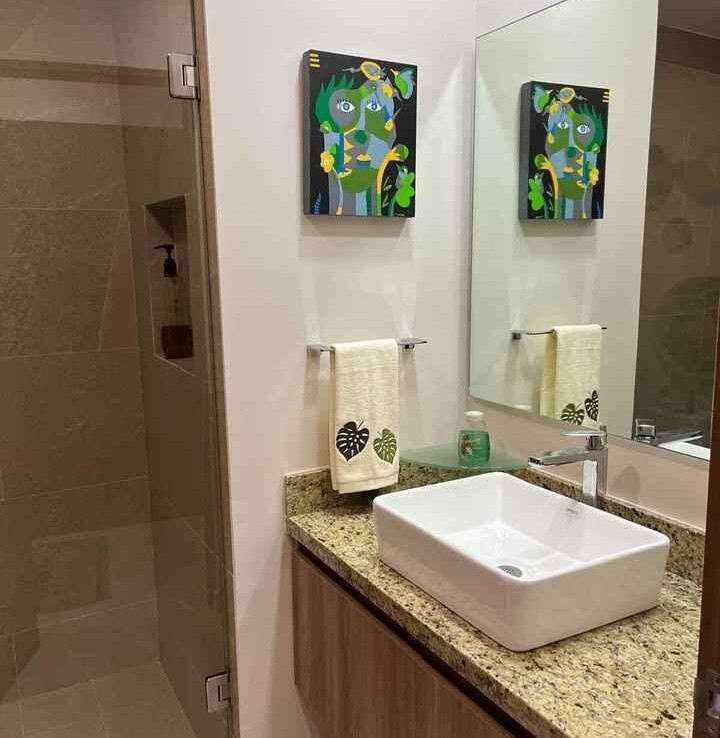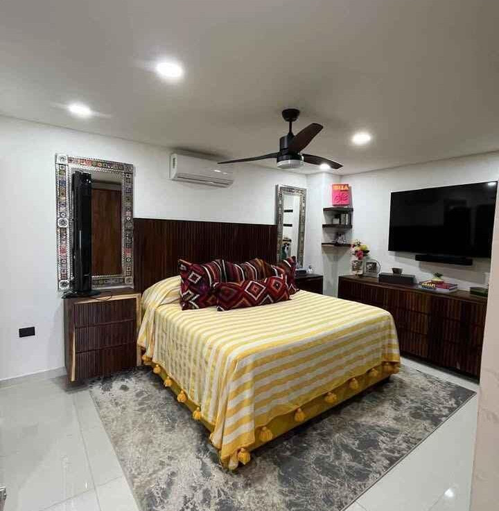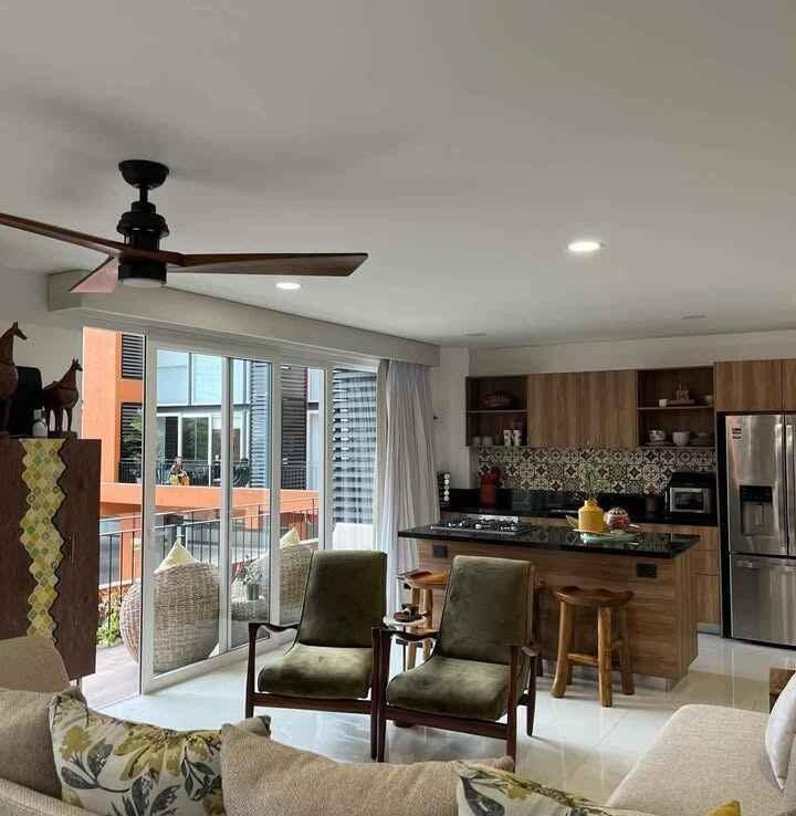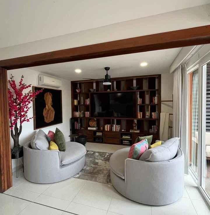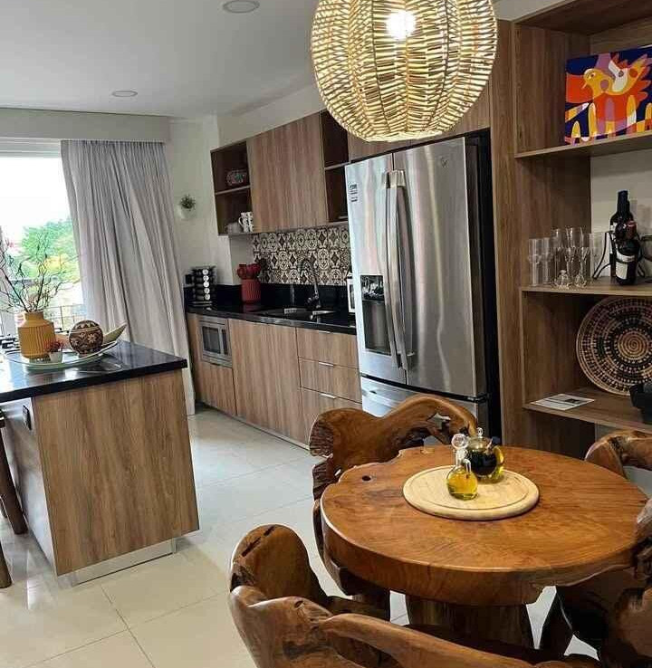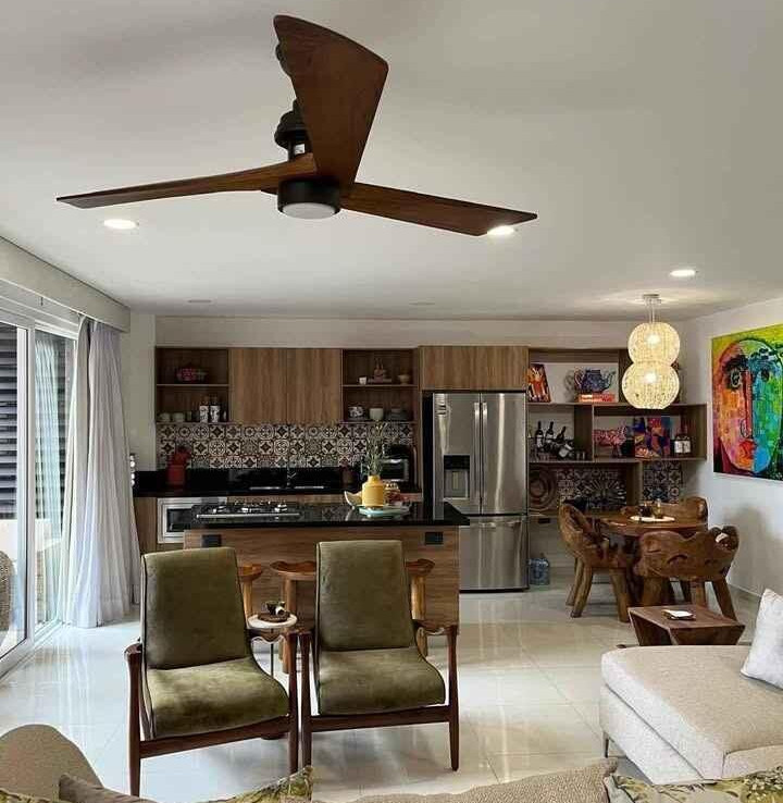 Disfrute de un espacio funcional y bien iluminado en el codiciado desarrollo Zoho Skies, Torre 2. Esta propiedad cuenta con un diseno arquitectonico limpio y moderno con acabados de parota. La distribucion interior se caracteriza por una sala de estar de concepto abierto que se integra a la perfeccion con una cocina de alto contraste, con encimeras oscuras y griferia de calidad profesional. Los pisos en tonos neutros y las paredes blancas nitidas maximizan la luz natural, mientras que la iluminacion empotrada y los ventiladores de techo garantizan un clima agradable en cada habitacion. Los techos altos y los pisos de porcelanato de gran formato brindan una estetica refrescante, perfecta para el clima costero de Puerto Vallarta.