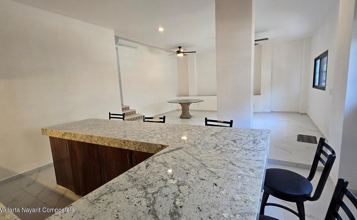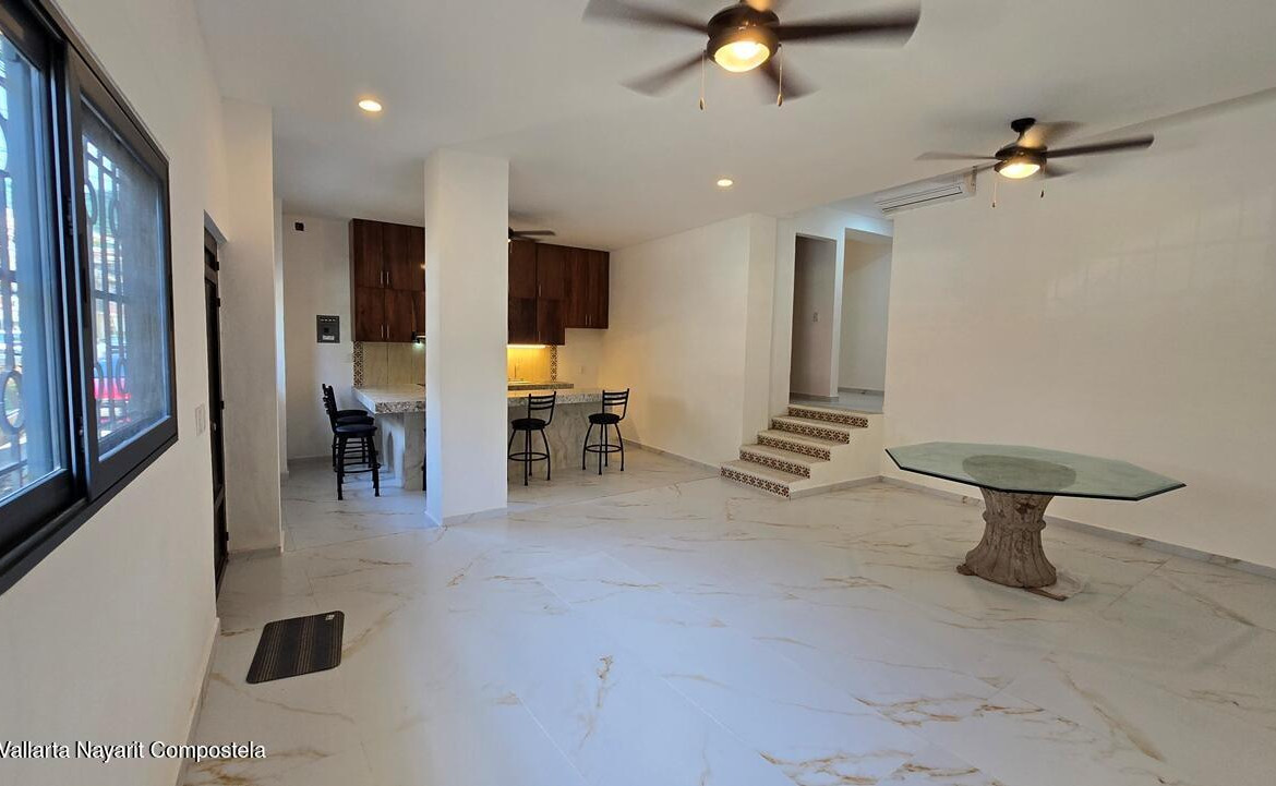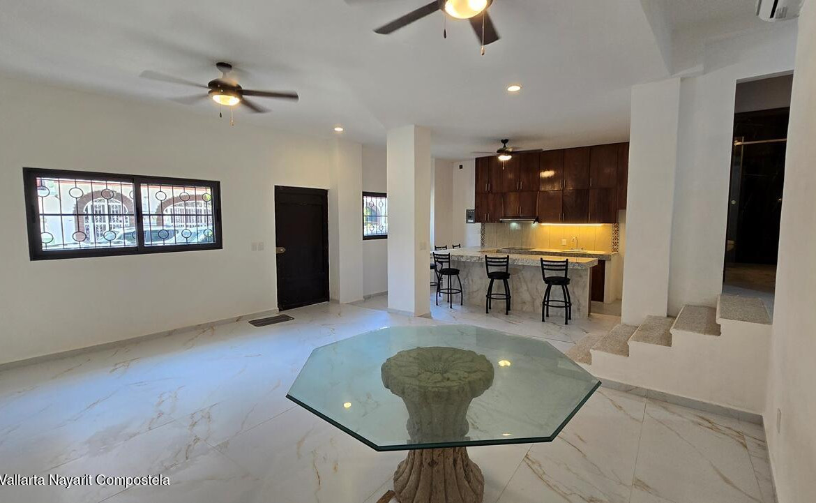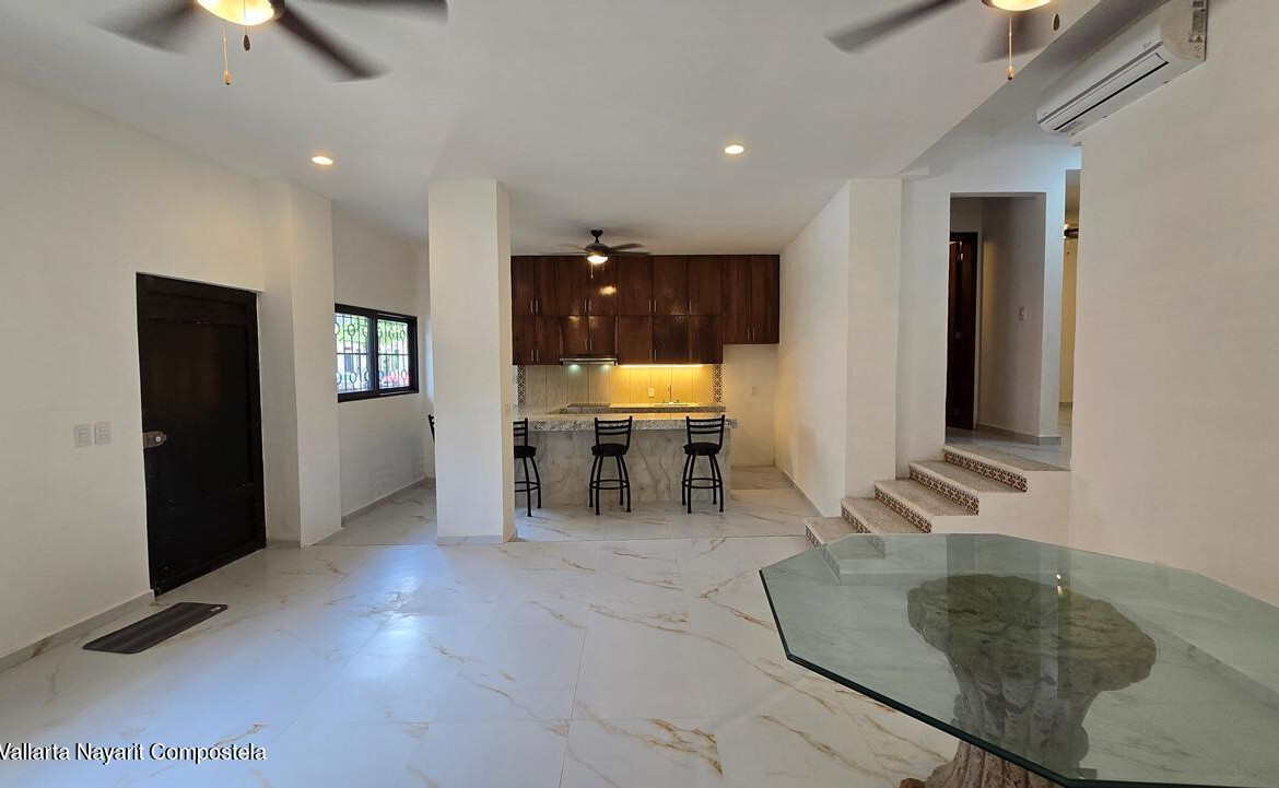 Departamento recien remodelado en planta baja, ubicado en la Zona Romantica de Puerto Vallarta, a pocas cuadras de la playa y del Rio Cuale, cuenta con estancia amplia, cocina integral equipada, bano completo equipado externo de las recamaras, recamara principal con bano, segunda recamara o estudio, acabados modernos, aires acondicionados en todas las areas. Cuenta con lavanderia comun, no se aceptan mascotas